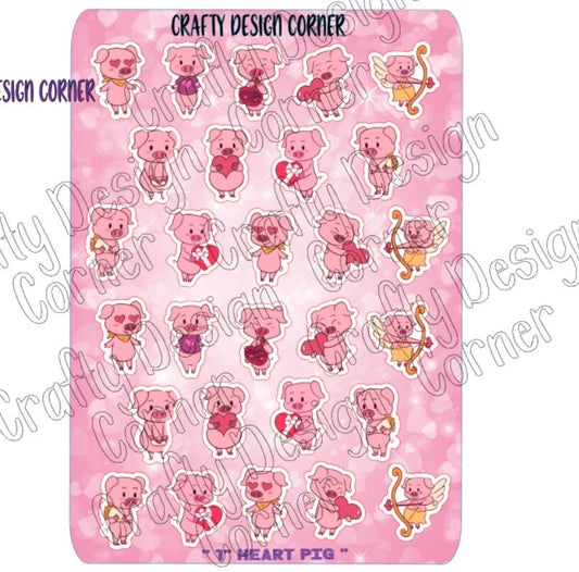 Large Sheet of 1" high Valentine Heart Pigs Stickers