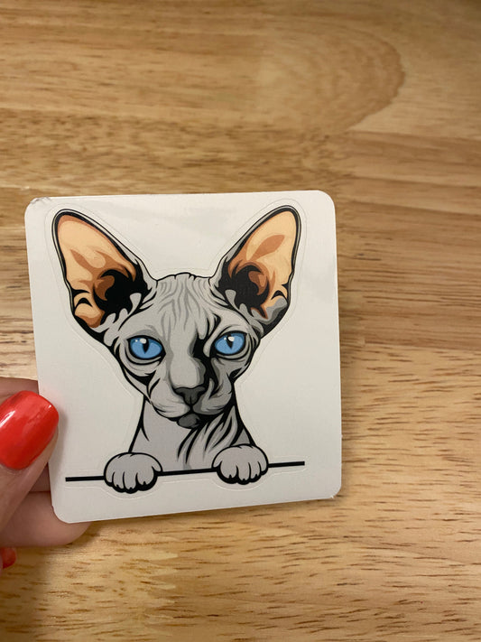 Blue Sphynx cat, Hairless Grey Cat Sticker, Holographic option, Cute Cat Design Sticker, Sphynx Kitty, Blue Sphynx Sticker Cat