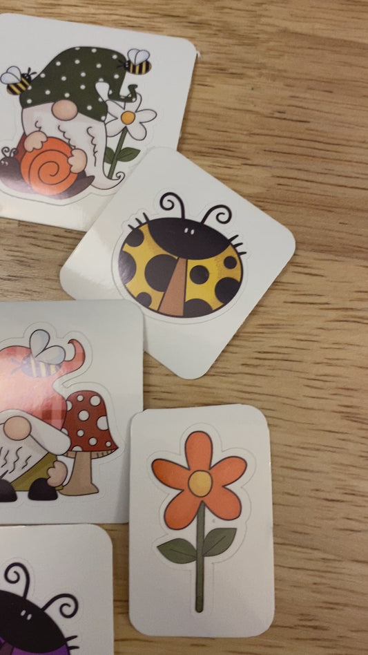 Garden Gnomies Sticker pack, Garden Gnome Stickers, Lady Bug Sticker