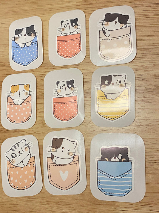 Cute Pocket Cat Sticker Set, Kitty Stickers, Cat Sticker Set, Pocket Cat Sticker Set
