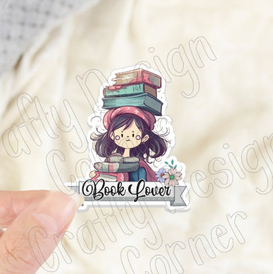 Book Lover Sticker, Girl with books Sticker, Girl who Loves Books Sticker