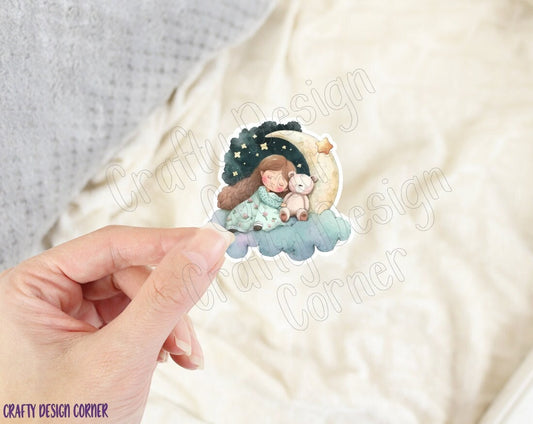 Girl sleep on Moon Sweet Dreams STICKER, Cute Sleeping on the moon sticker, Holographic option