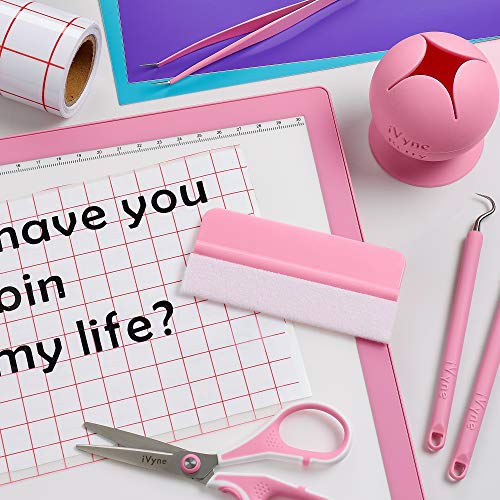iVyne Colorful Plastic Squeegee for Vinyl/Scraper Tool with Soft Felt Cloth - for Cricut Crafting - Window Tint - Adhesive Vinyl Decal - Lettering - HTV (Pink, 2 Pack)