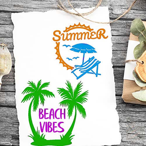 BOOLOOEN Self Adhesive Screen Printing,Stencils Mesh Transfer Stencils - Reusable Logo Stencils Screen Printing Stencil Patterns for DIY Painting T-Shirts, Pillows (Summer Beach 4PC)