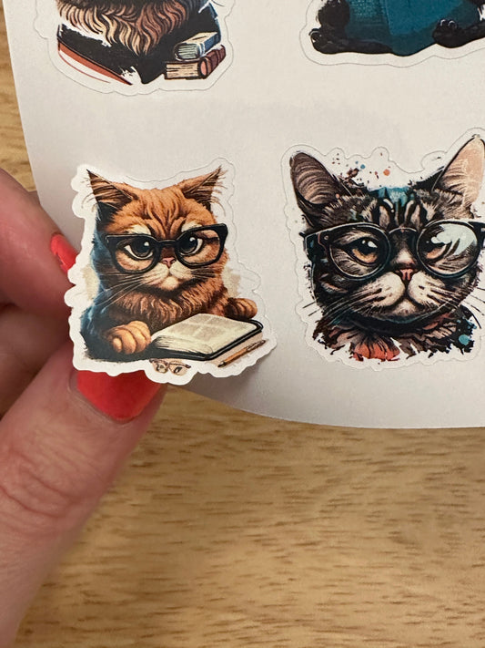 Cat with Glasses and books Planner STICKER, Cute Cat with books Planner Sticker, Glasses and Cats Stickers, Cat Likes books