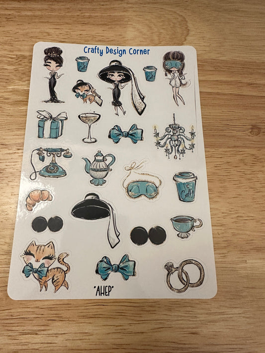 Audrey Hepburn Stickers, Glamour Sticker, Cat Sticker, Cute Coffee Stickers, Cute telephone Stickers, Chandelier Sticker