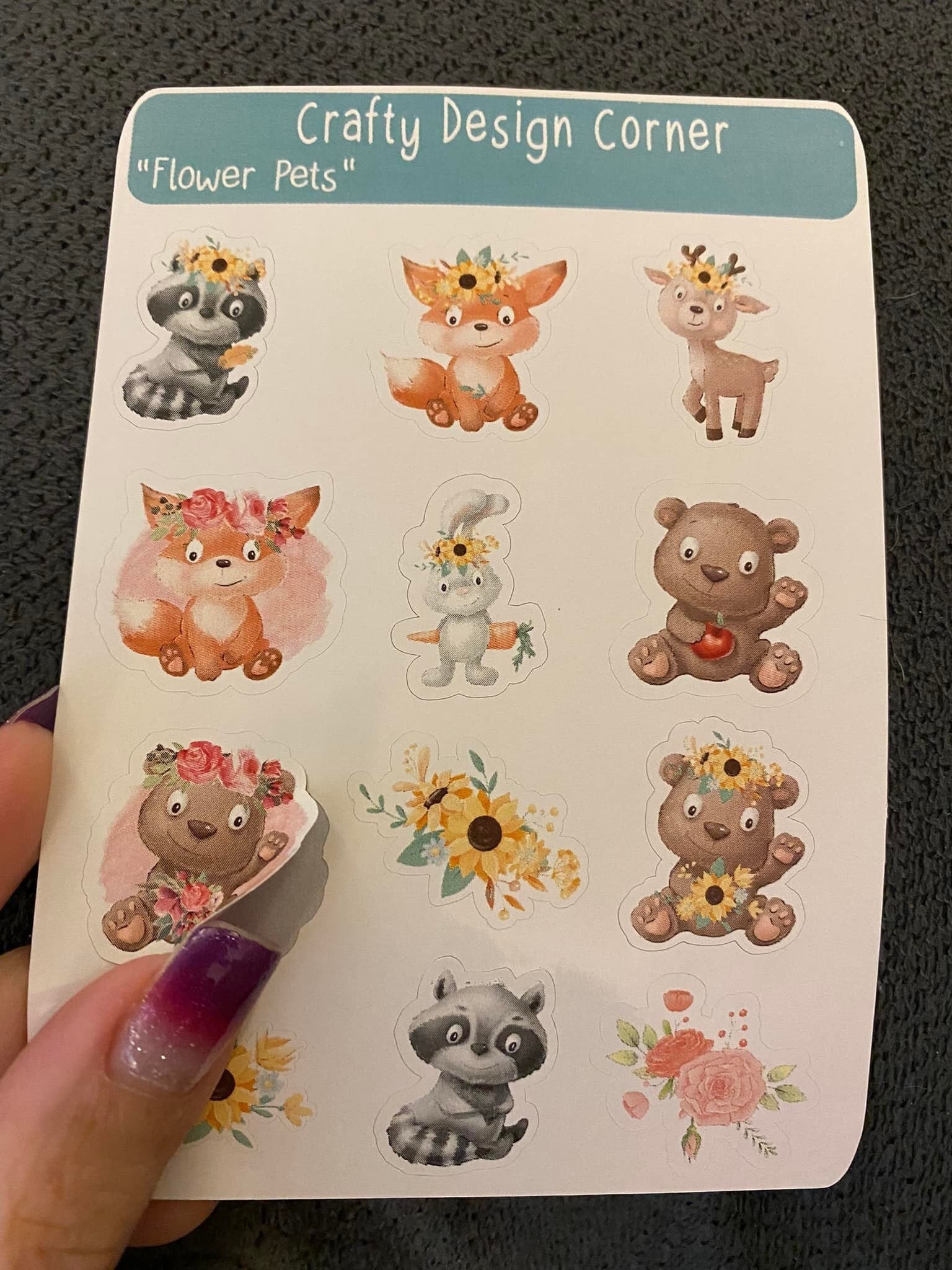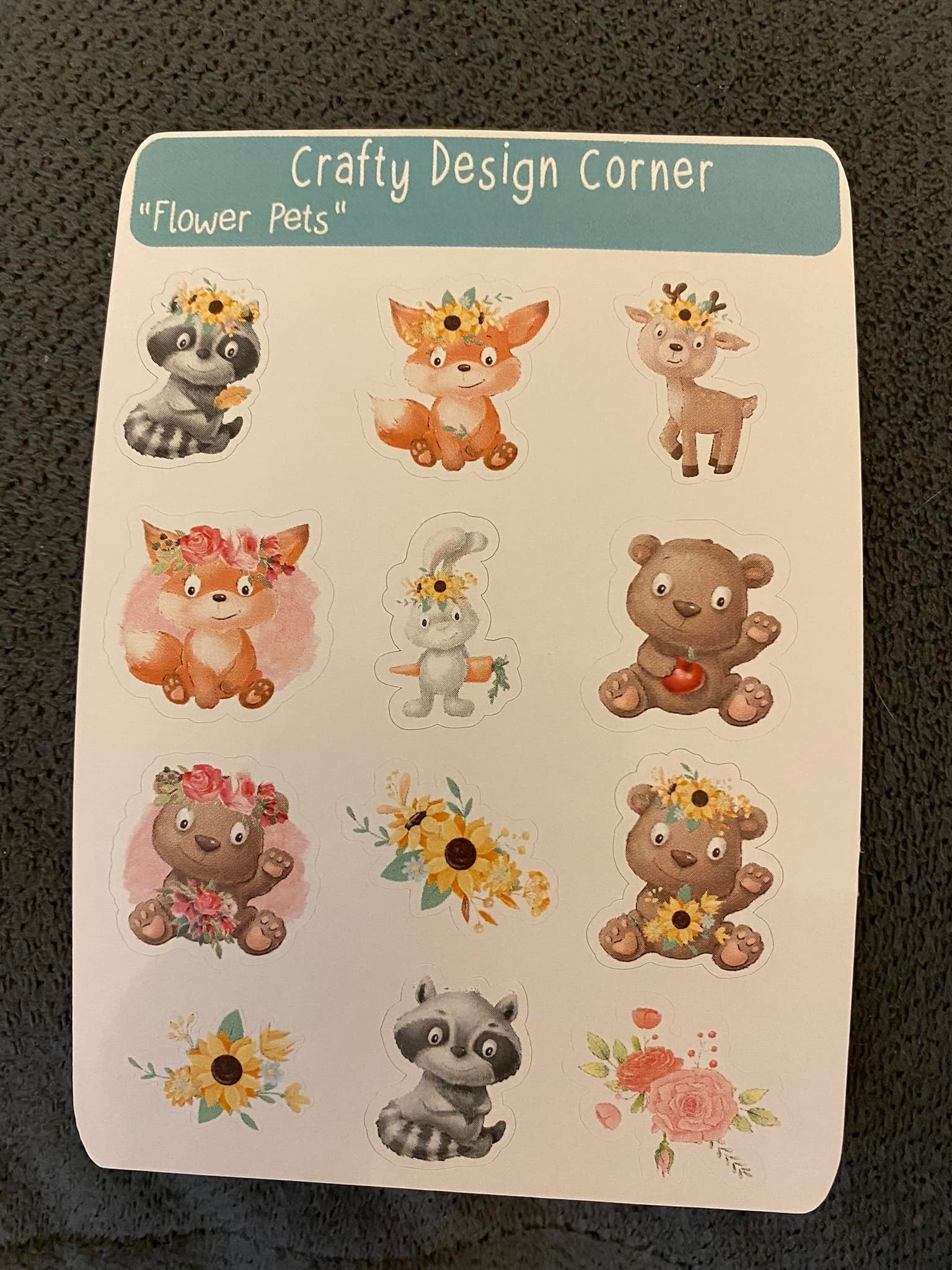 Flower Pets STICKER SHEET, this is printed on very strong White Sticker Paper and then cut around each sticker, leaving a small white outline. Can add to any hard surface, idea for planners.