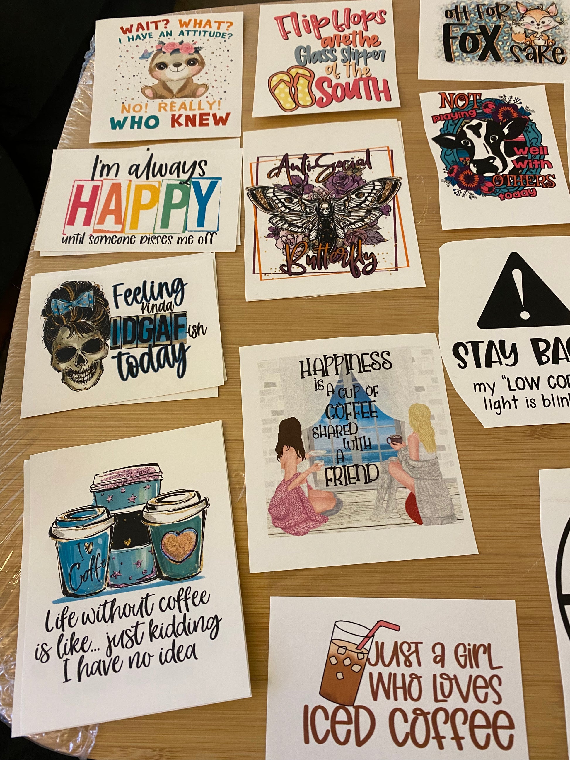 10 Random lot of Clear WATERSLIDE Laser Printed, Lot 1 OVERSTOCKED