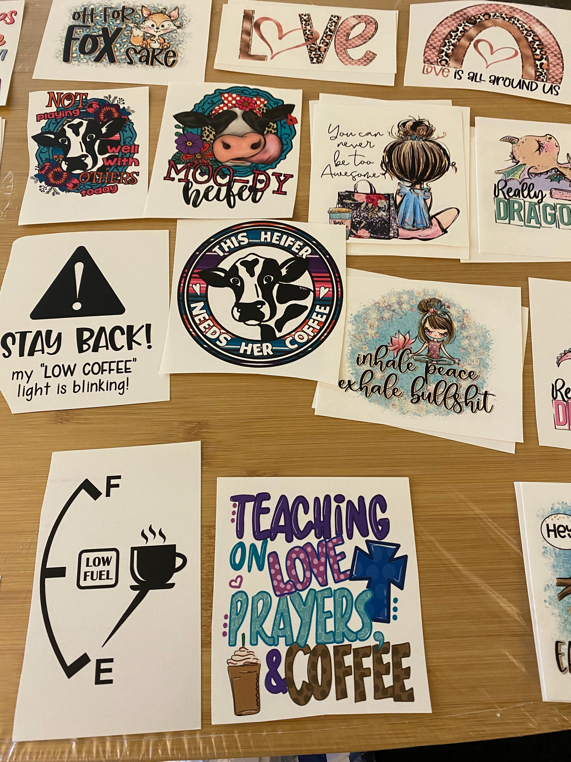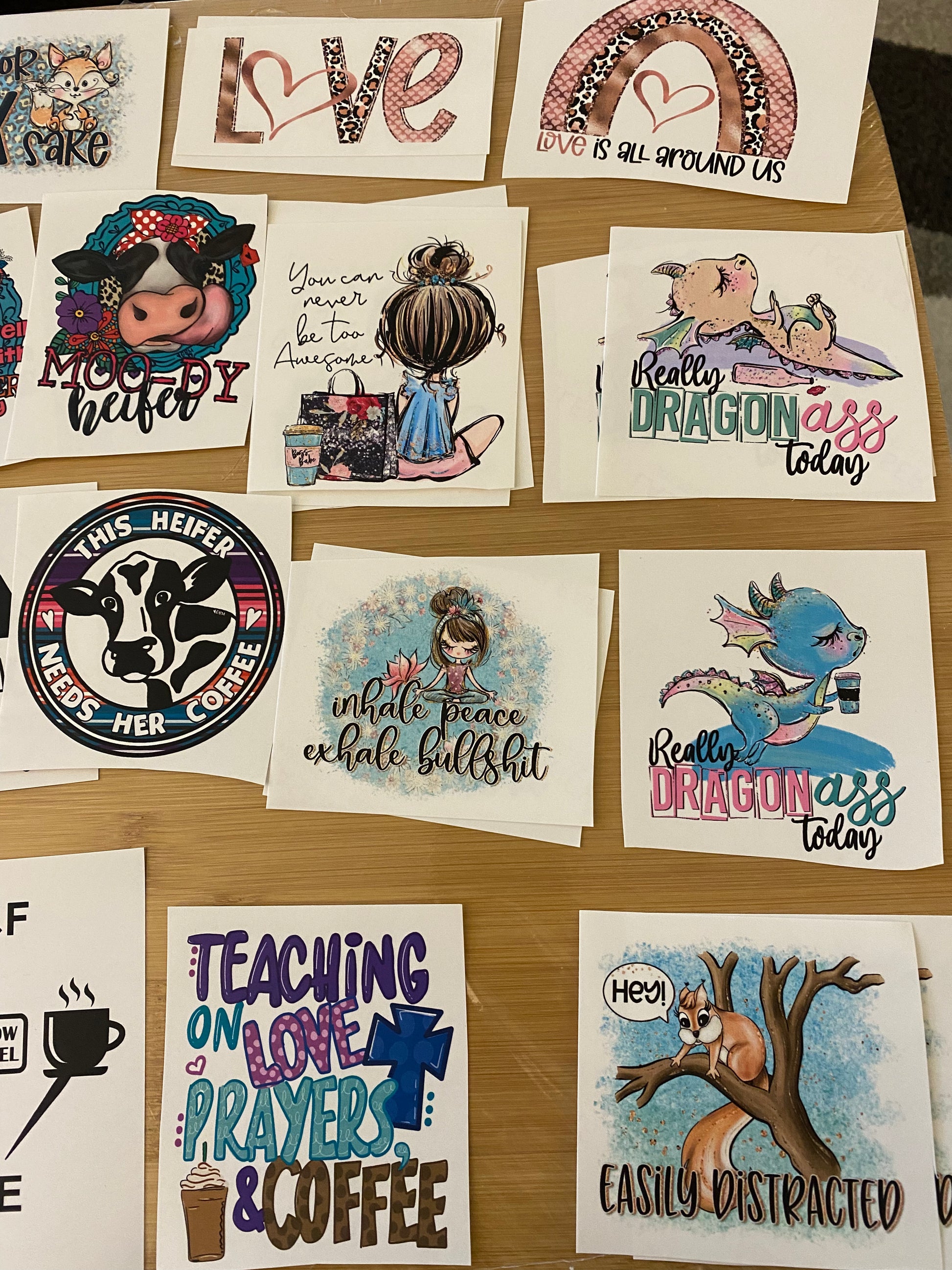 All my Designs are inter-changable, so if you would like one of the other designs I have listed on as a water slide, sticker, Sublimation transfer, or added to a button pin, tote bag, mouse pad, coaster, mug, baby bodysuit and or a sticker/decal, let me know and I can see what I can do l.