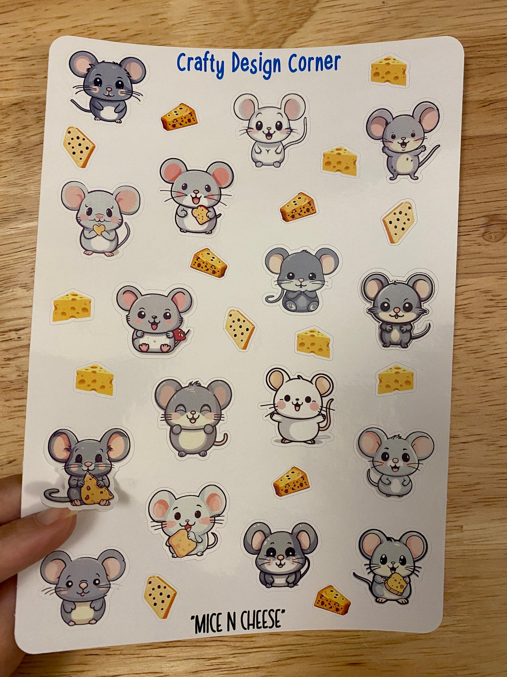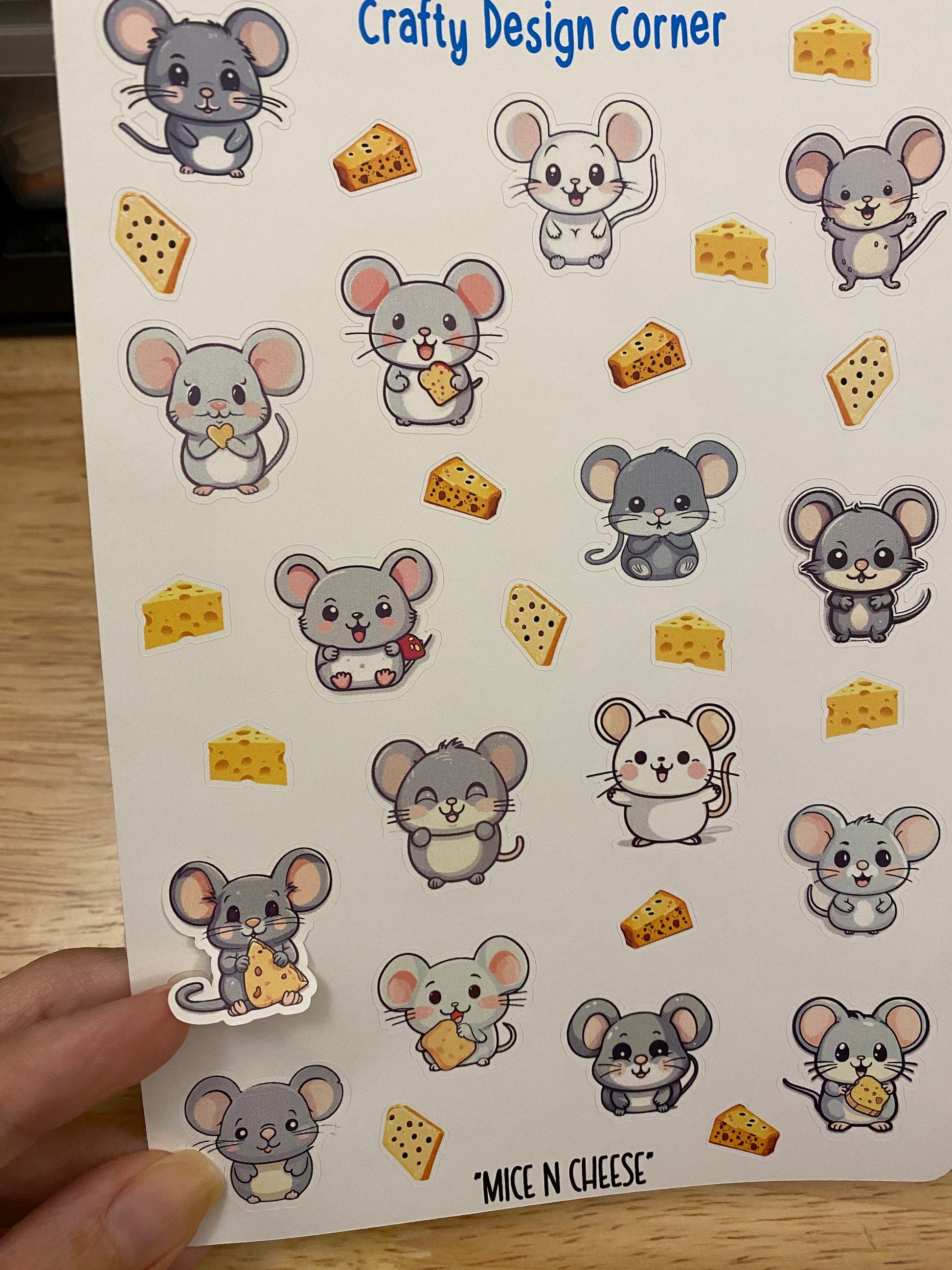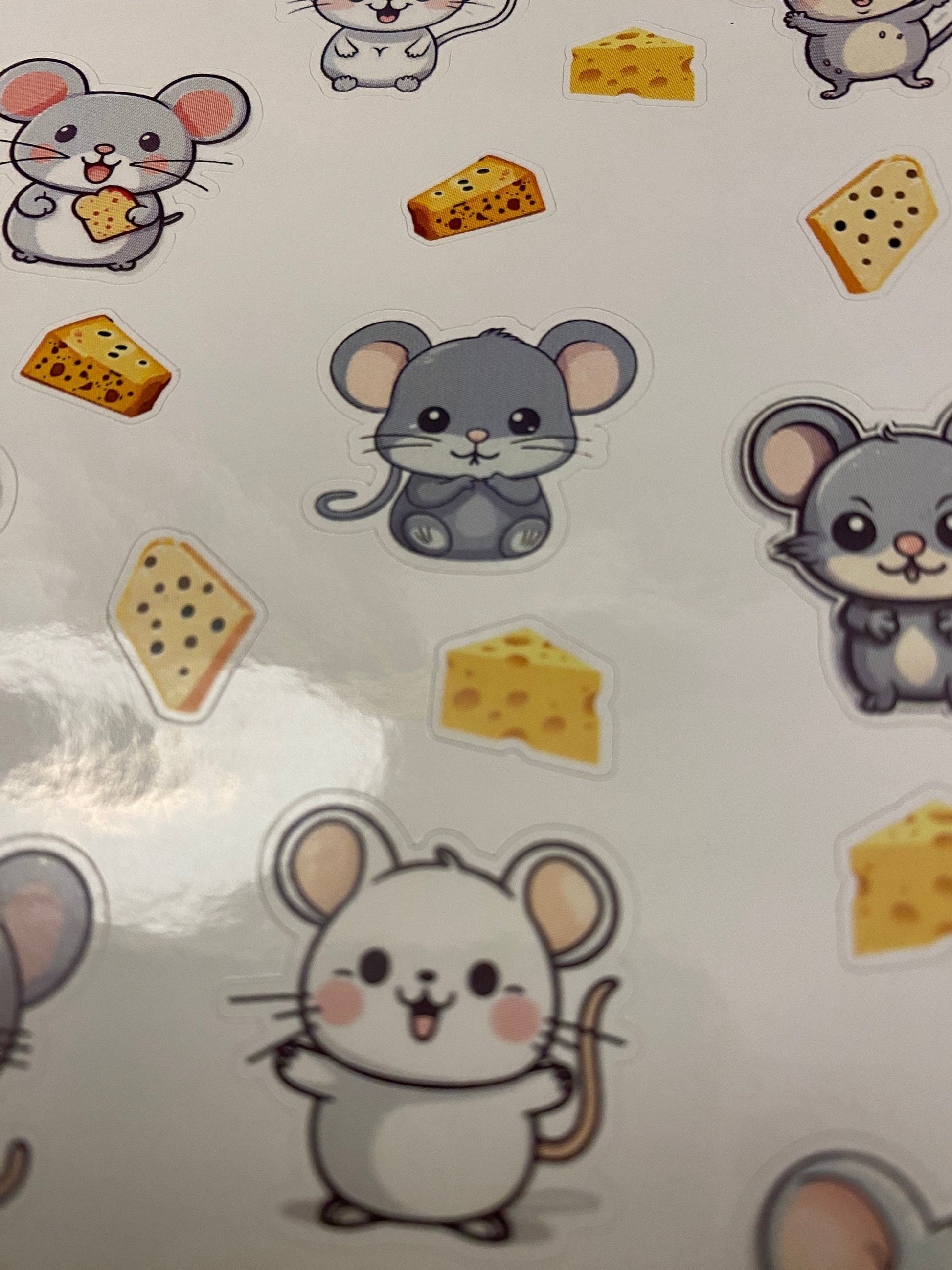 16 Mice Sticker Sheet with cheese, cute mice with cheese, Kawaii mice sticker sheet