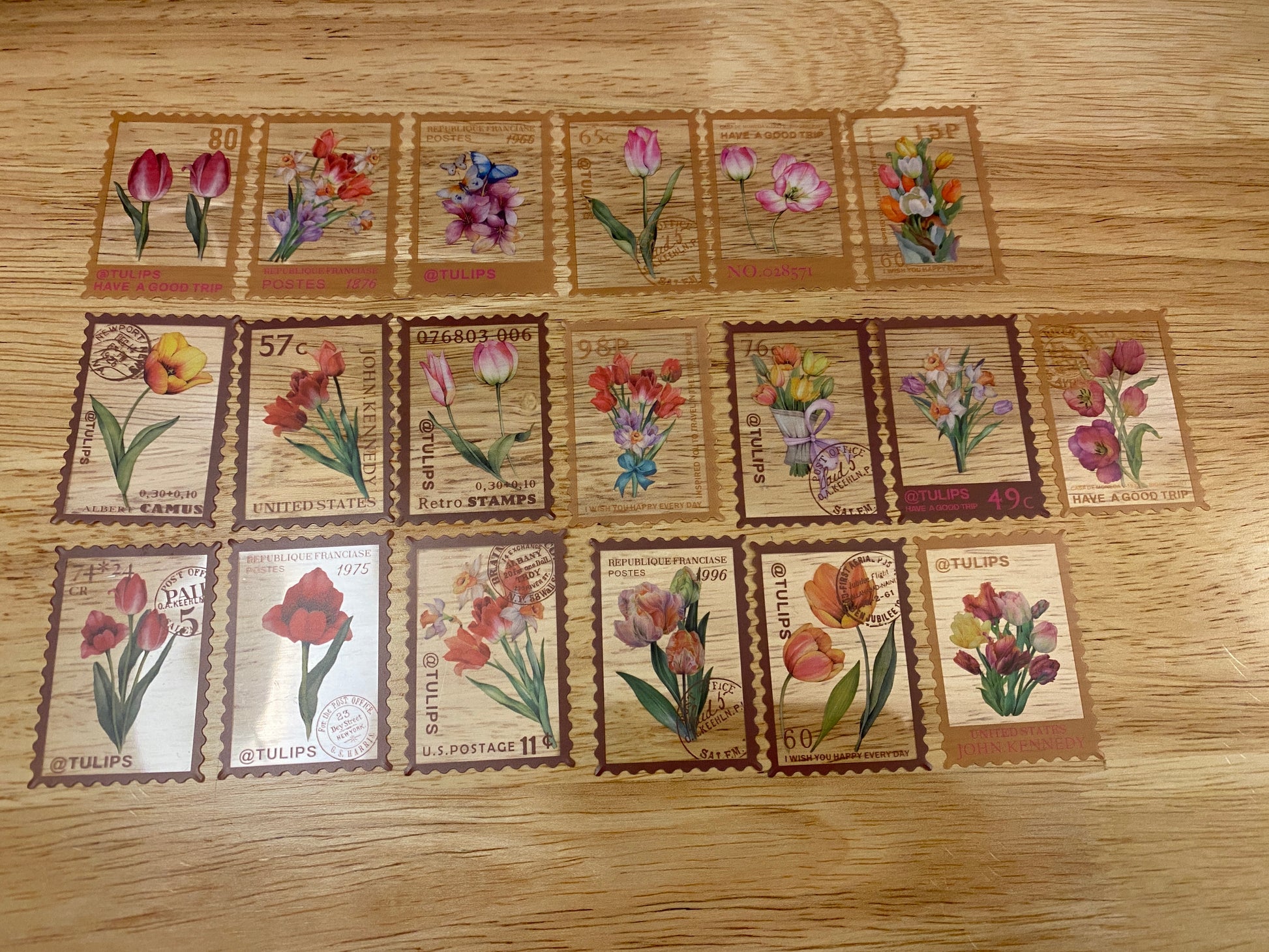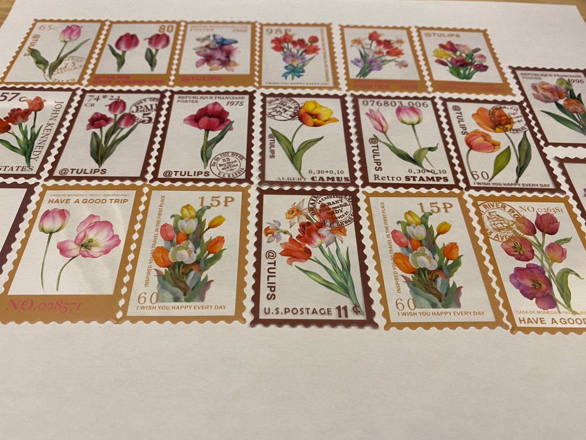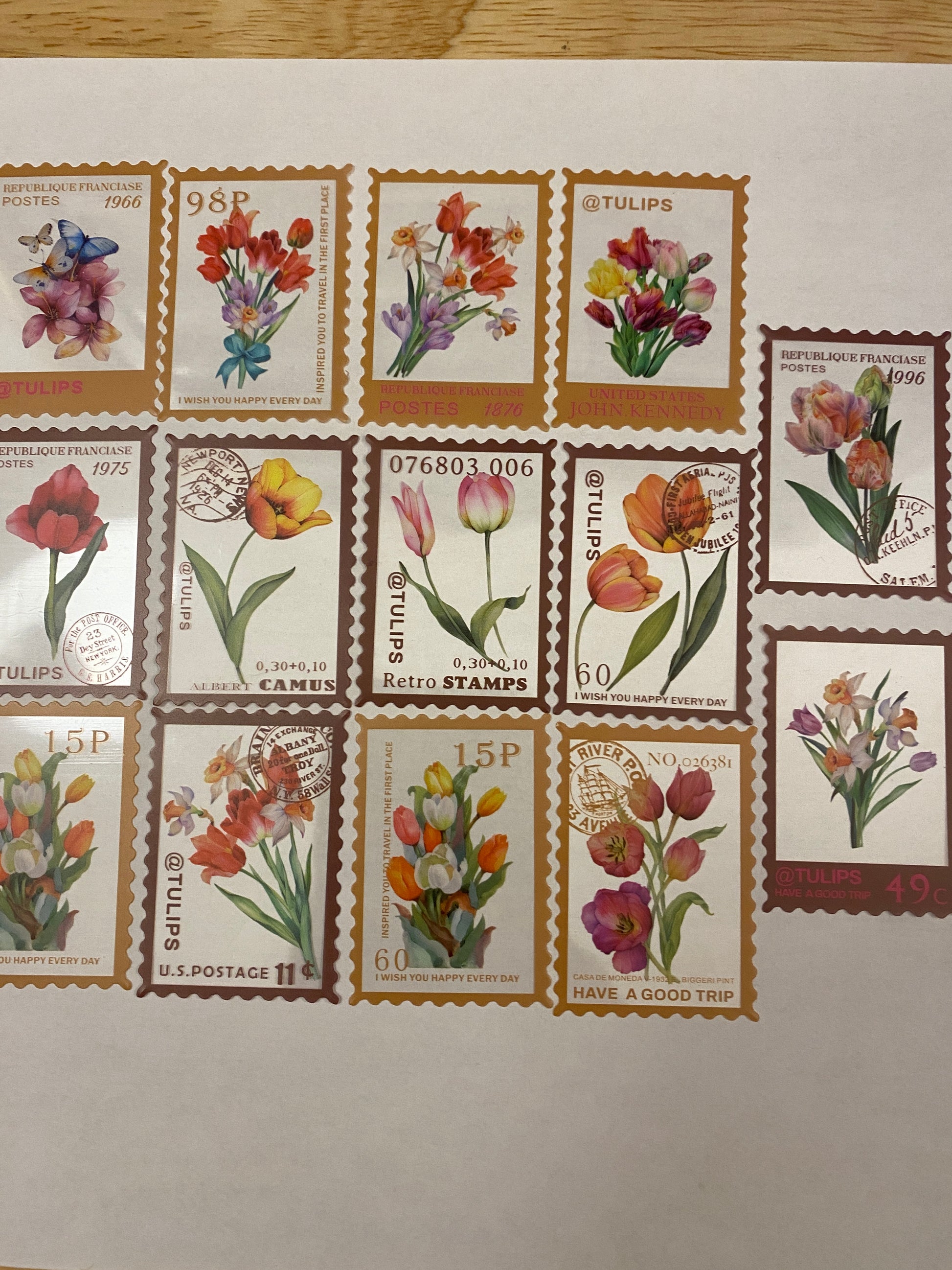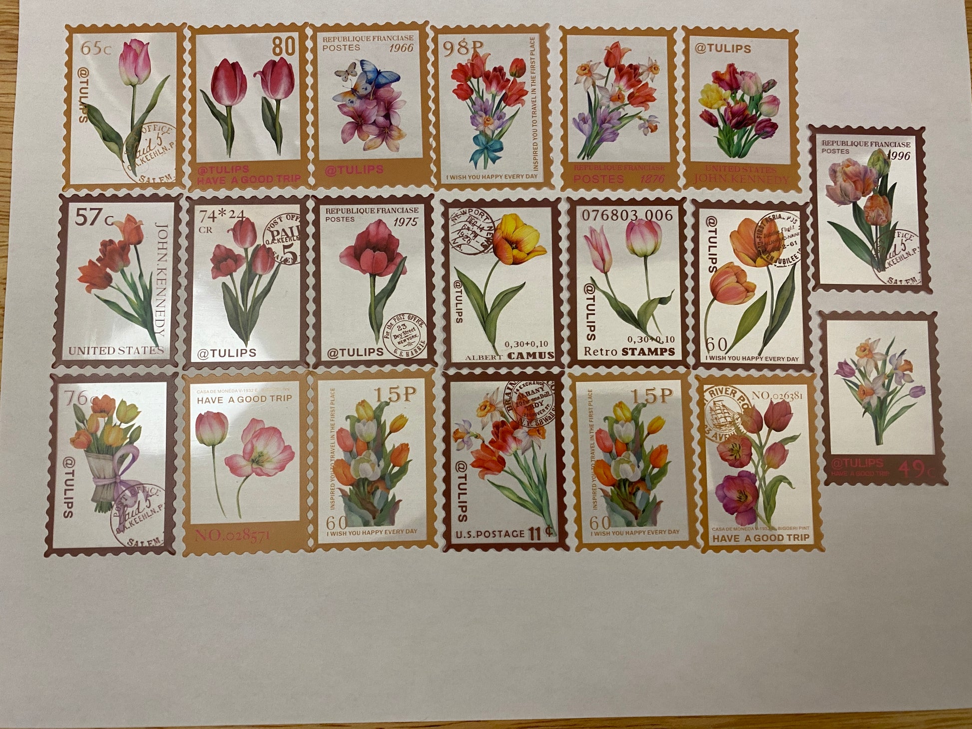This listing is for all the cute sunflower stamps seen in the photo, so you get 20 sticker stamps altogether.