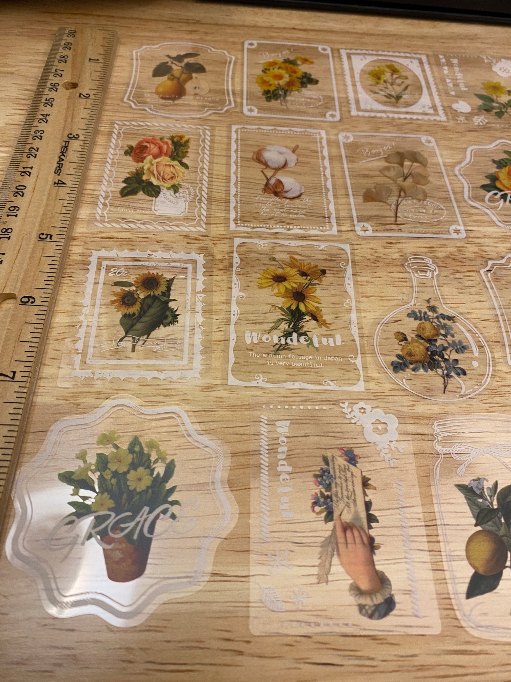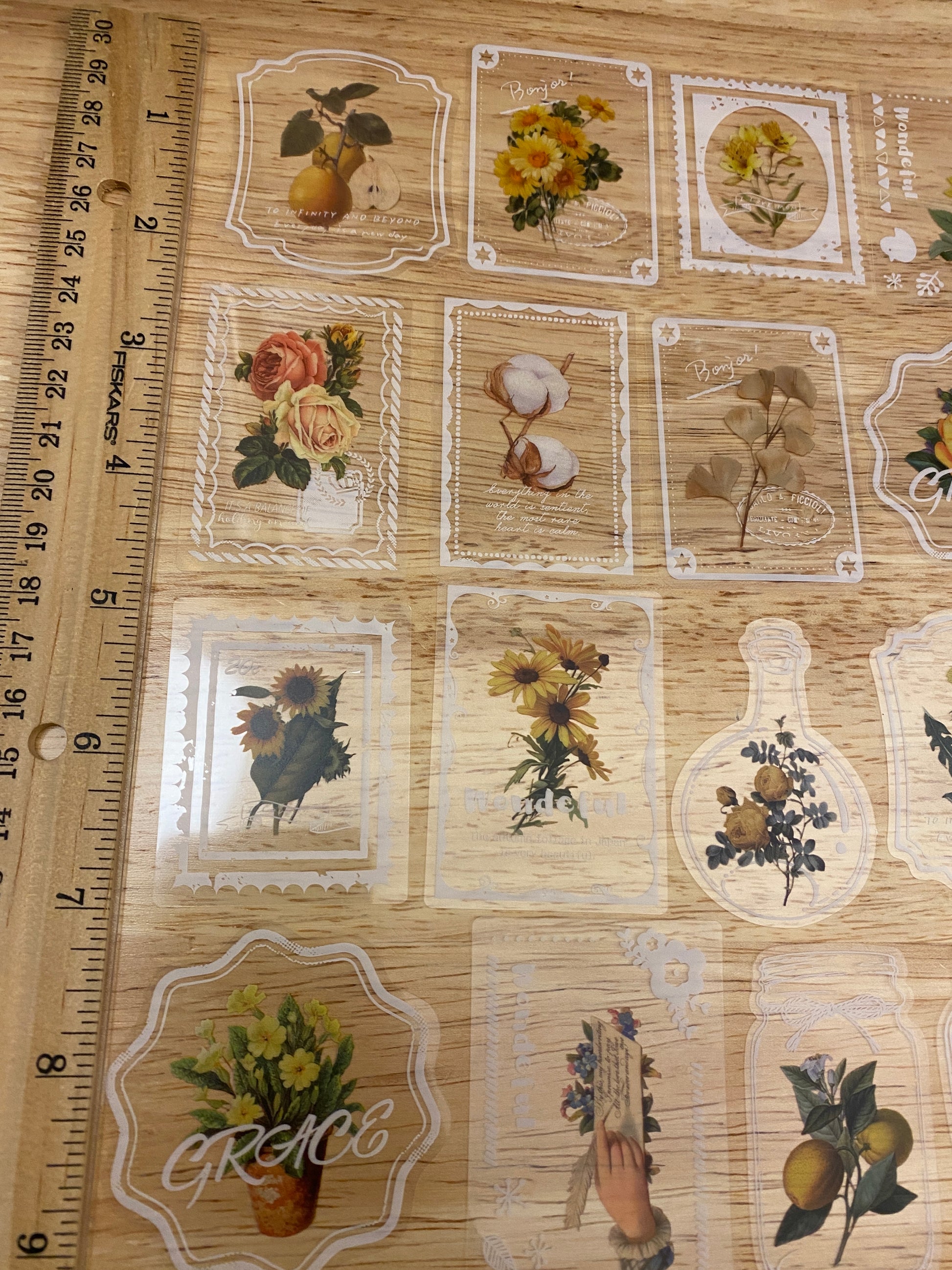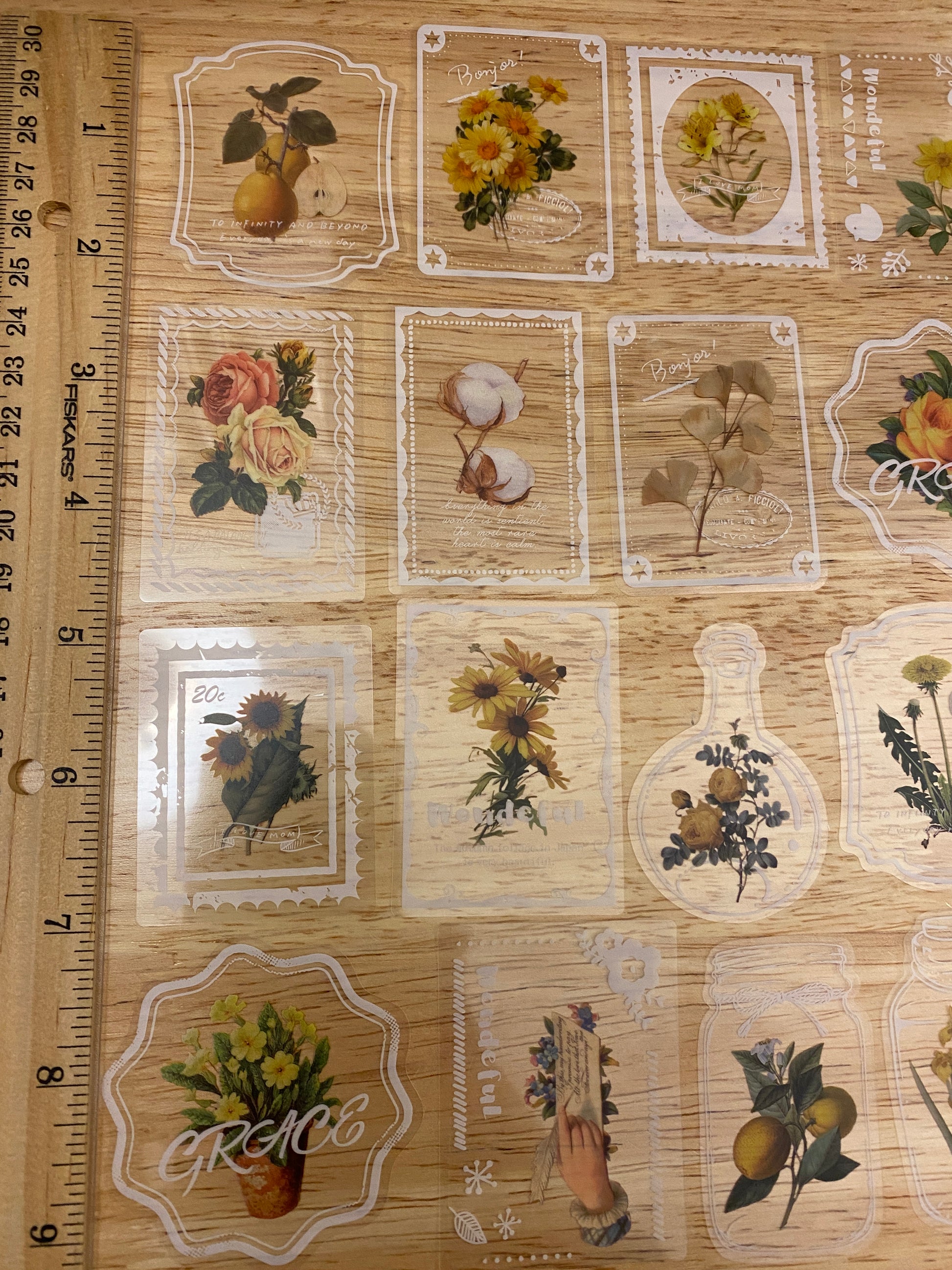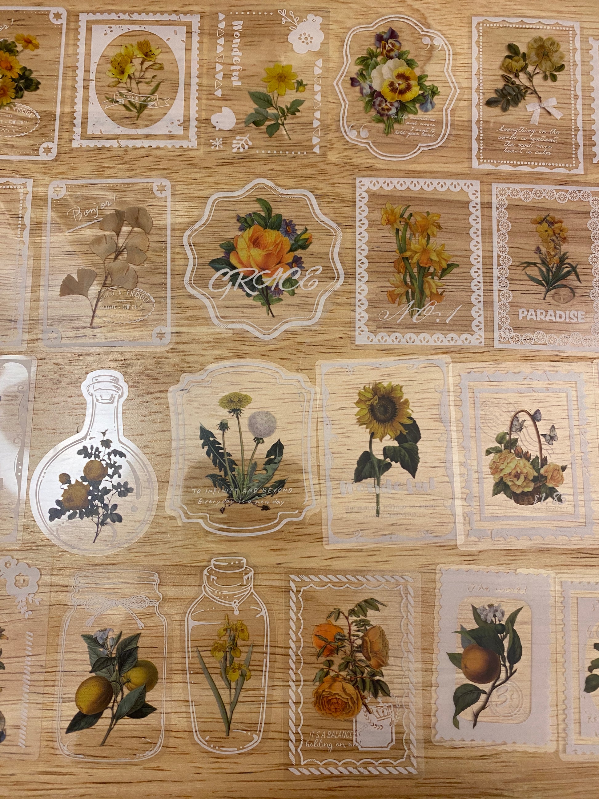 20 piece PET Clear Yellow Flowers Stamp Stickers