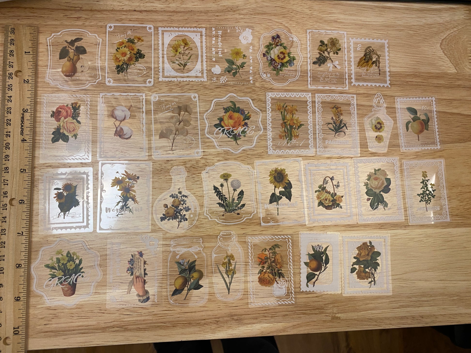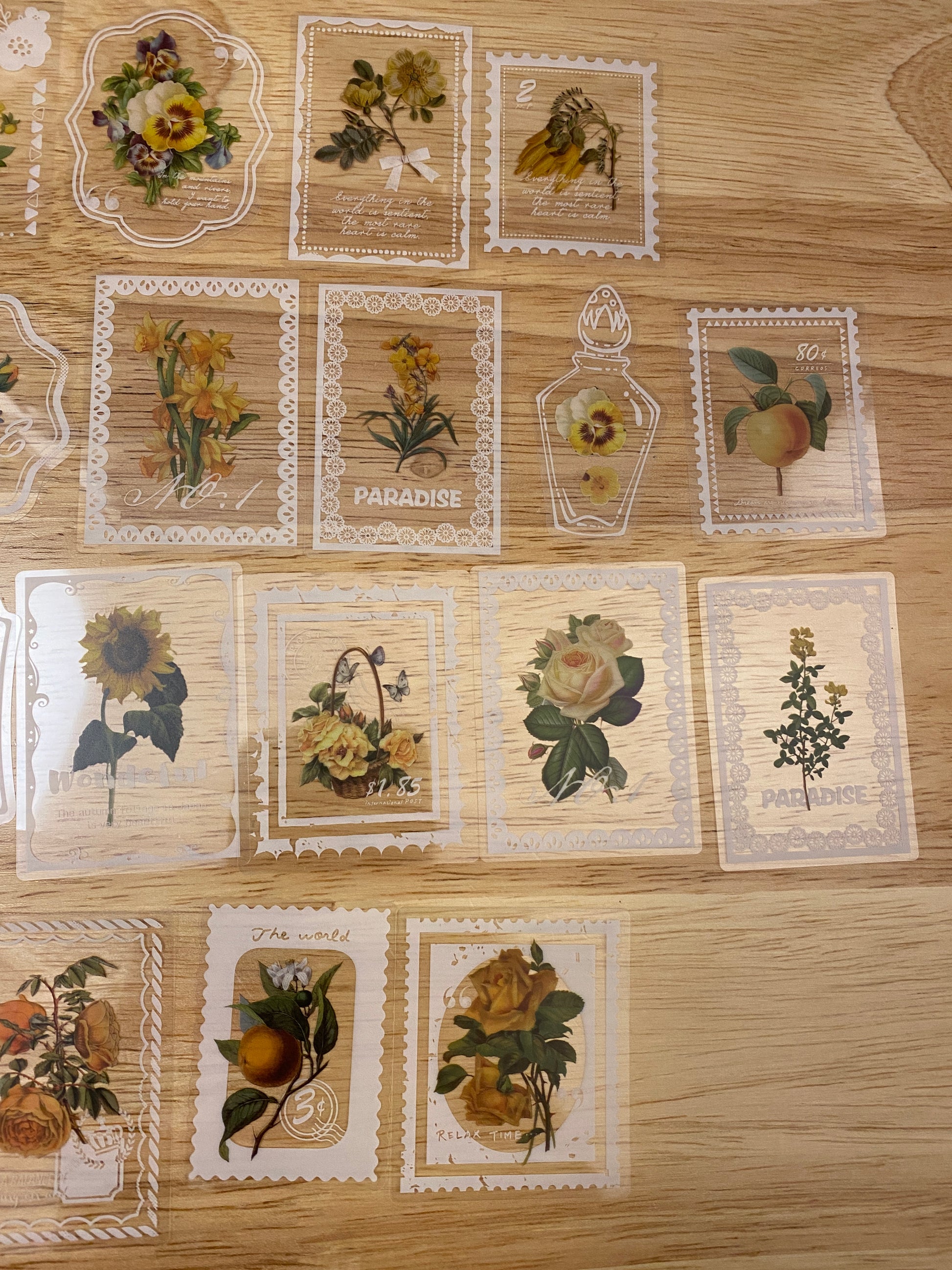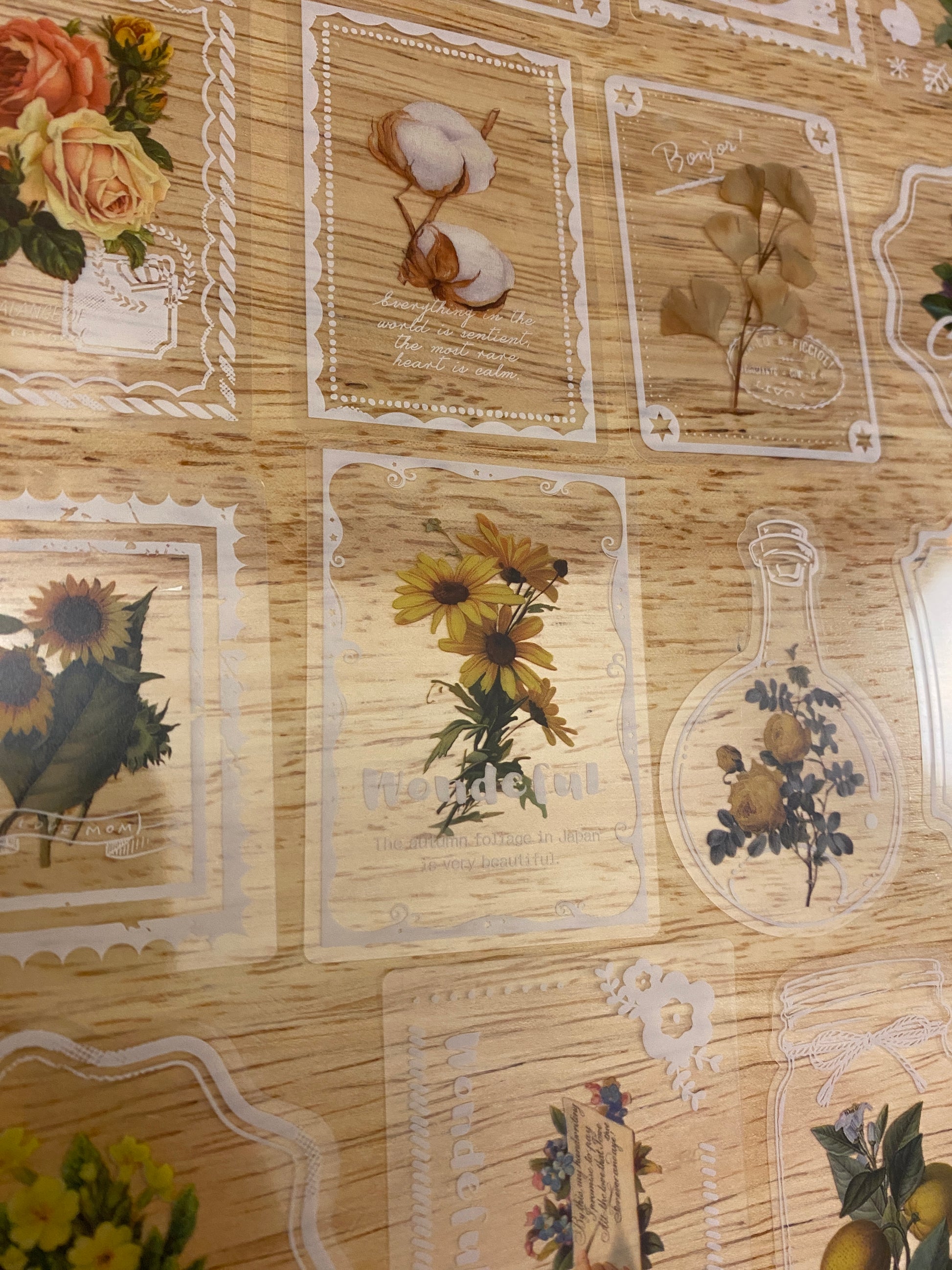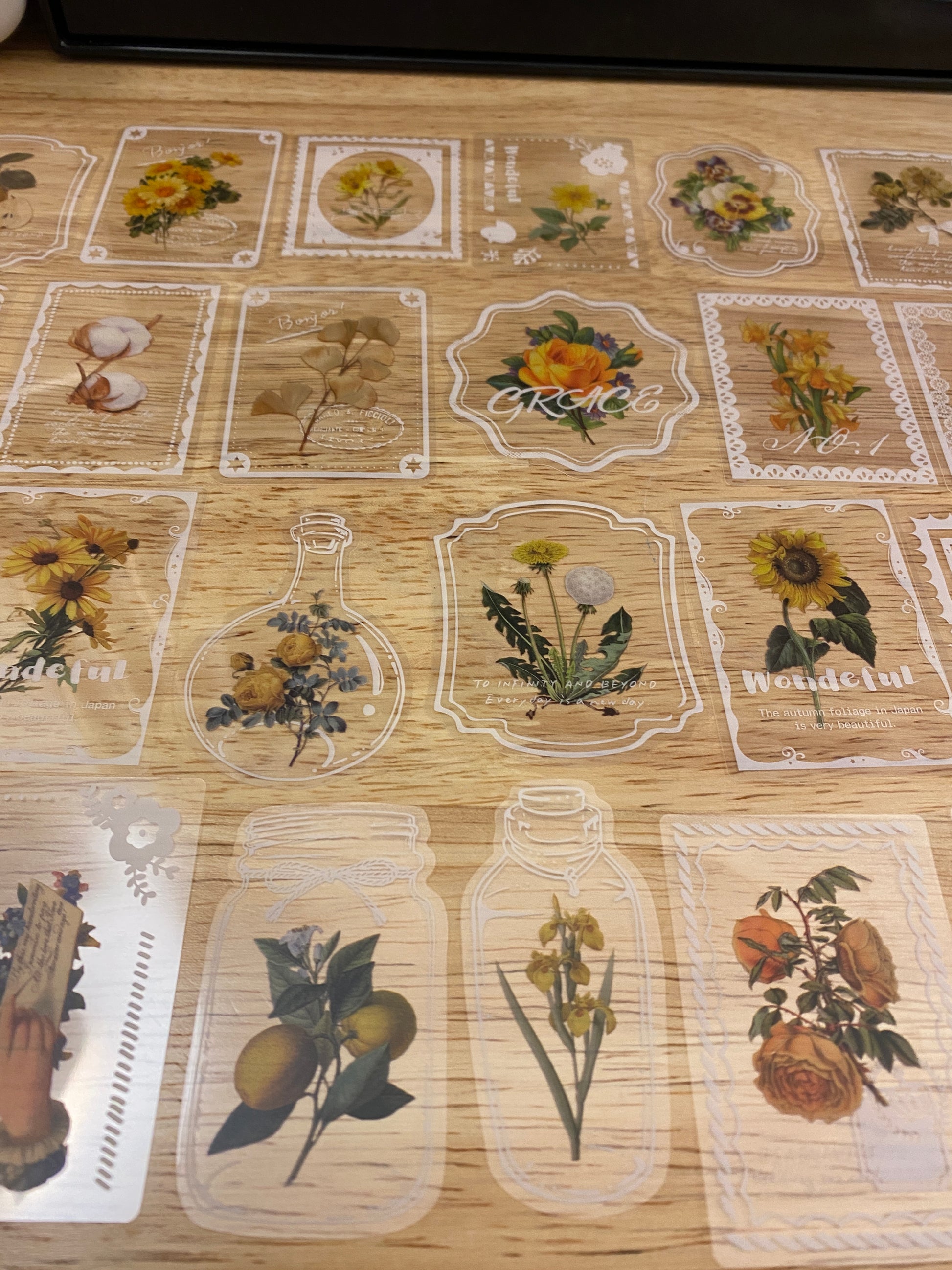 20 piece PET Clear Yellow Flowers Stamp Stickers