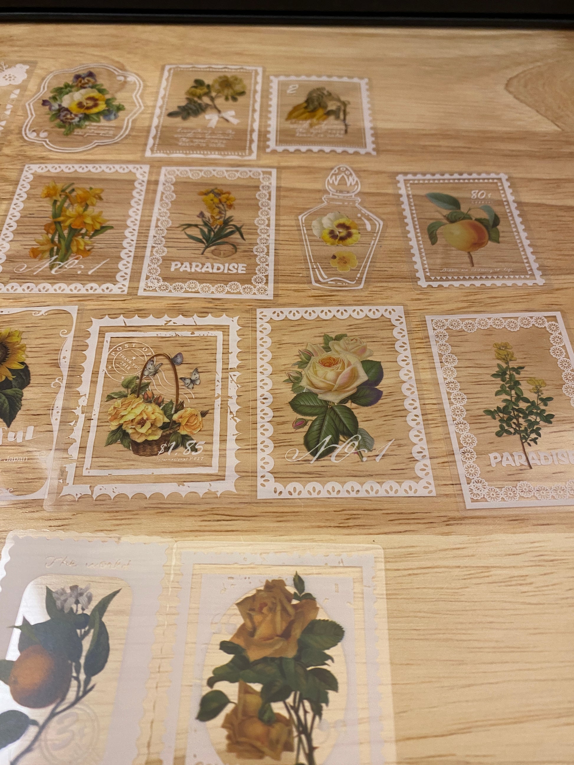 This listing is for all the cute sunflower stamps seen in the photo, so you get 20 sticker stamps altogether.