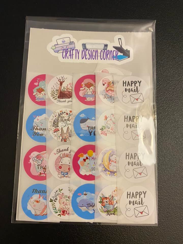 32 pcs Animal Thank You Sticker Pack, cute 1 inch round Animal Thank you stickers, as seen in photos, there is 2 sets of each design of the 1 inch round stickers as seen in the photos. Plus 8 free Happy Mail Stickers!!