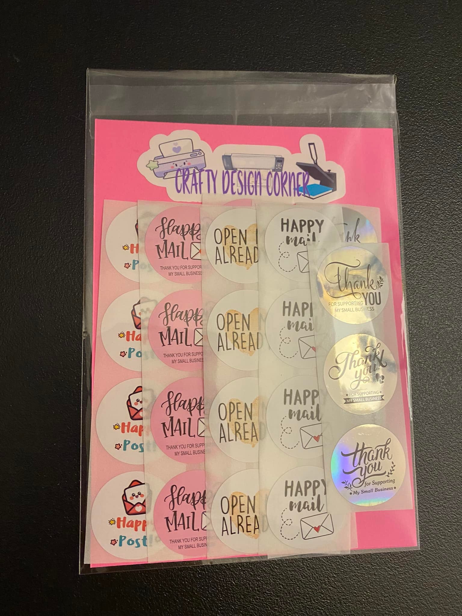 38 pcs Business Sticker Pack Pack, cute 1' inch round Thank you stickers, as seen in photos.