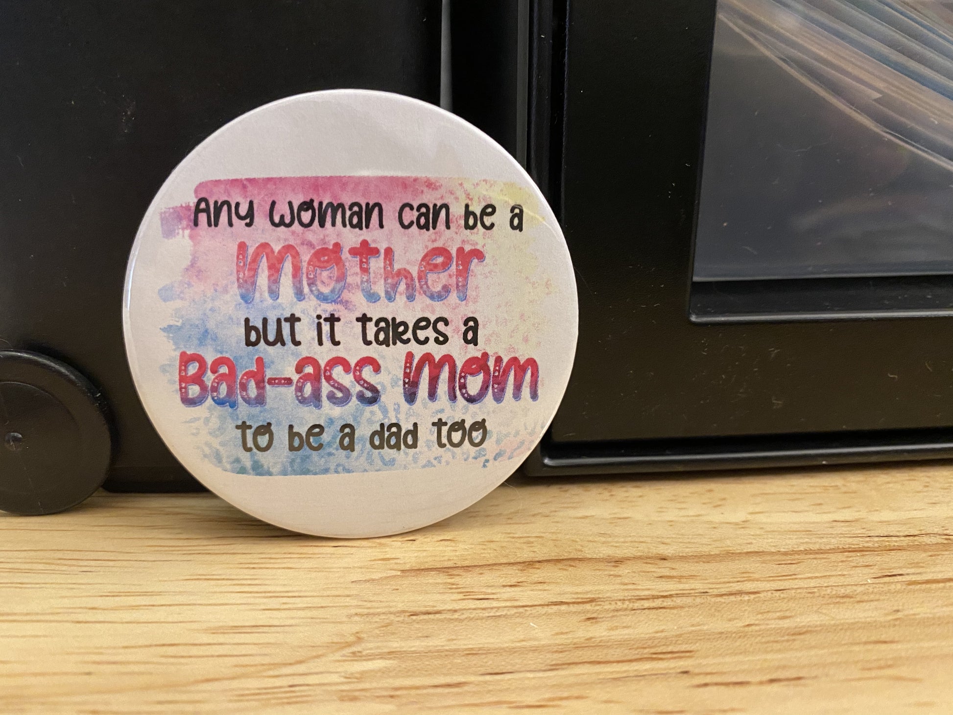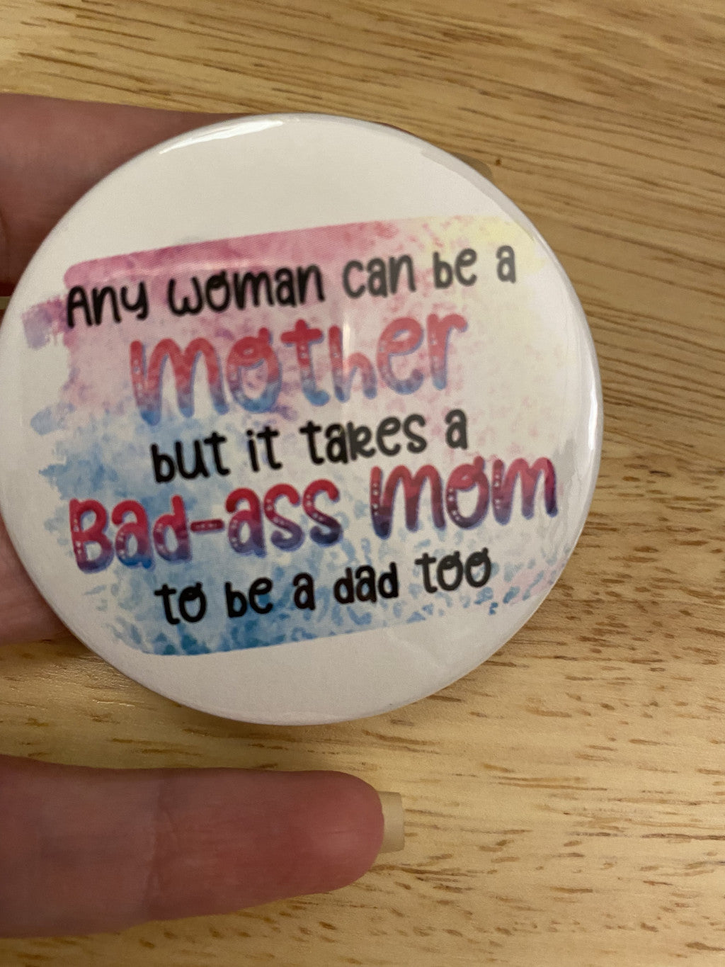 Any woman can be a mother but it takes a bad-a mom to be a dad too 1.25" / 2.25" Button Pin