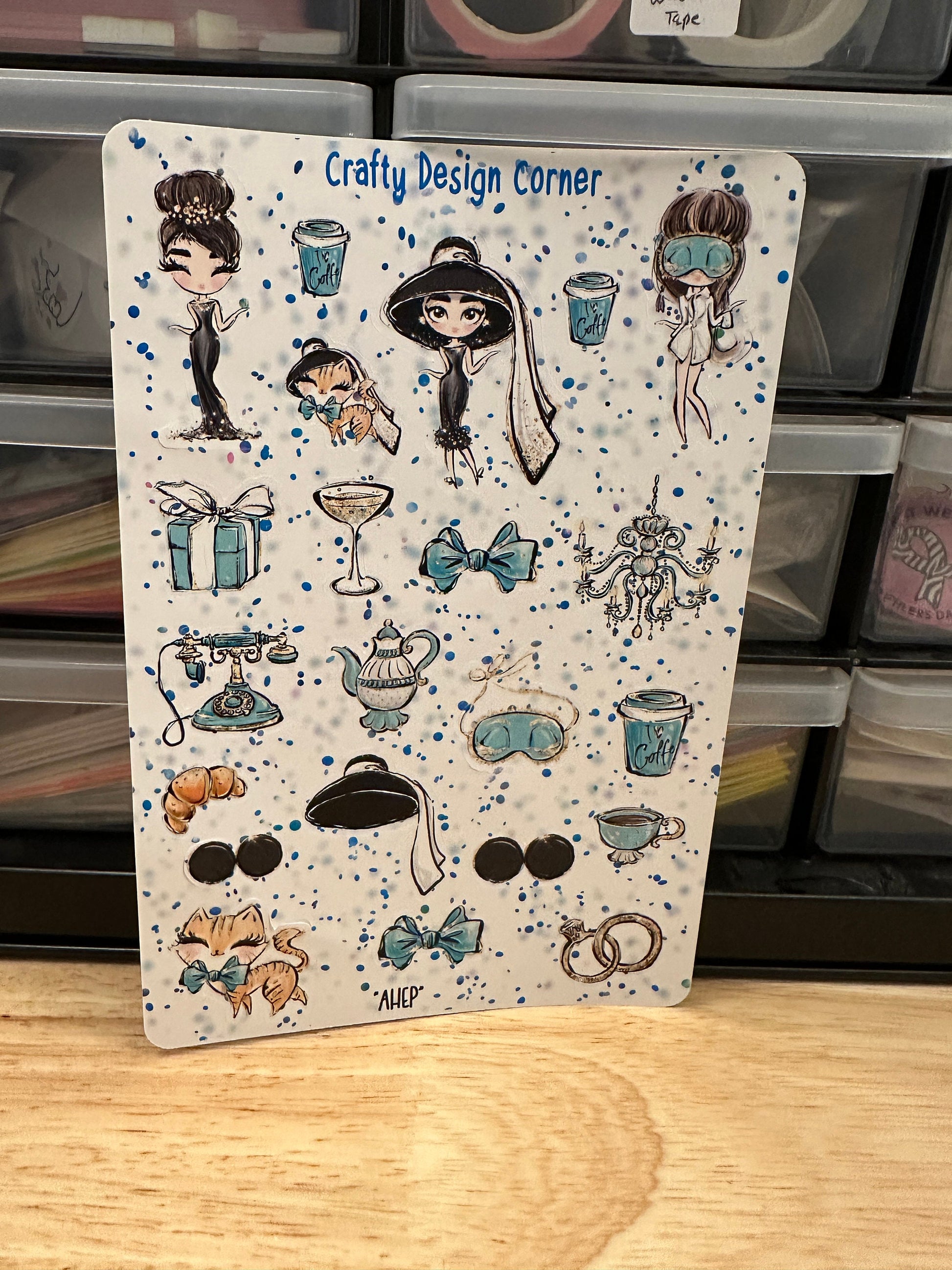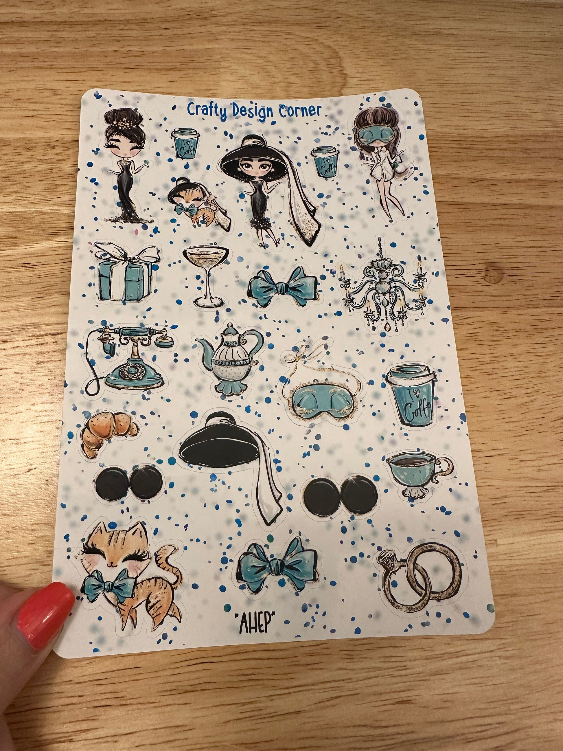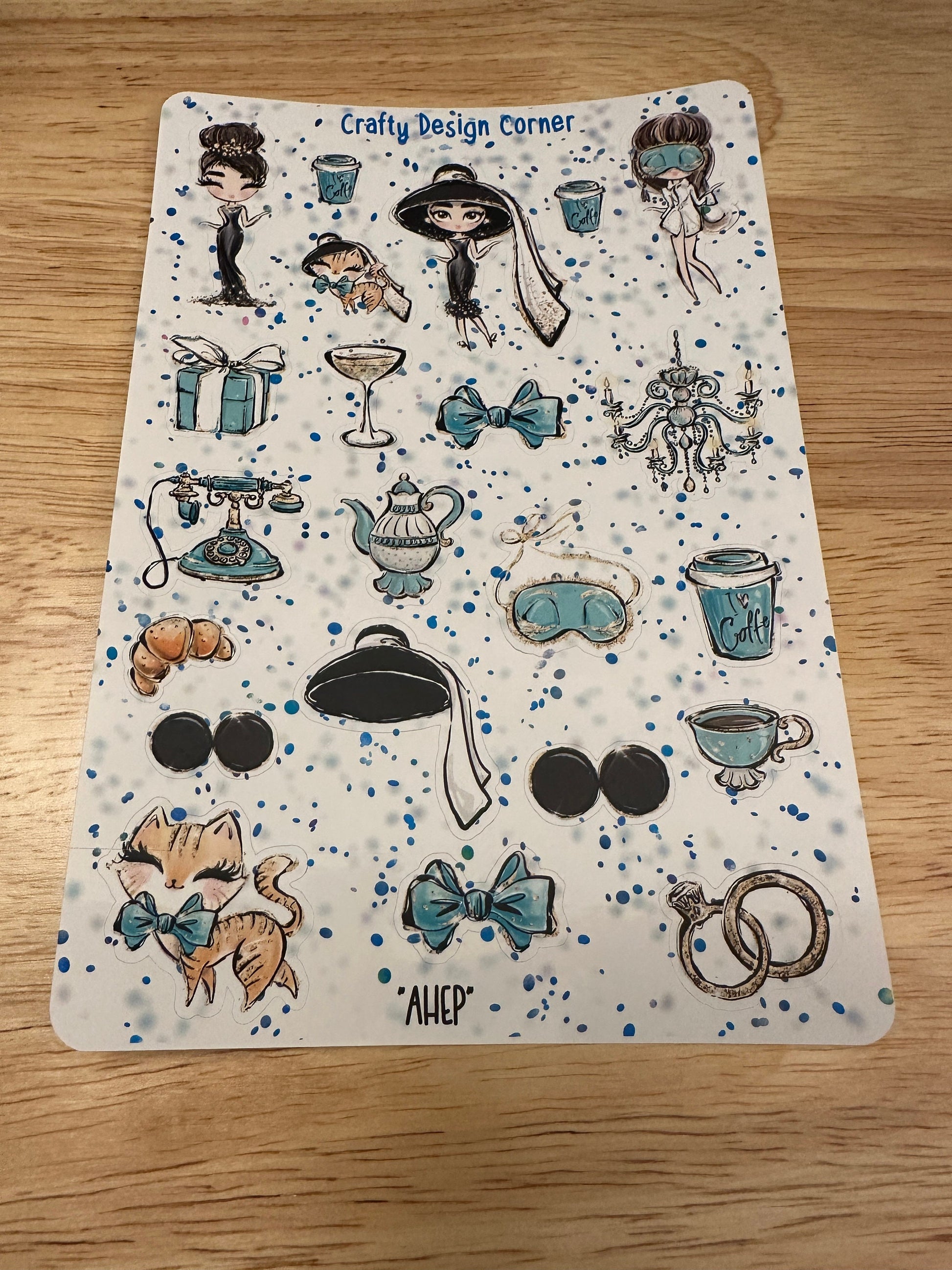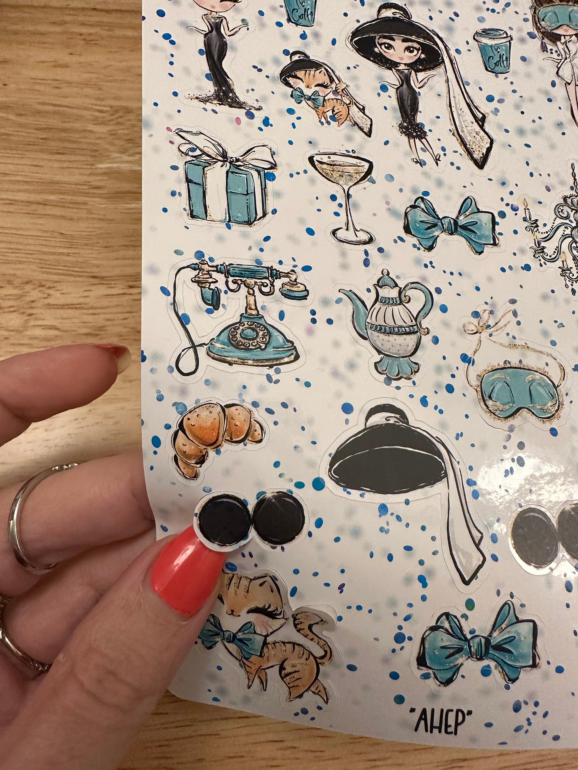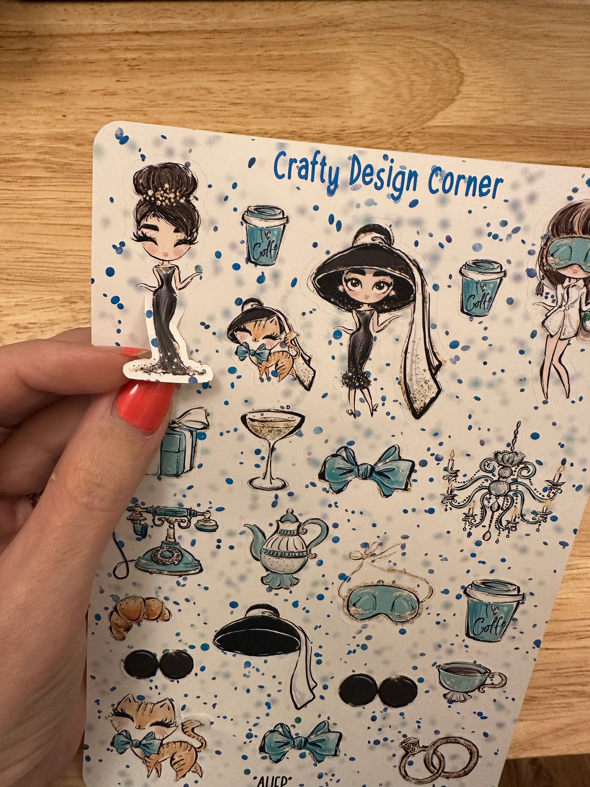 Audrey Hepburn Stickers Glamoured, Glamour Sticker, Cat Sticker, Cute Coffee Stickers, Cute telephone Stickers, Chandelier Sticker