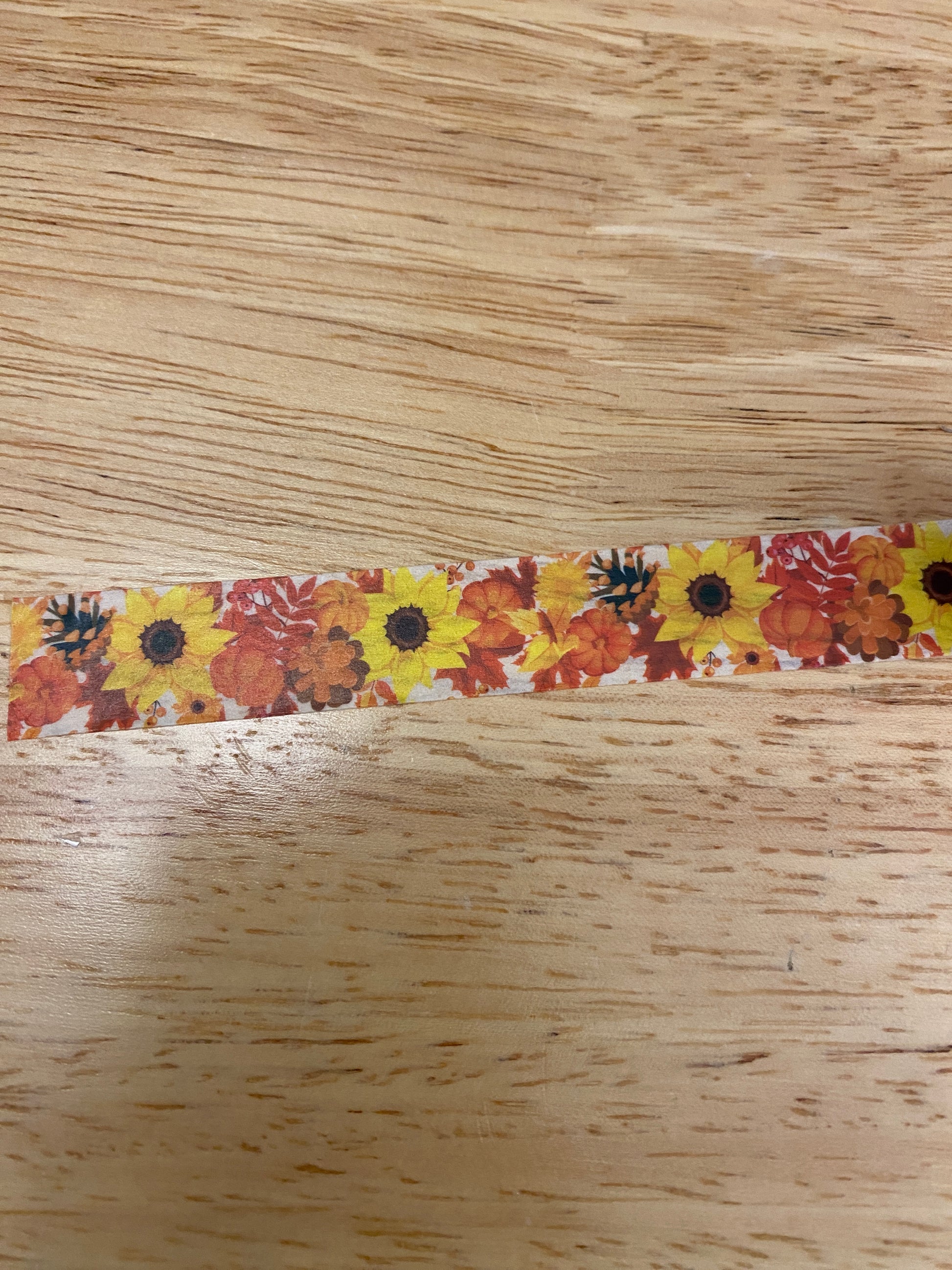 Autumn Sunflower Washi Tape, Fall Flowers Washi Tape roll, Sample Washi Tape, Fall Floral Washi tape, Sunflower and Pine Cones
