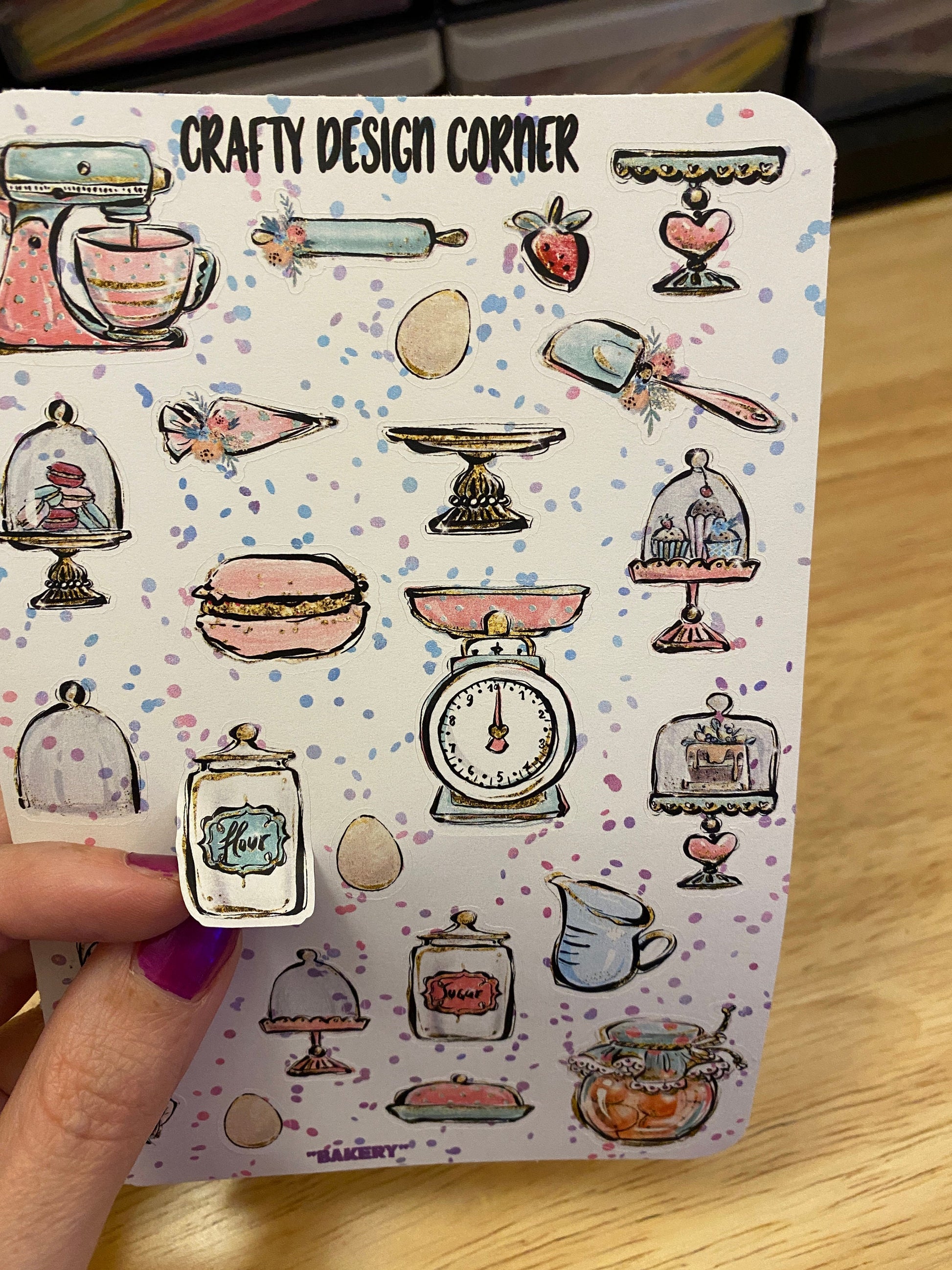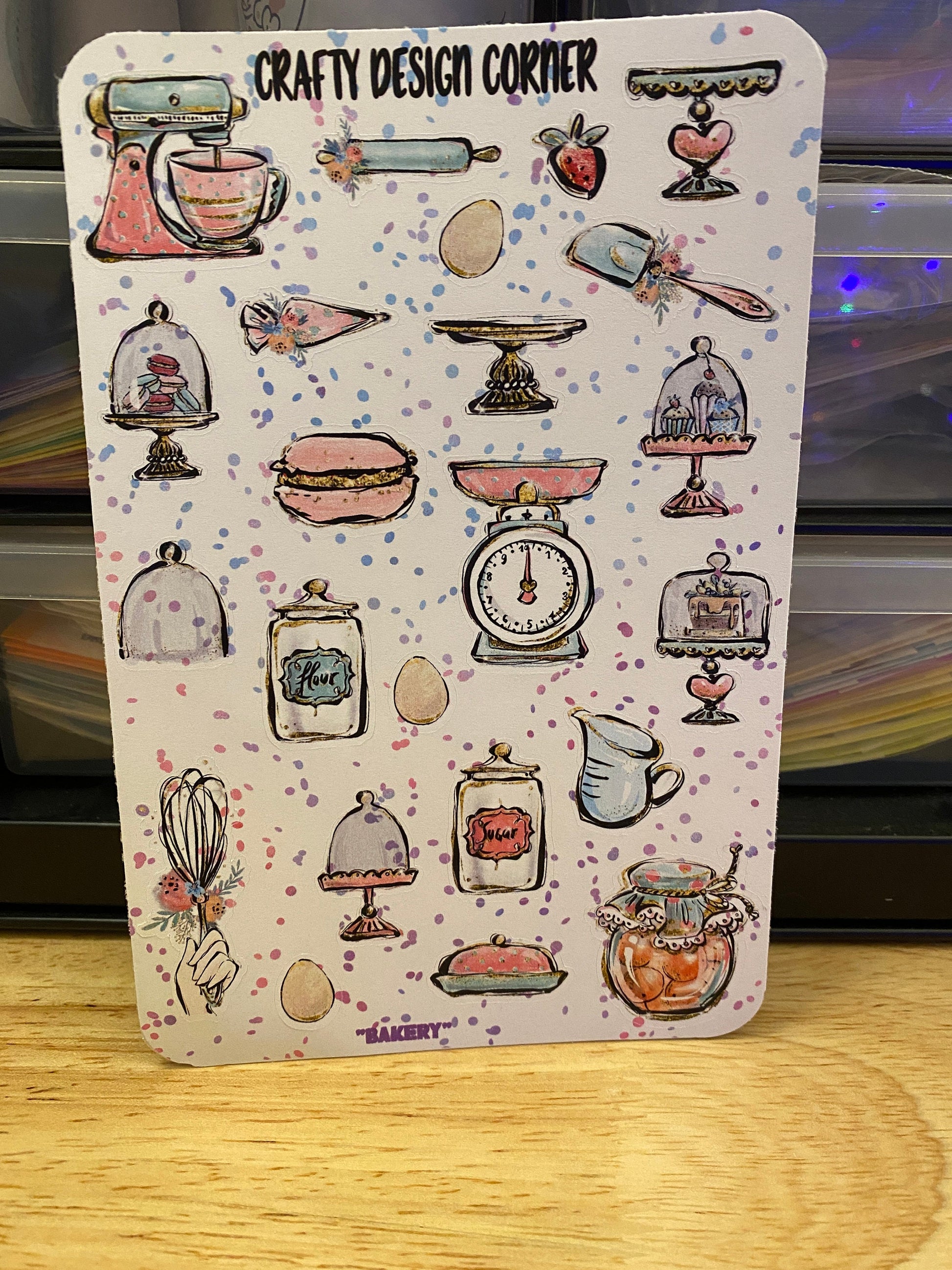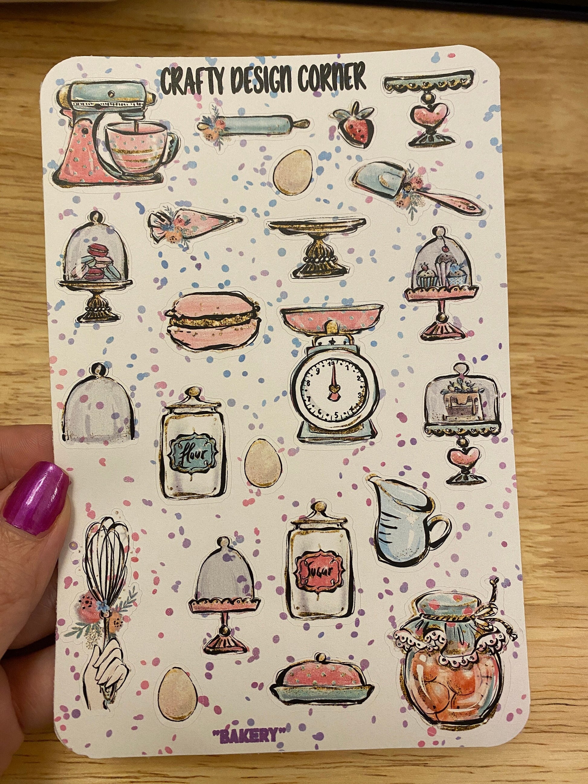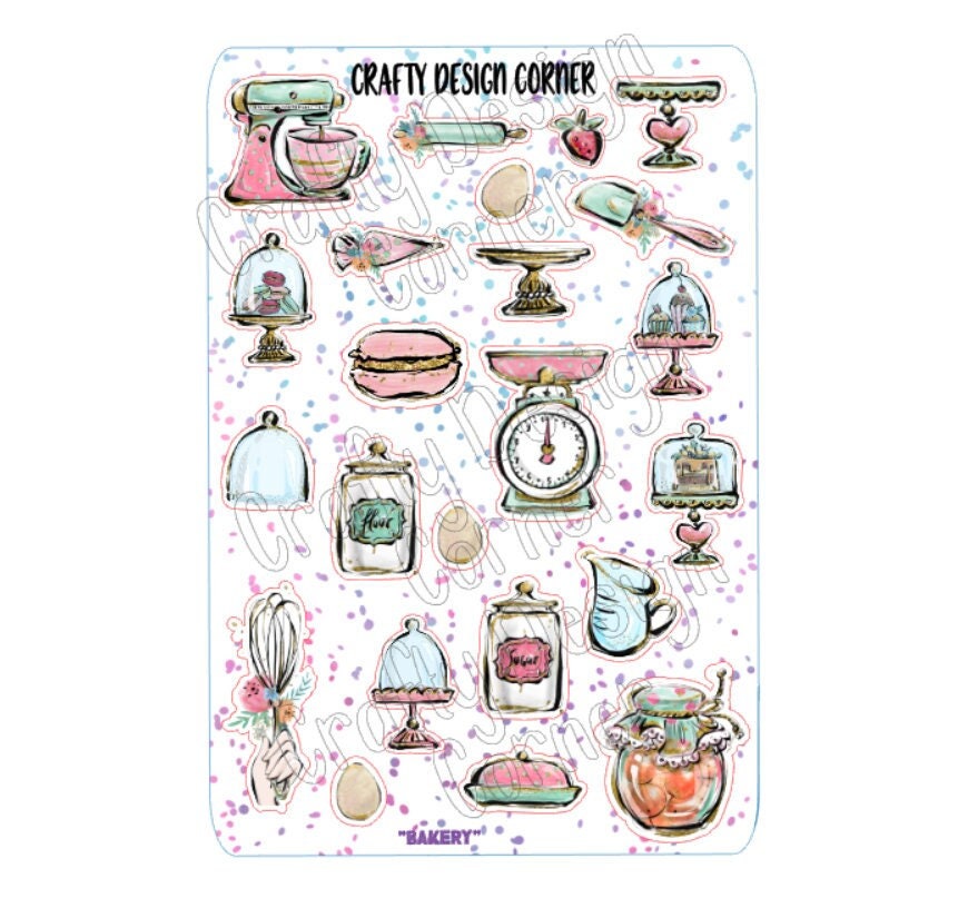 Baking items Stickers. These are printed on either White Glossy or Matte Sticker Paper, and then cut around each sticker leaving a small white outling. Can add to any hard surface, idea for planners.