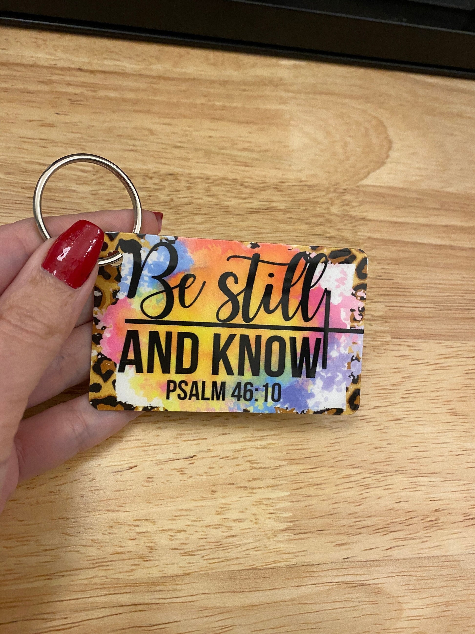 Be Still and Know Key Chain Double Sided. Design is on both sides of the key chains.