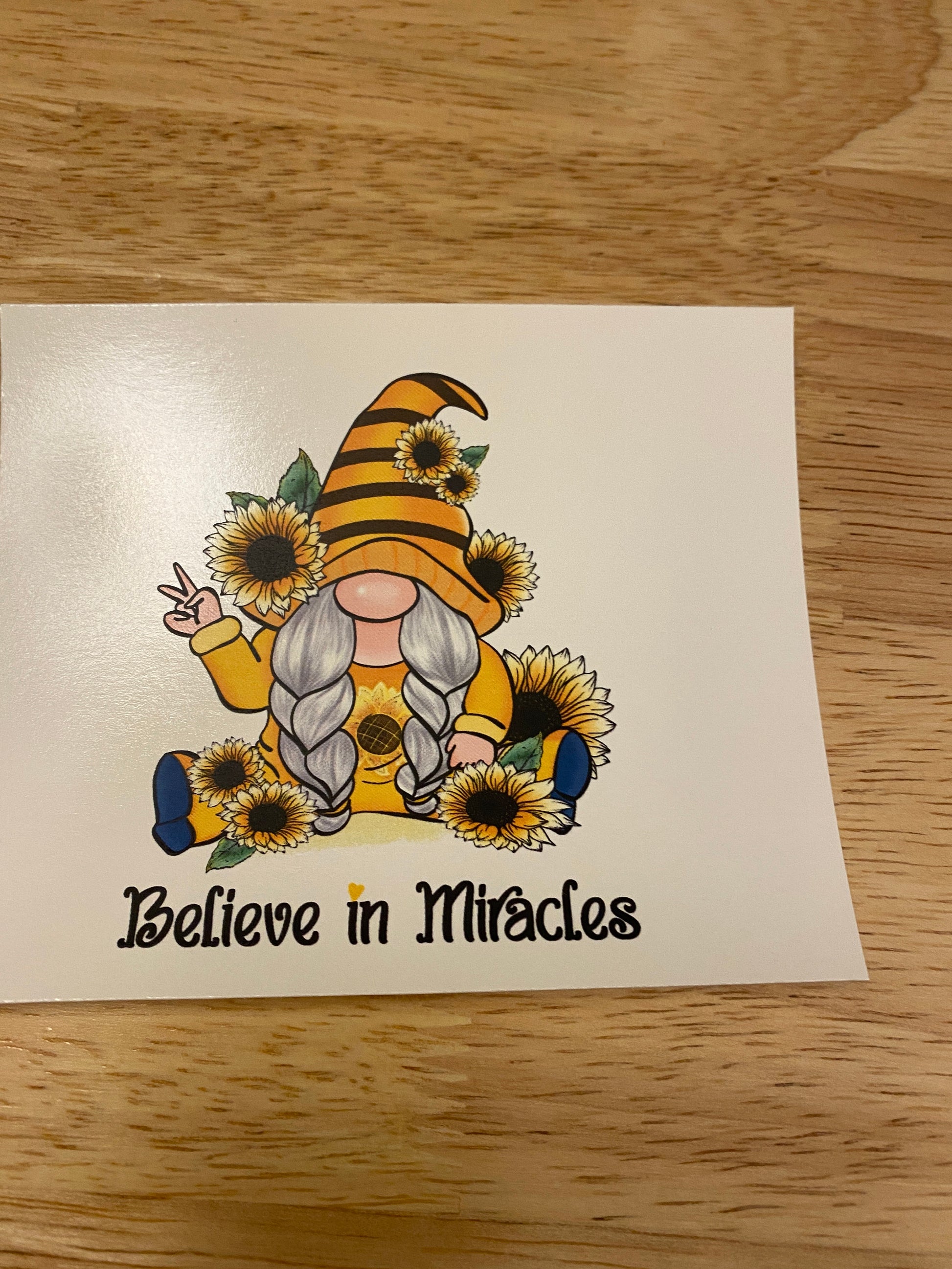 Believe in Miracles Gnome Bee Clear WATER SLIDE
