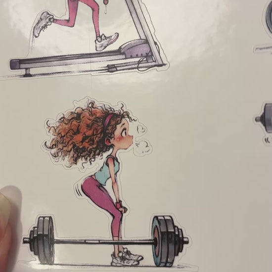 Bench Gym girl sticker sheet, fit girl, workout girl sticker sheet.