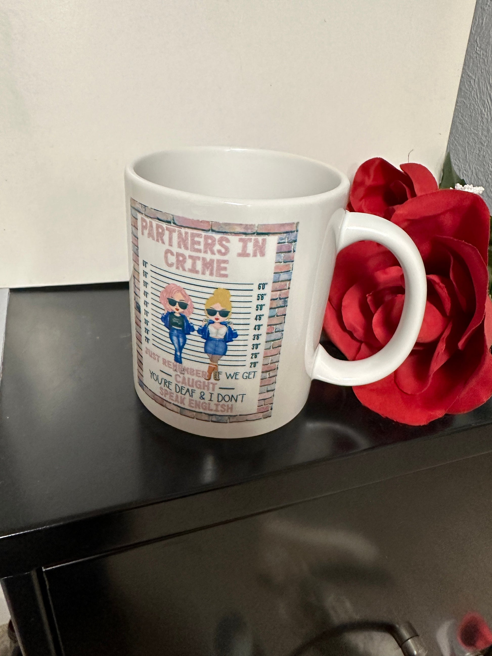 This mug is a ceramic mug, that has special ink burned into for a permanent design.