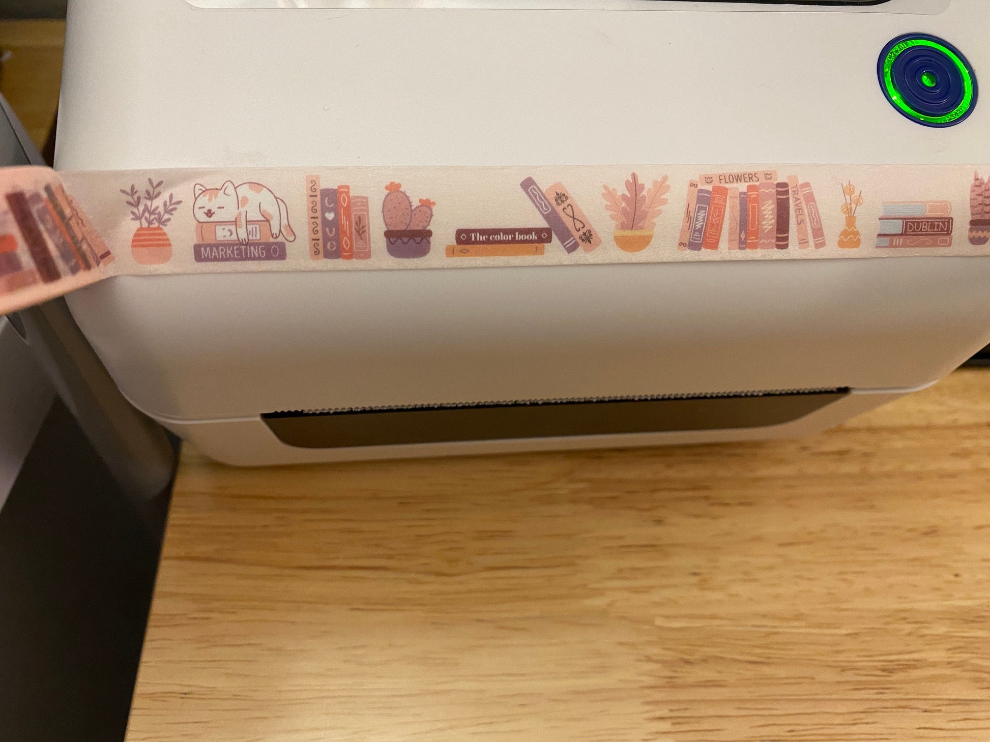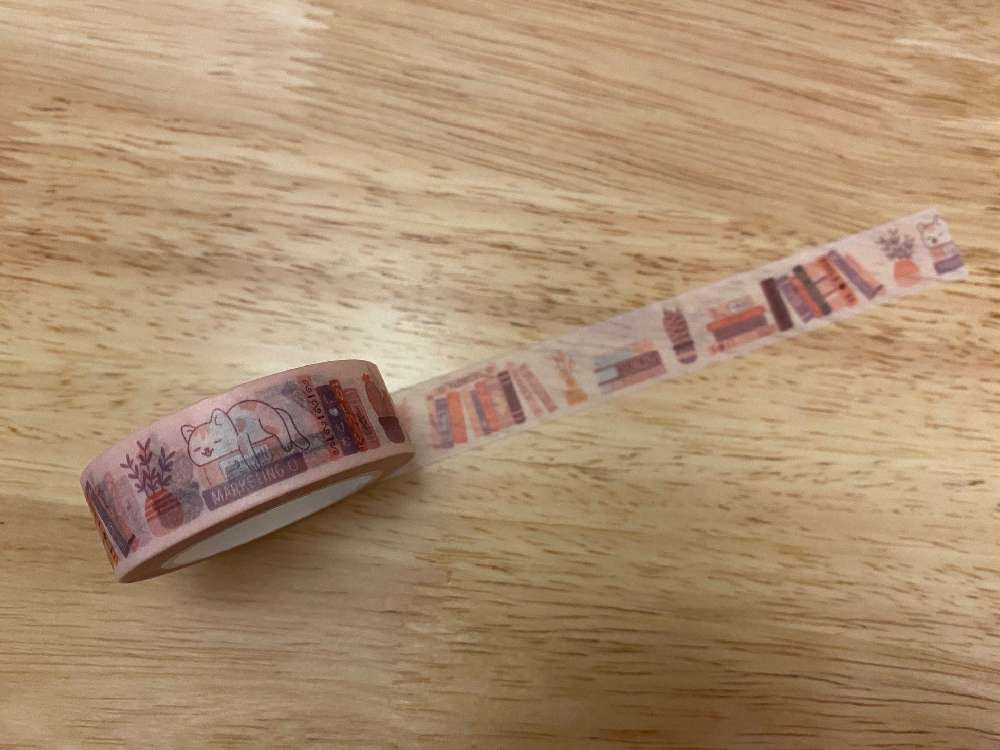 Big Roll of Books with a white kitty cat Washi Tape, Shelf of Books Washi Tape roll, Office Wahi tape, Adhesive Masking Tapes