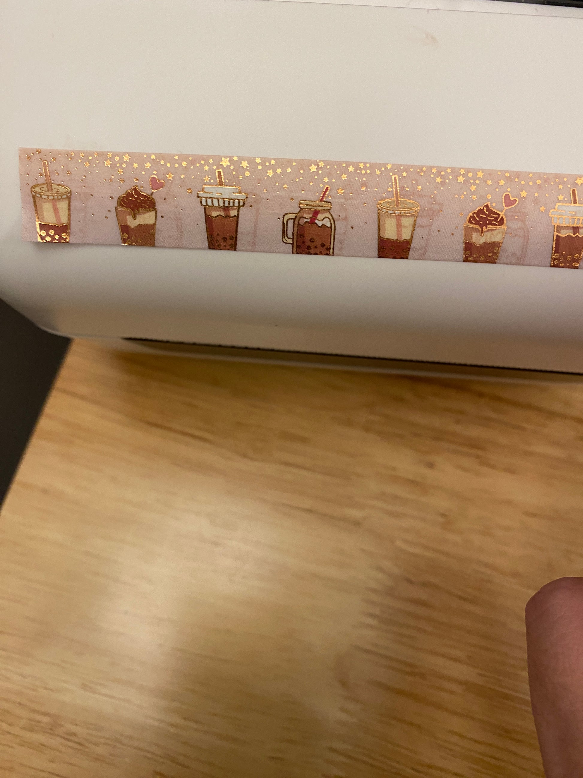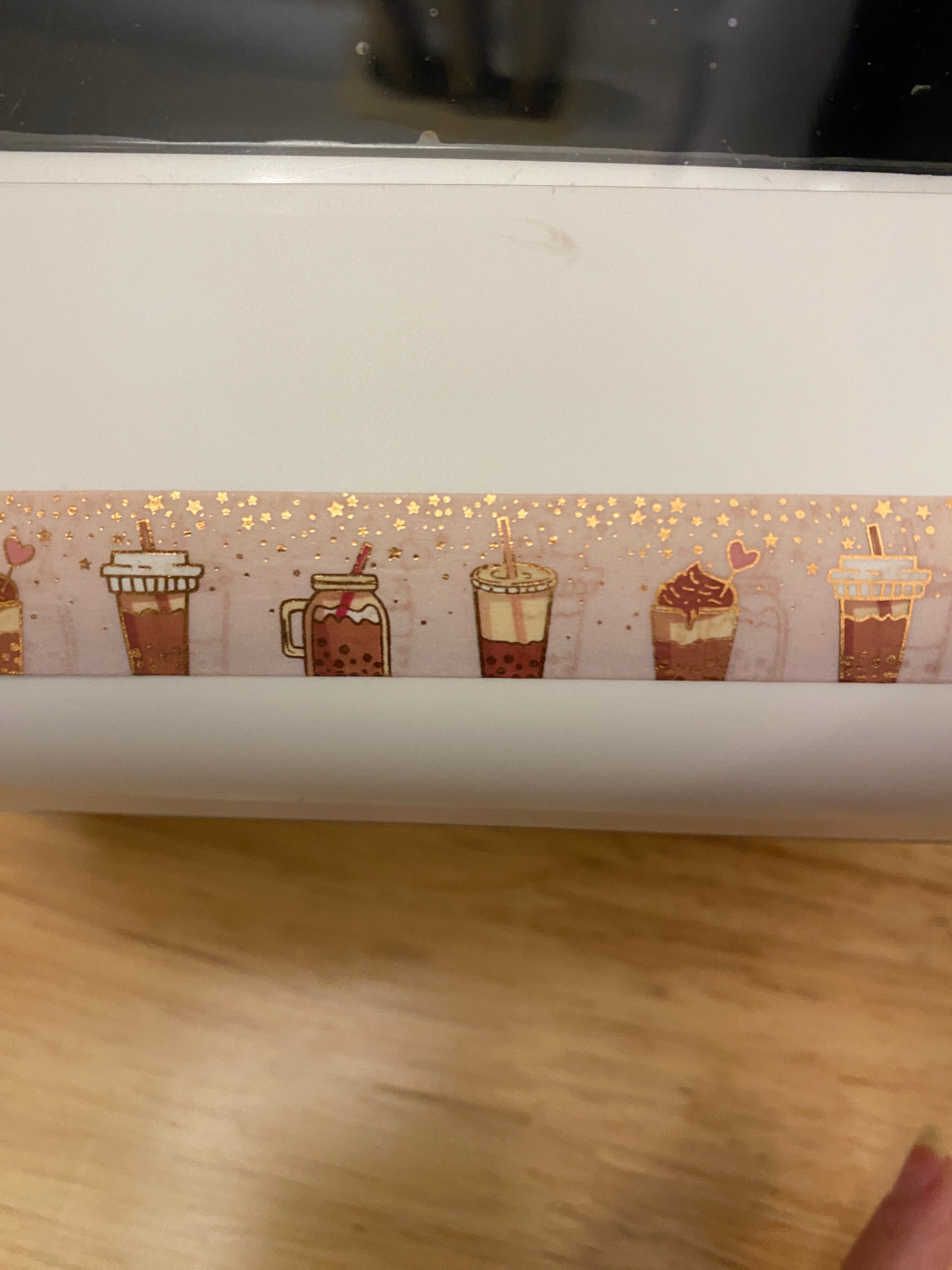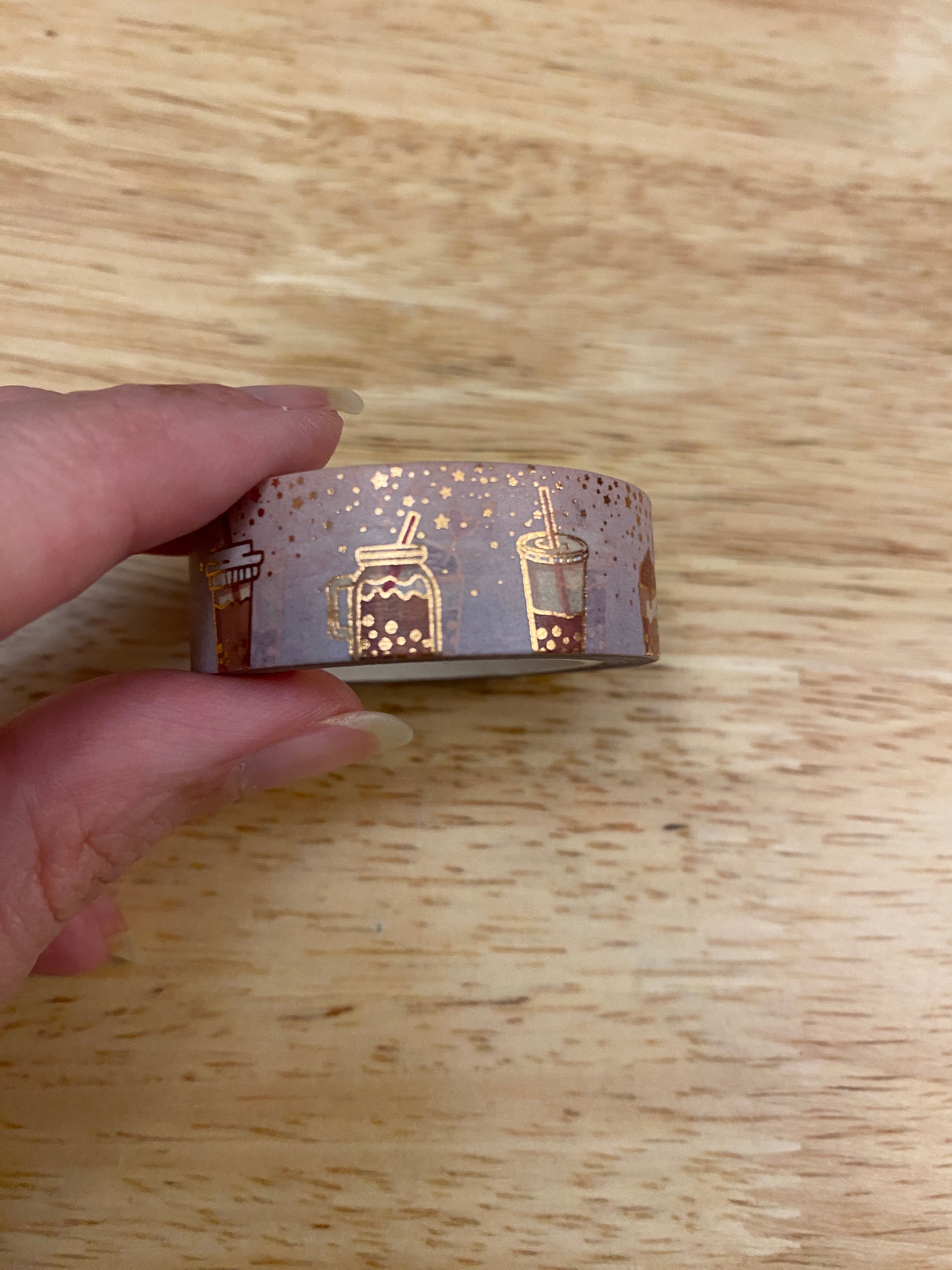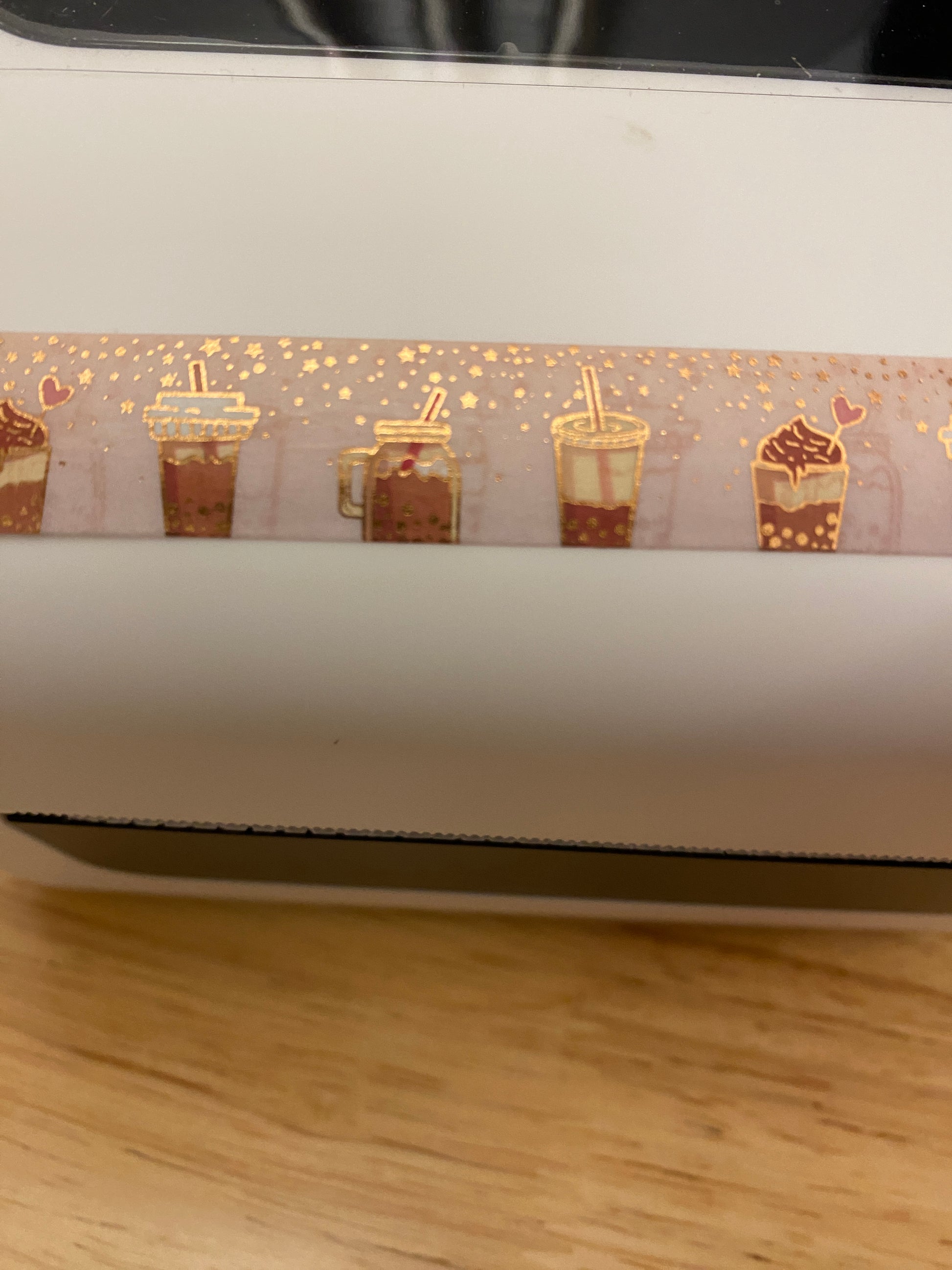 Big Roll of Coffee with Foil Washi Tape, Foiling printing around the cups, and the top in gold foil