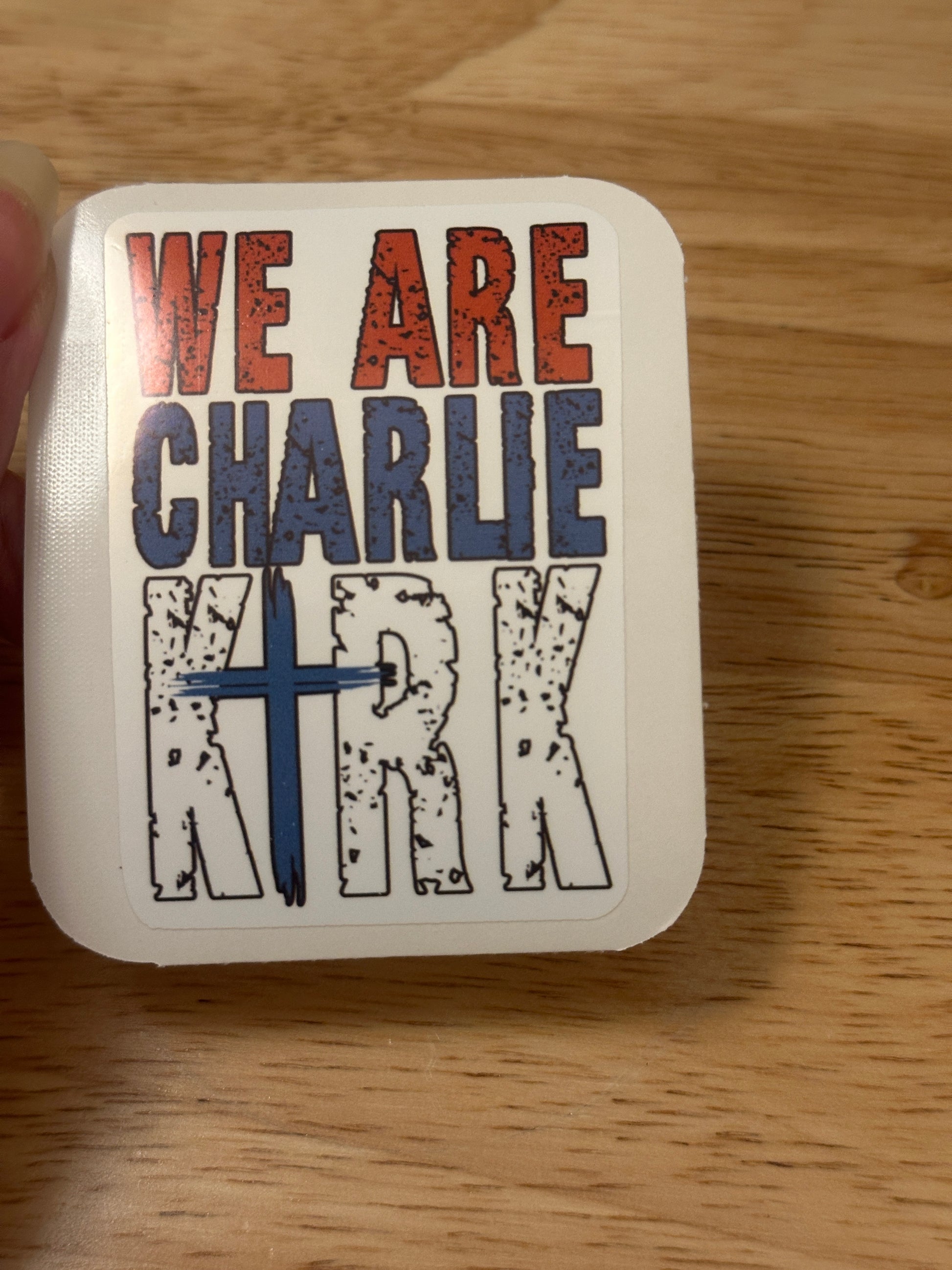 Bold We Are Charlie Kirk Sticker with cross design. This is printed on very strong White Vinyl type of BOPP Paper and then cut around each sticker leaving a small white outline. They can be added to almost any hard smooth non-textured surface. Great to decorate your laptop.