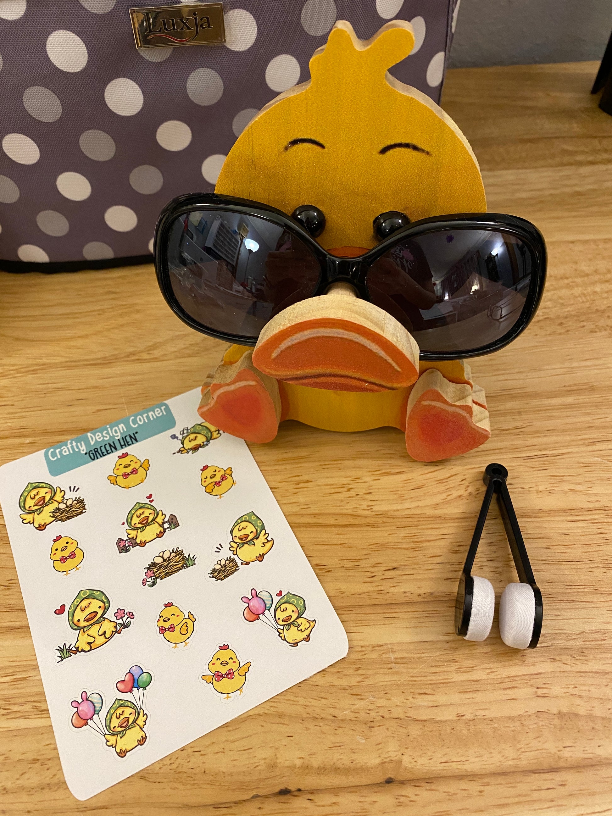 Duck Stand Bundle comes with Sun Glasses Cleaner and Cute Sticker Sheet, Duck Glasses Holder, wooden eyeglasses stand set, Duck Bundle