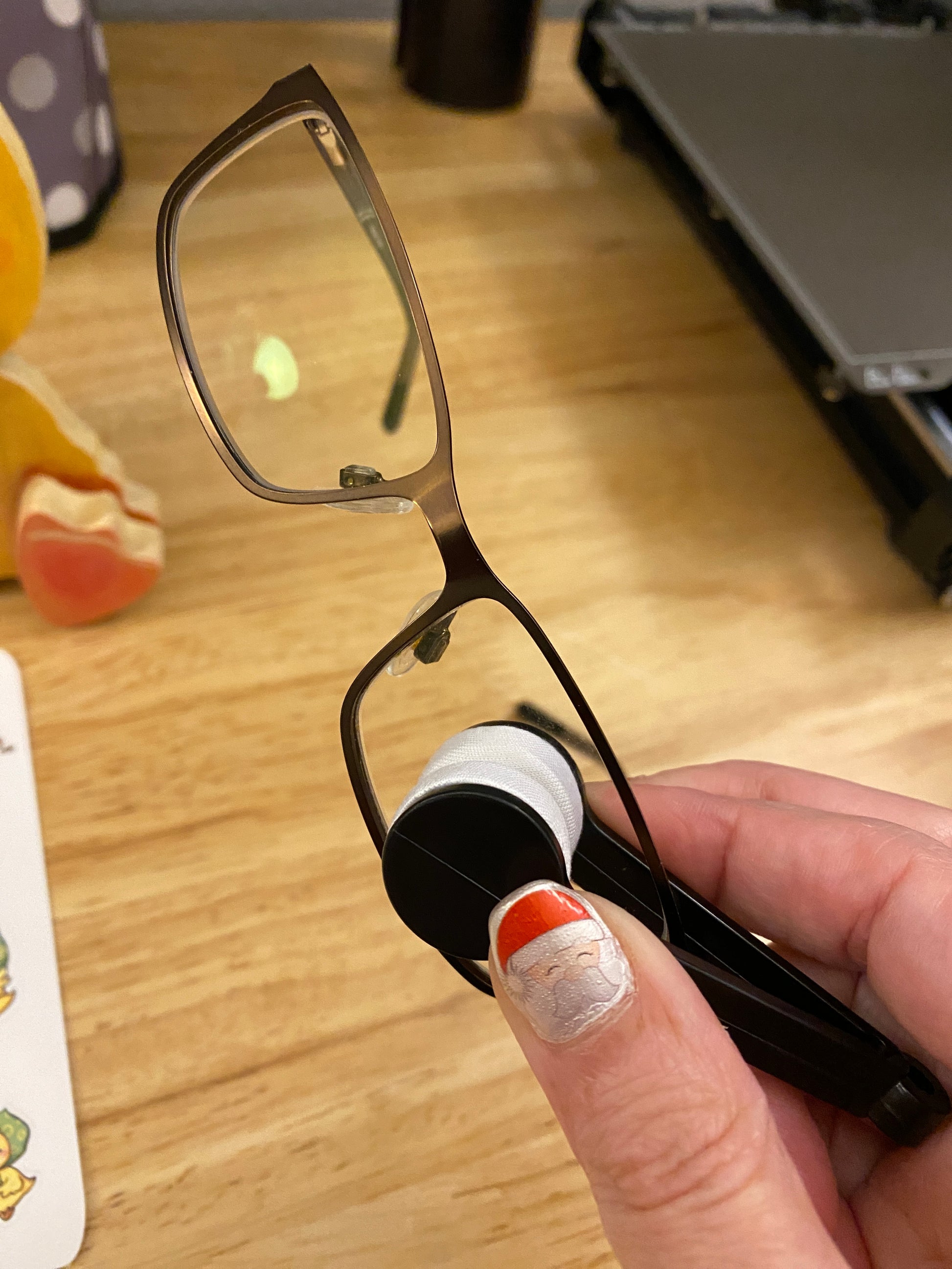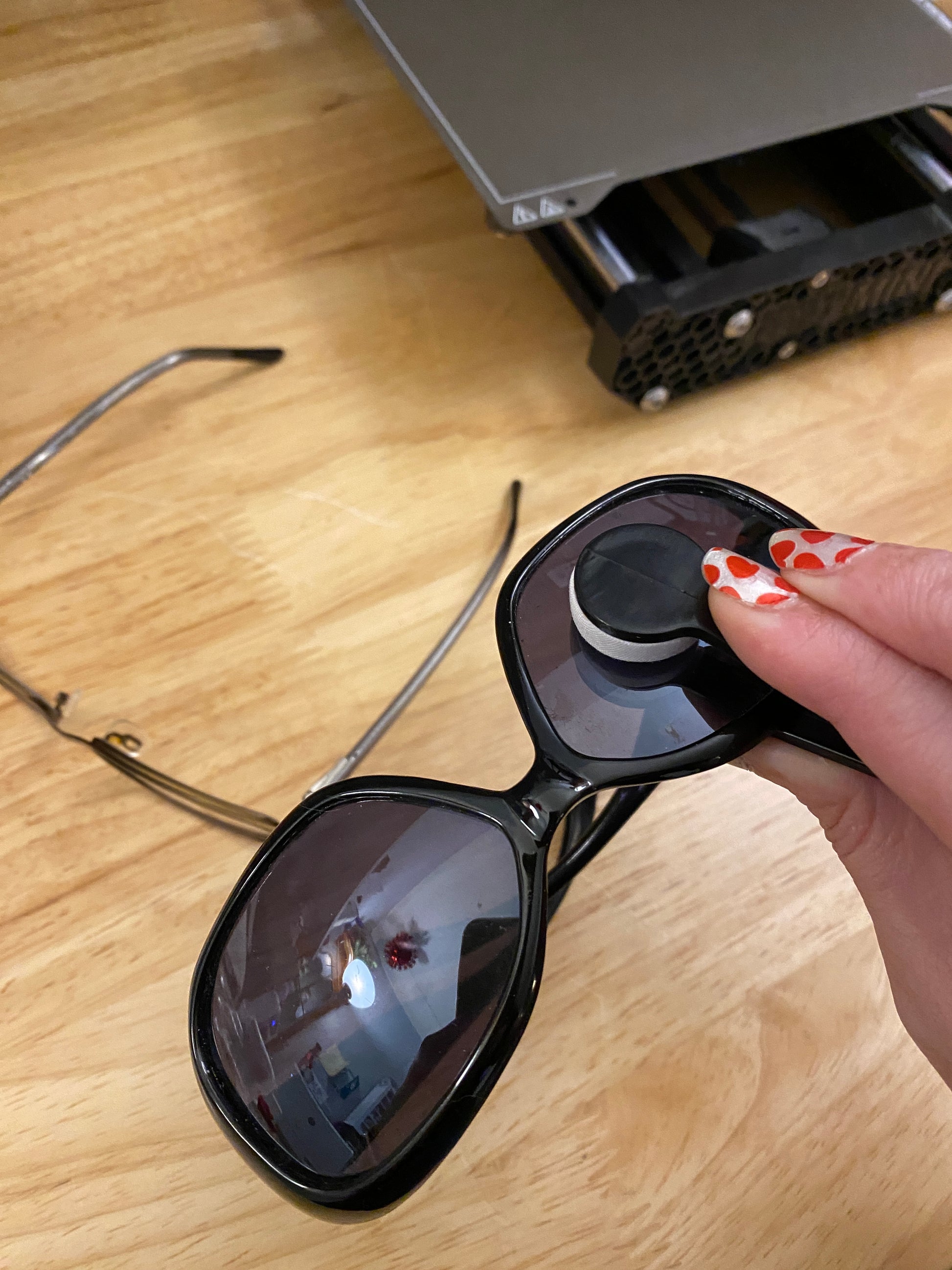 Make sure sunglass lenses are free of any free dirt first then place the sunglasses lenses as shown in photos in between the 2 white cushions and rub over sunglasses lenses to clean.