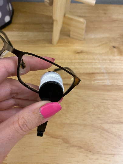 Make sure sunglass lenses are free of any free dirt first then place the sunglasses lenses as shown in photos in between the 2 white cushions and rub over sunglasses lenses to clean.
