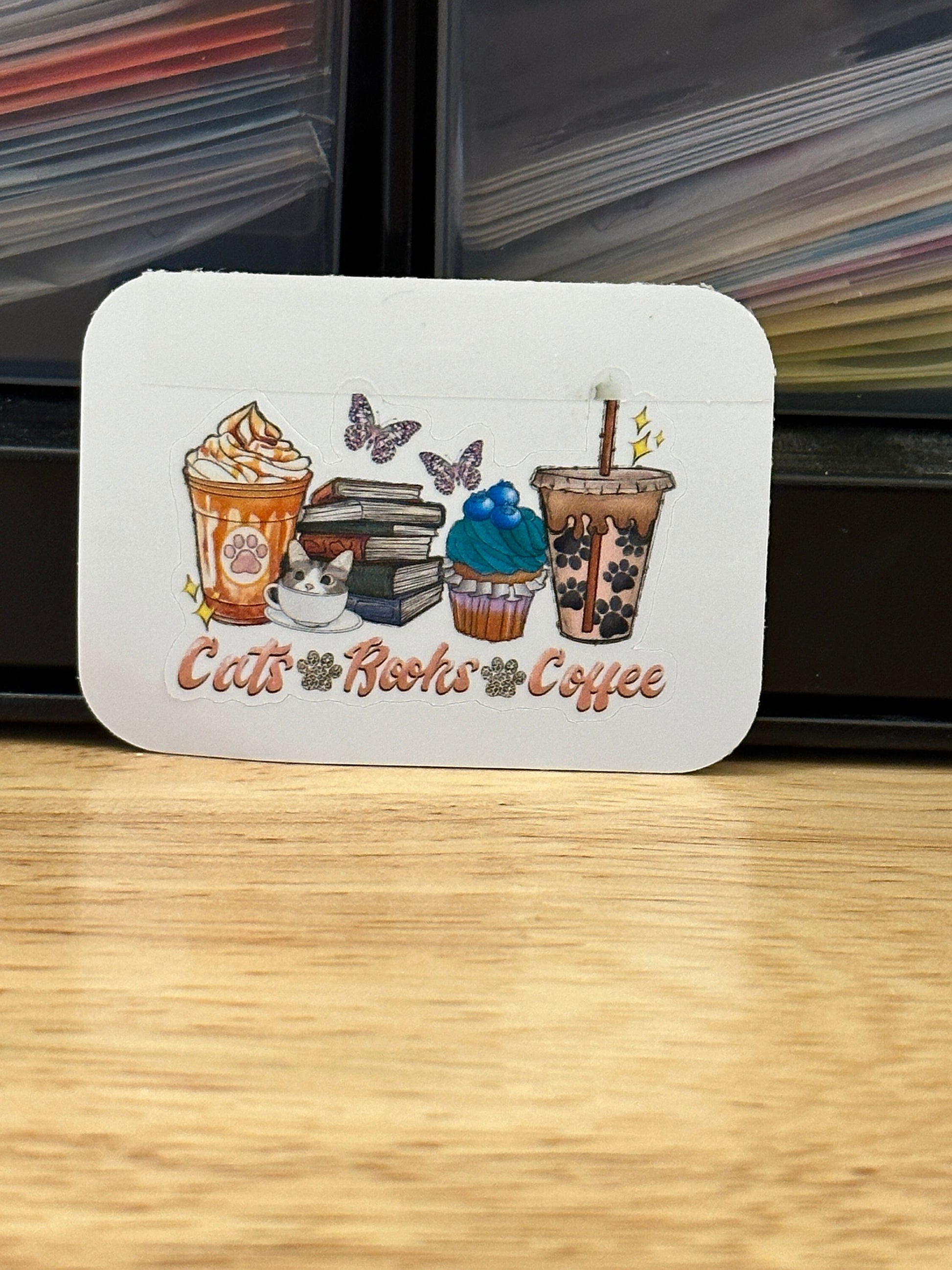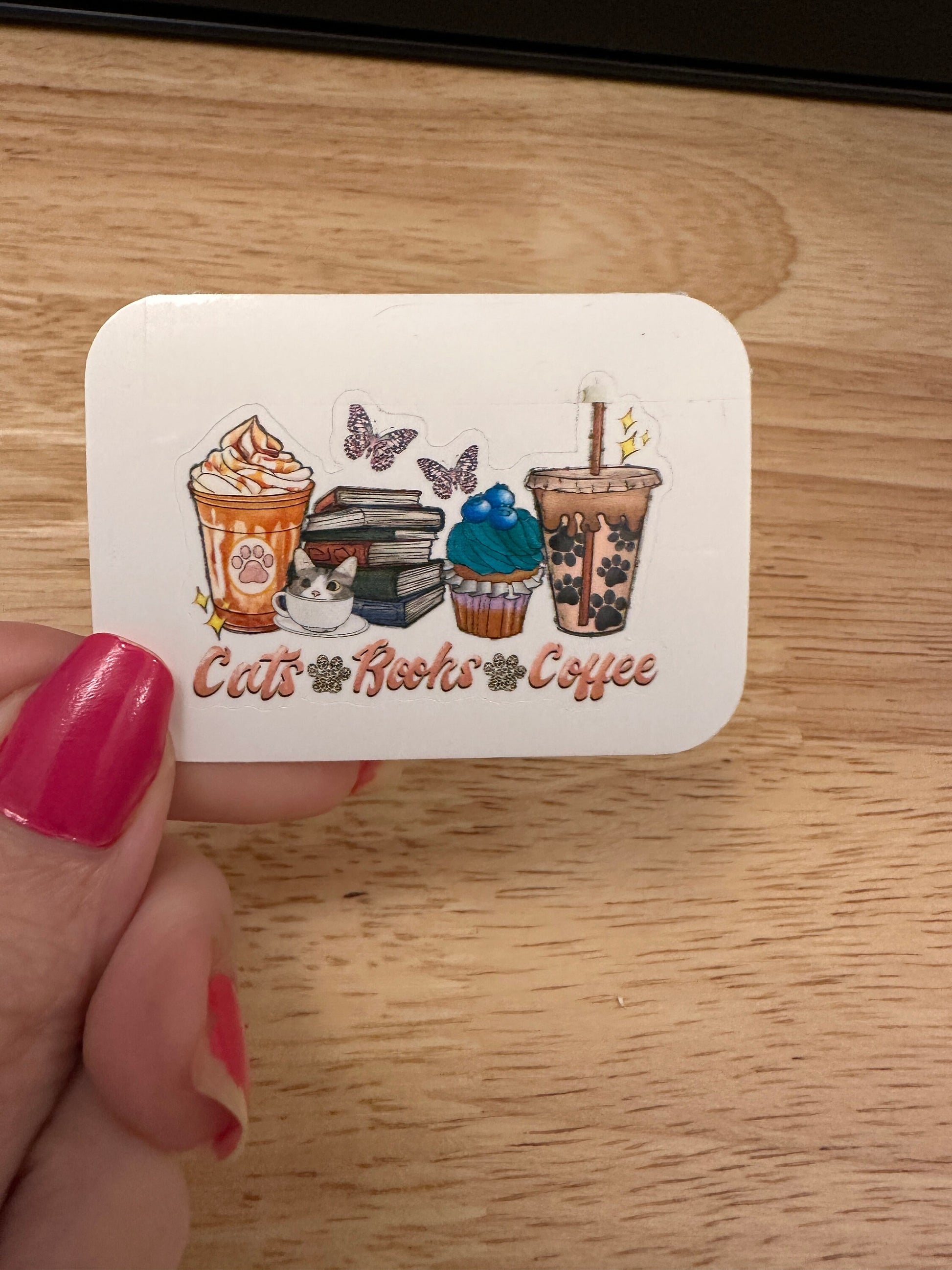 Cats Books and Coffee Lineup sticker, Coffee books and Cats line up, cats and coffee line up sitcker, cats books and coffee sticker