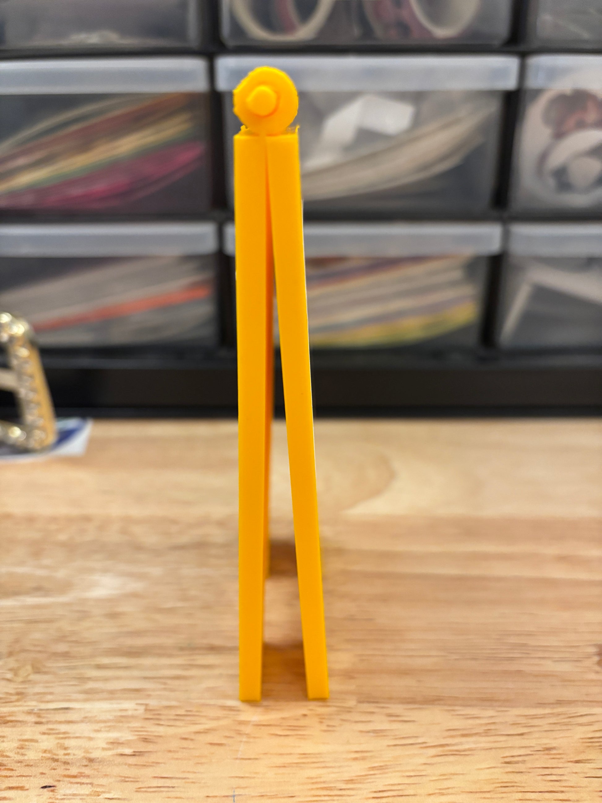 This Stand Measures: almost 5" high x 2.75" when shut about .75" deep