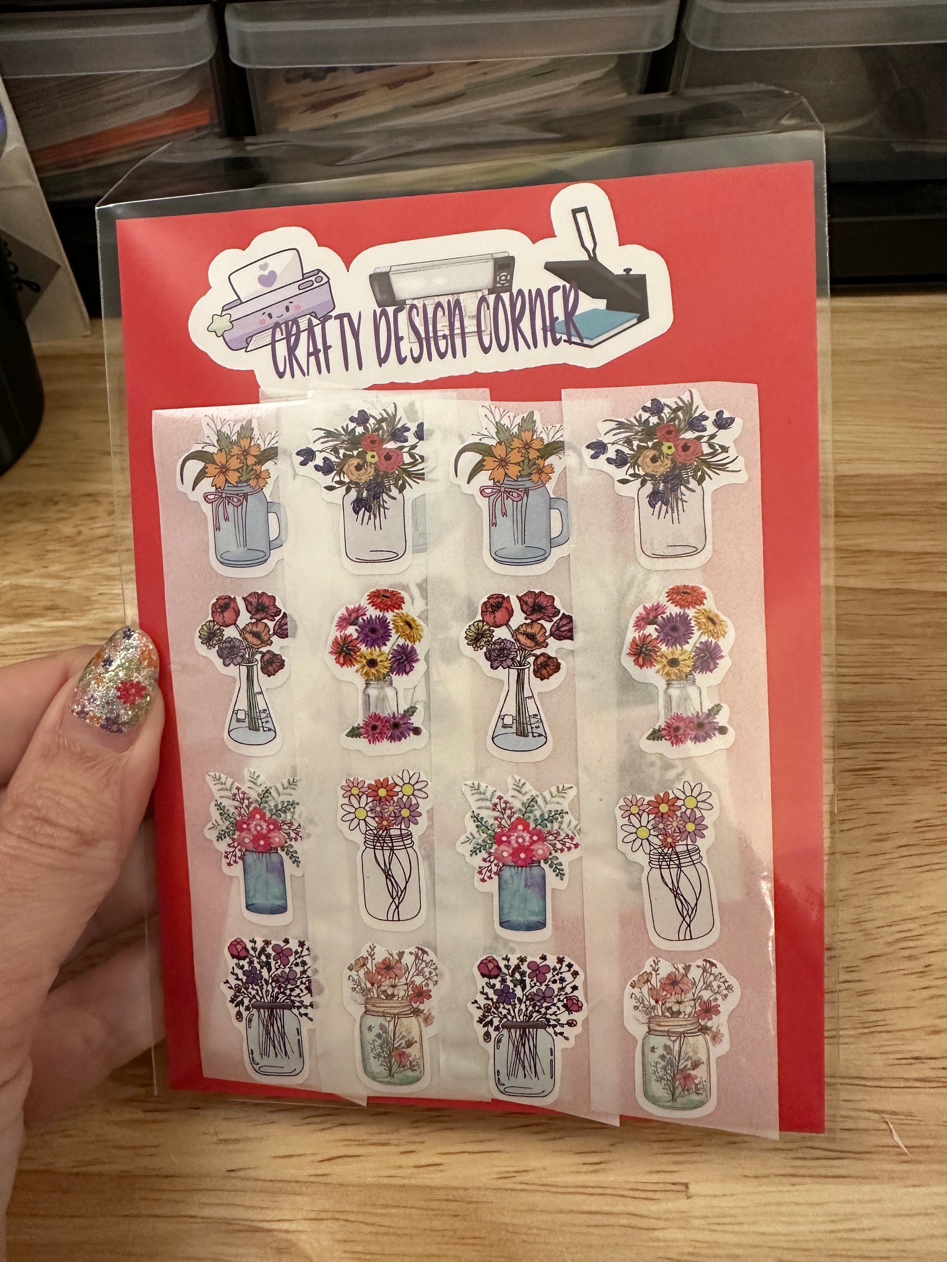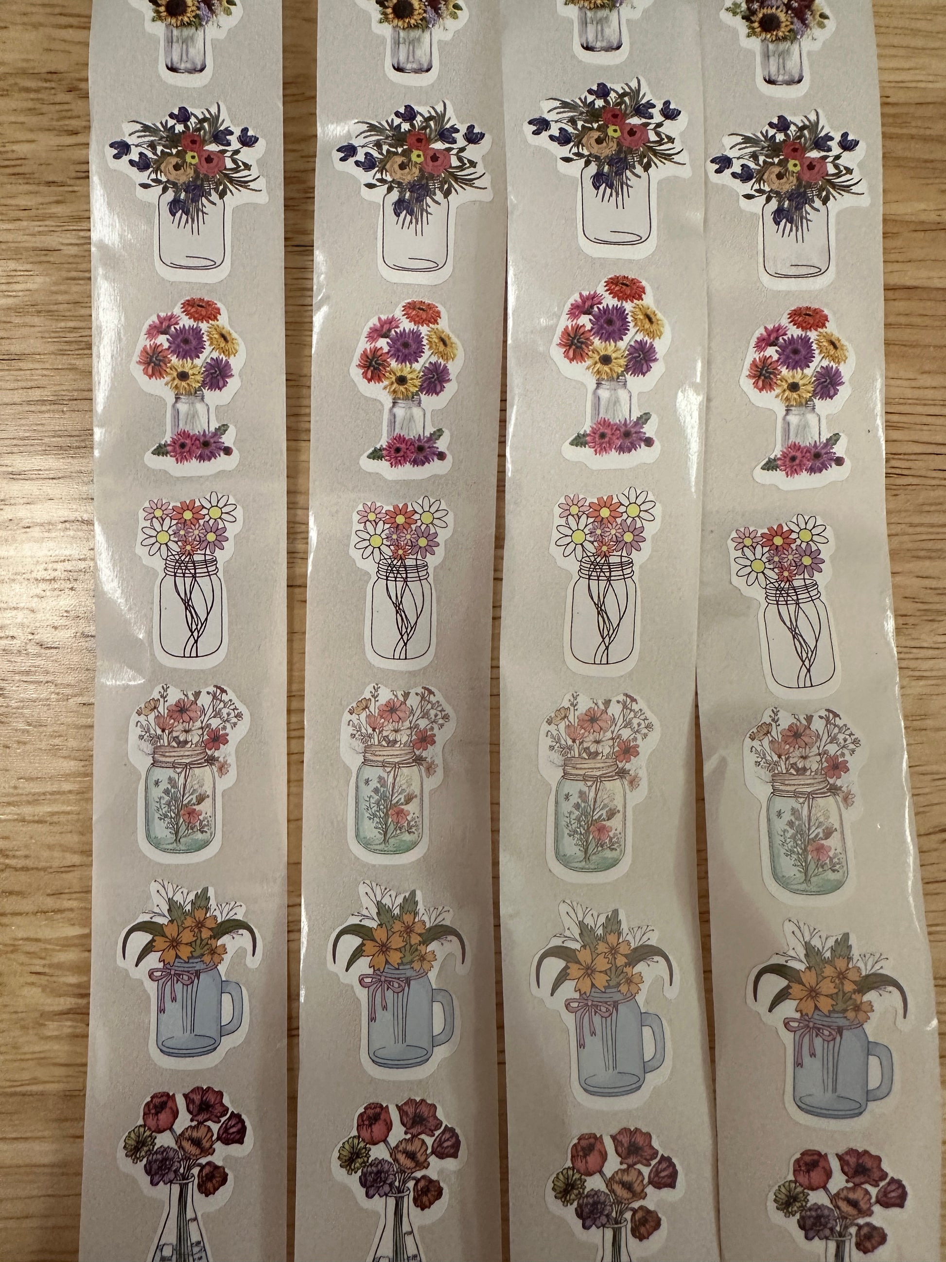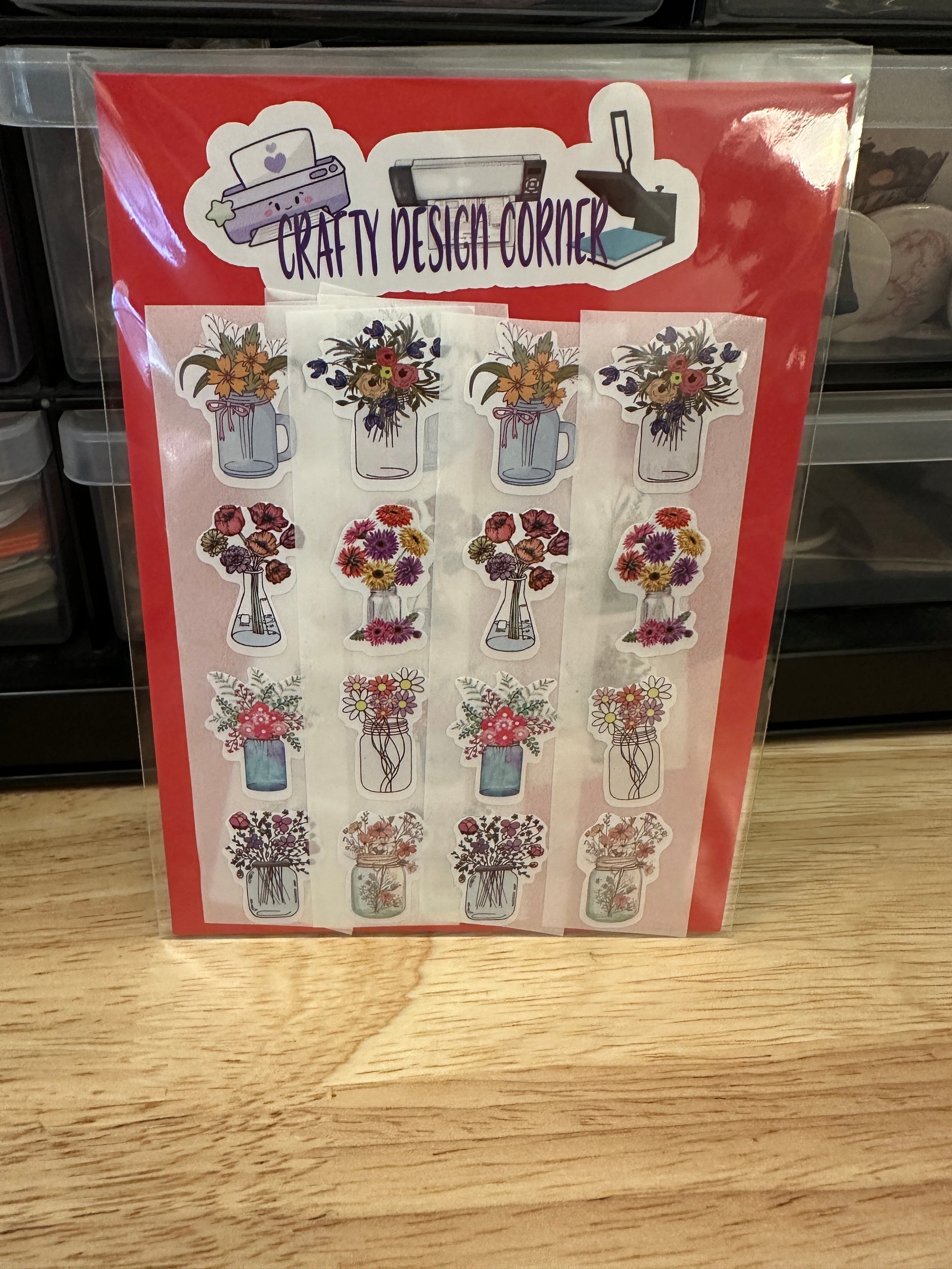 36 piece Flower Sticker Pack, Vased Flowers Sticker Pack, Sticker Pack, Cute Flower Sticker Pack, Mason Jar Flowers
