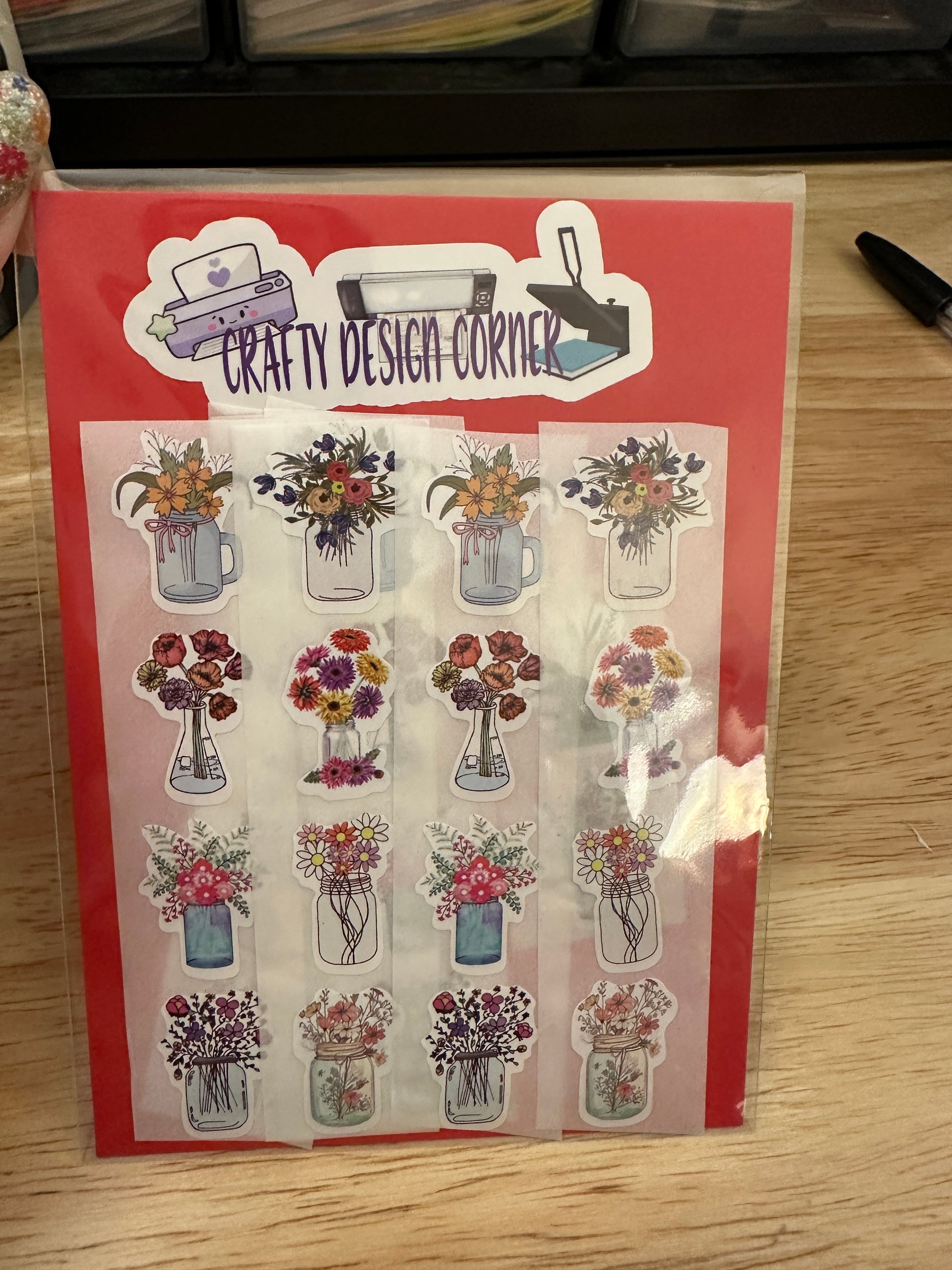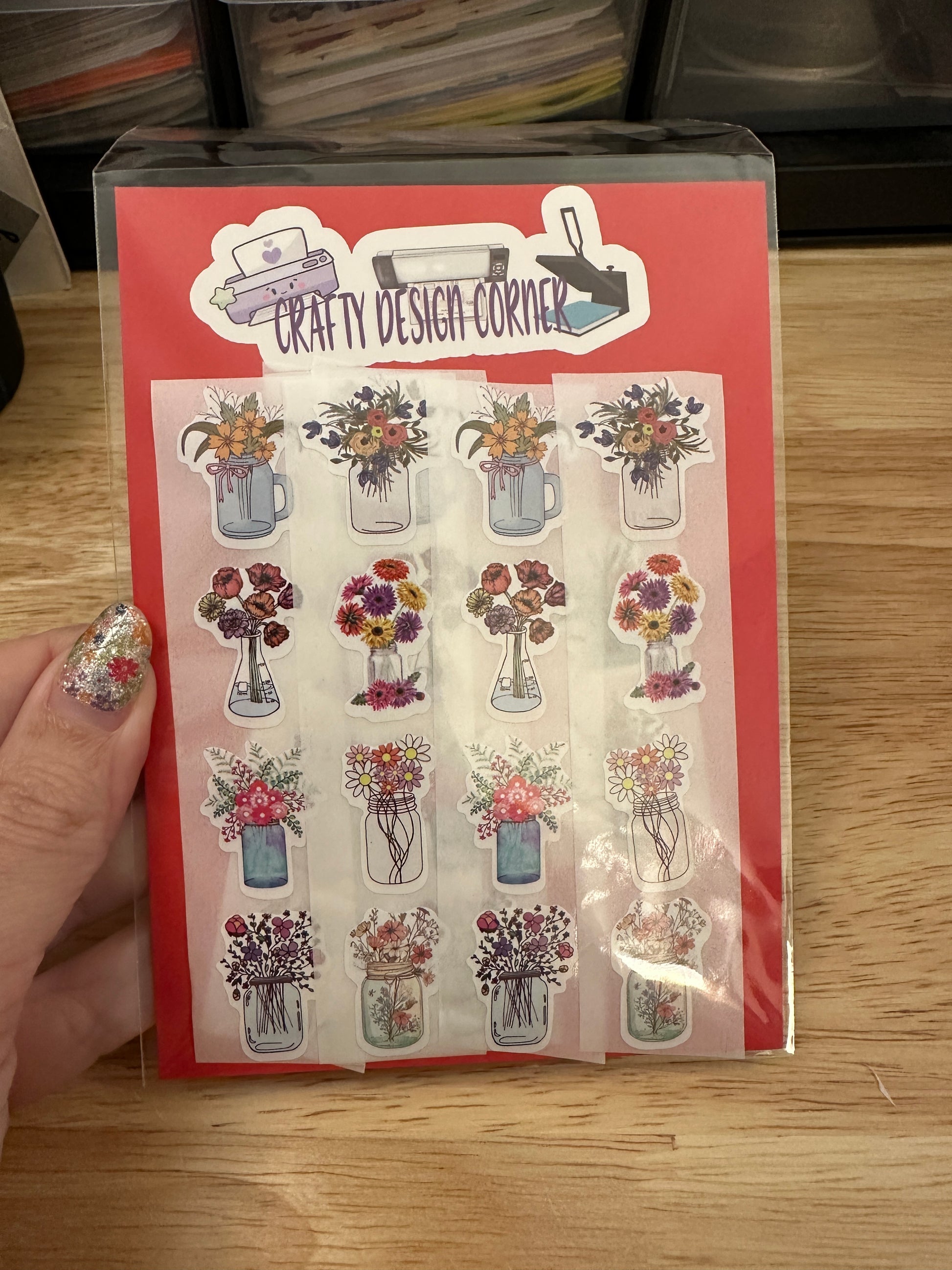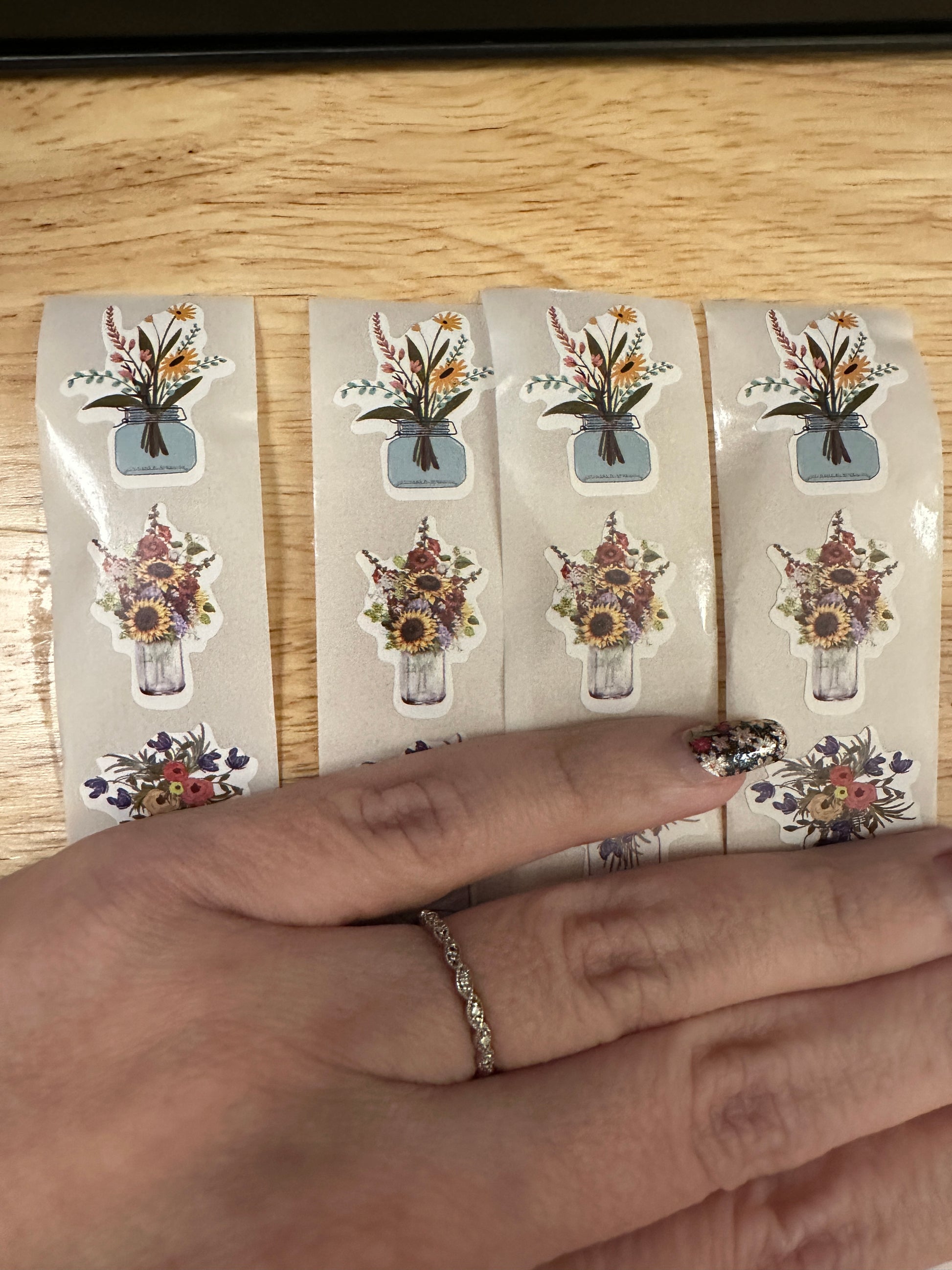 36 piece Flower Sticker Pack, Vased Flowers Sticker Pack, Sticker Pack, Cute Flower Sticker Pack, Mason Jar Flowers