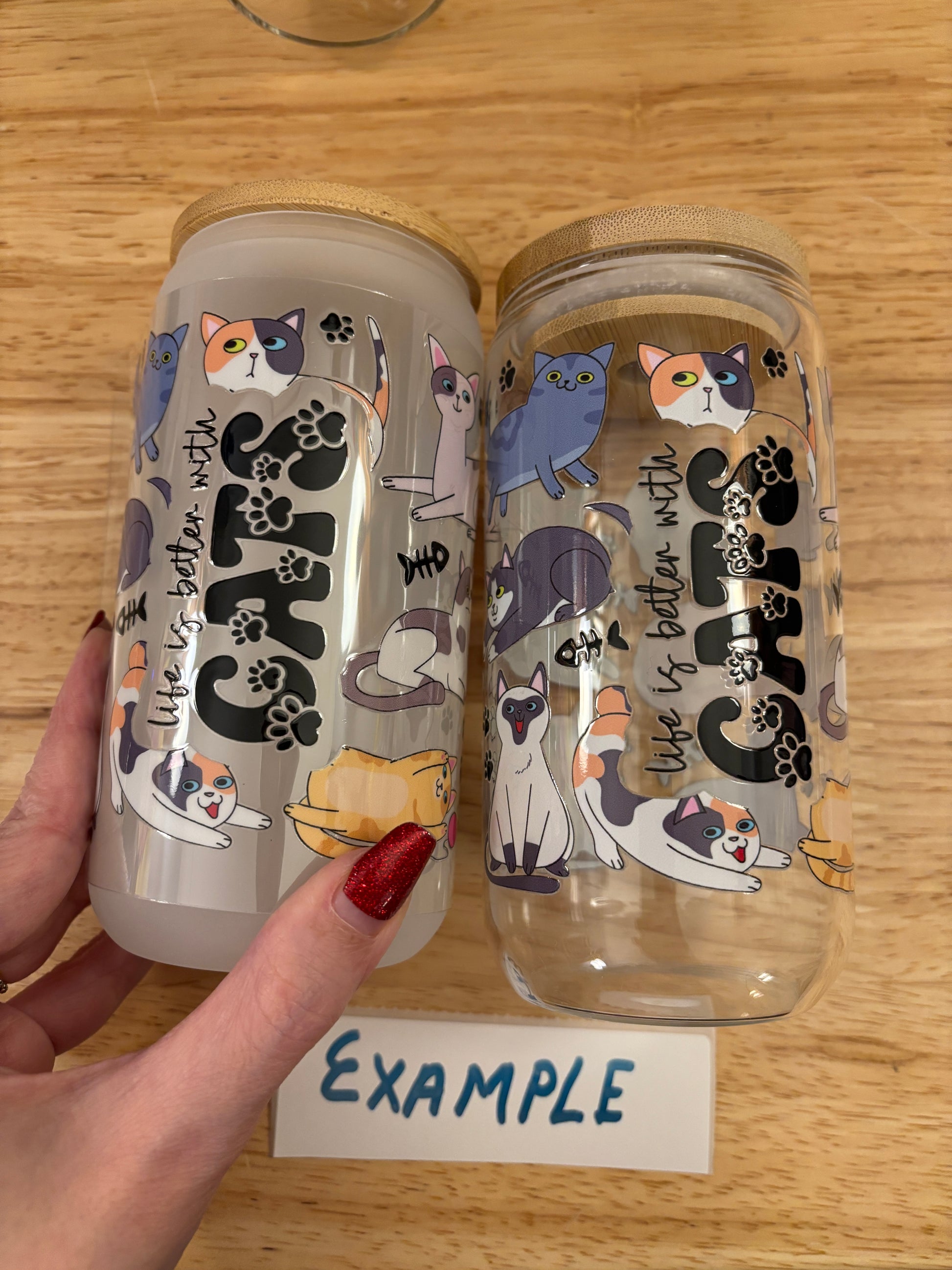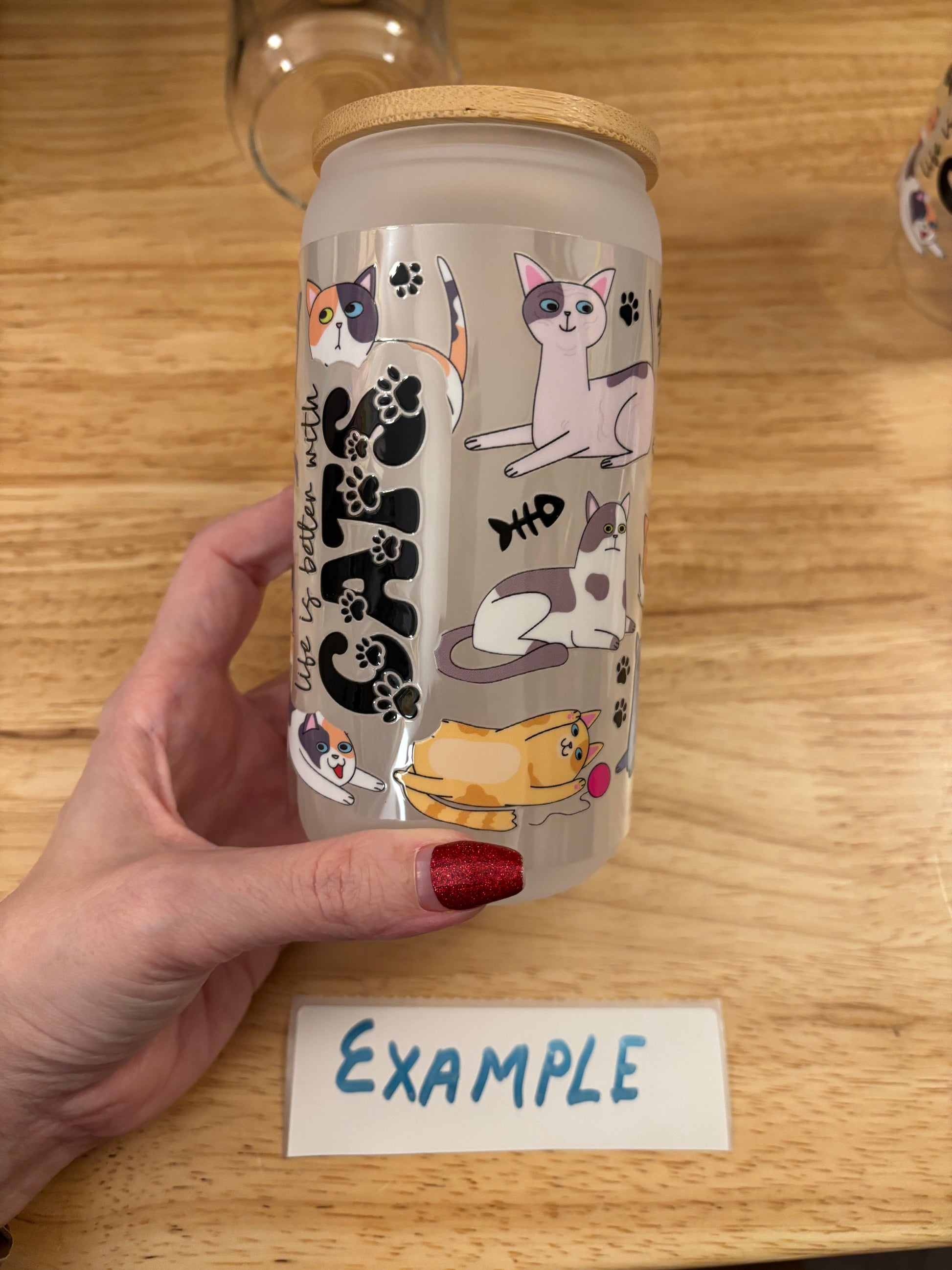 The Cat Tumbler shown is for example purposes only to show what a design will look like on either