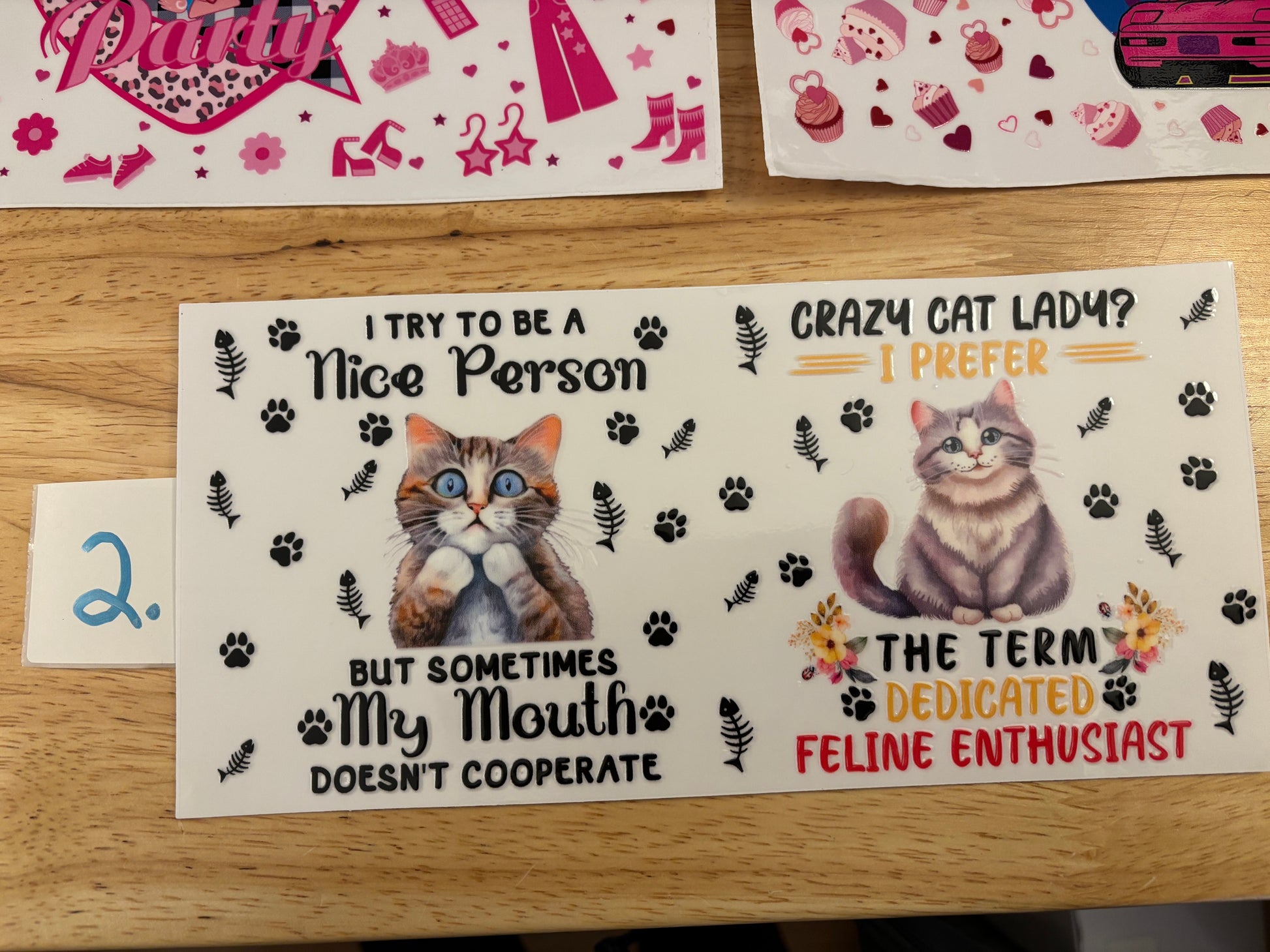 The Cat Tumbler shown is for example purposes only to show what a design will look like on either the Clear or the Frosted Tumbler.