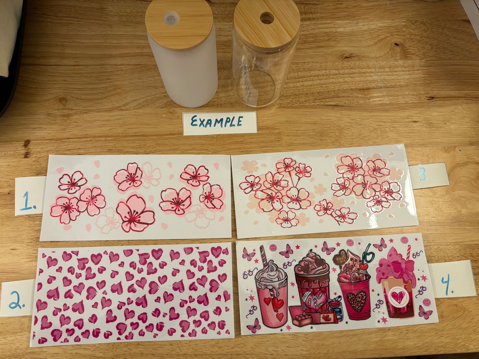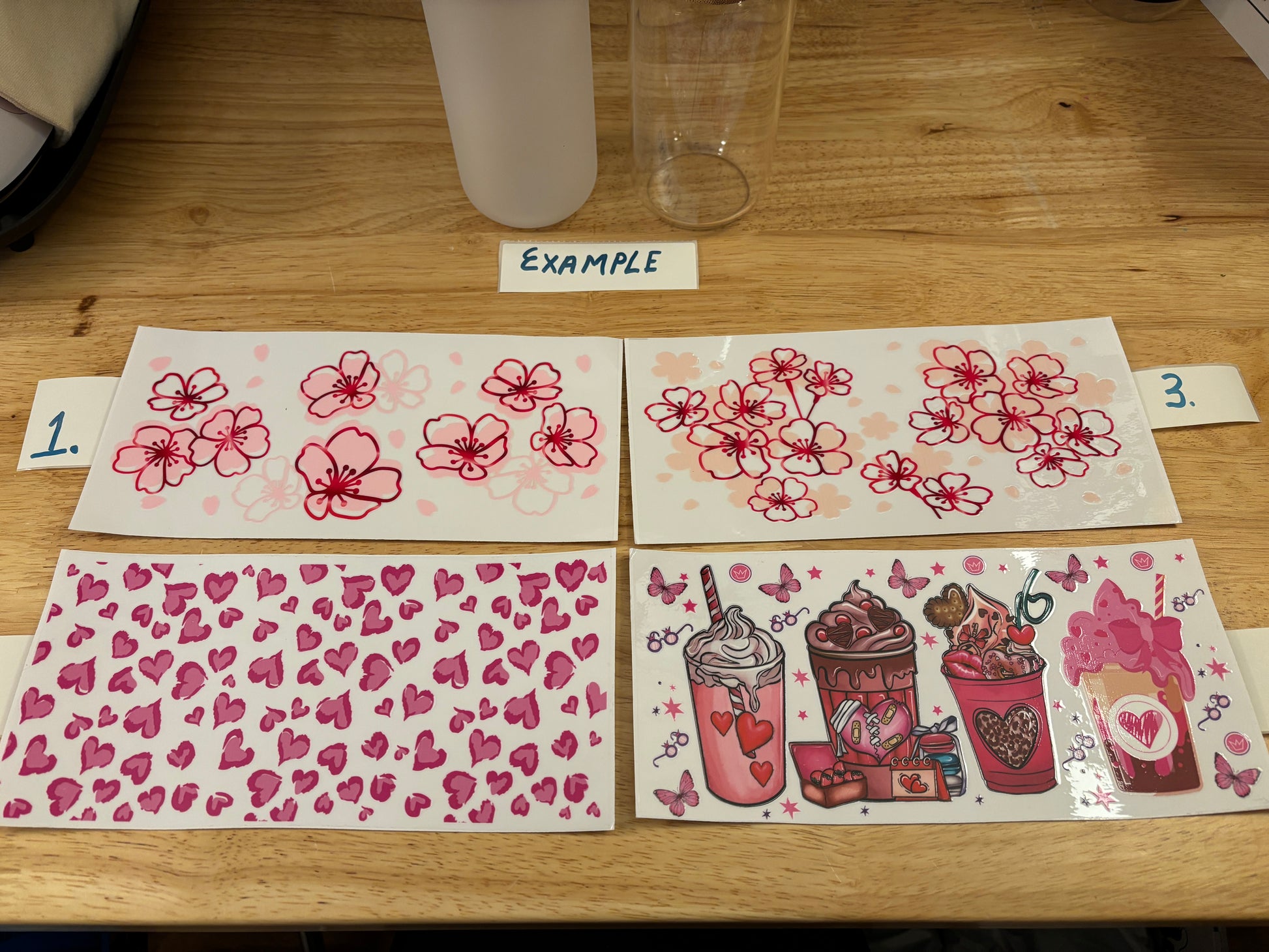 Your choice of the design you choose on either a Glass Tumbler, Clear or Frosted Tumblers option. The Design has a clear backing, not solid white.