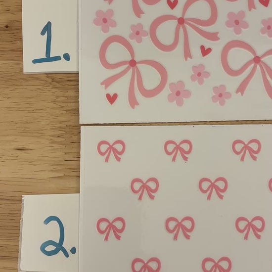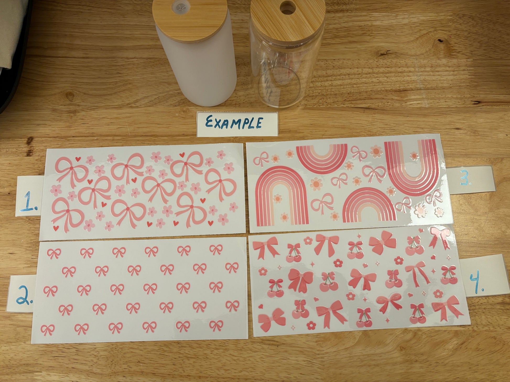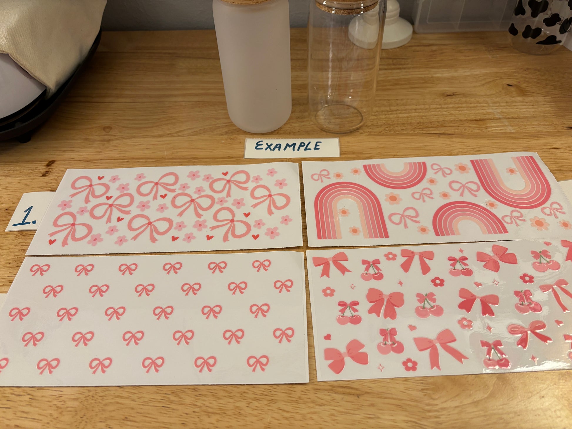 Your choice of the design you choose on either a Glass Tumbler, Clear or Frosted Tumblers option. The Design has a clear backing, not solid white.