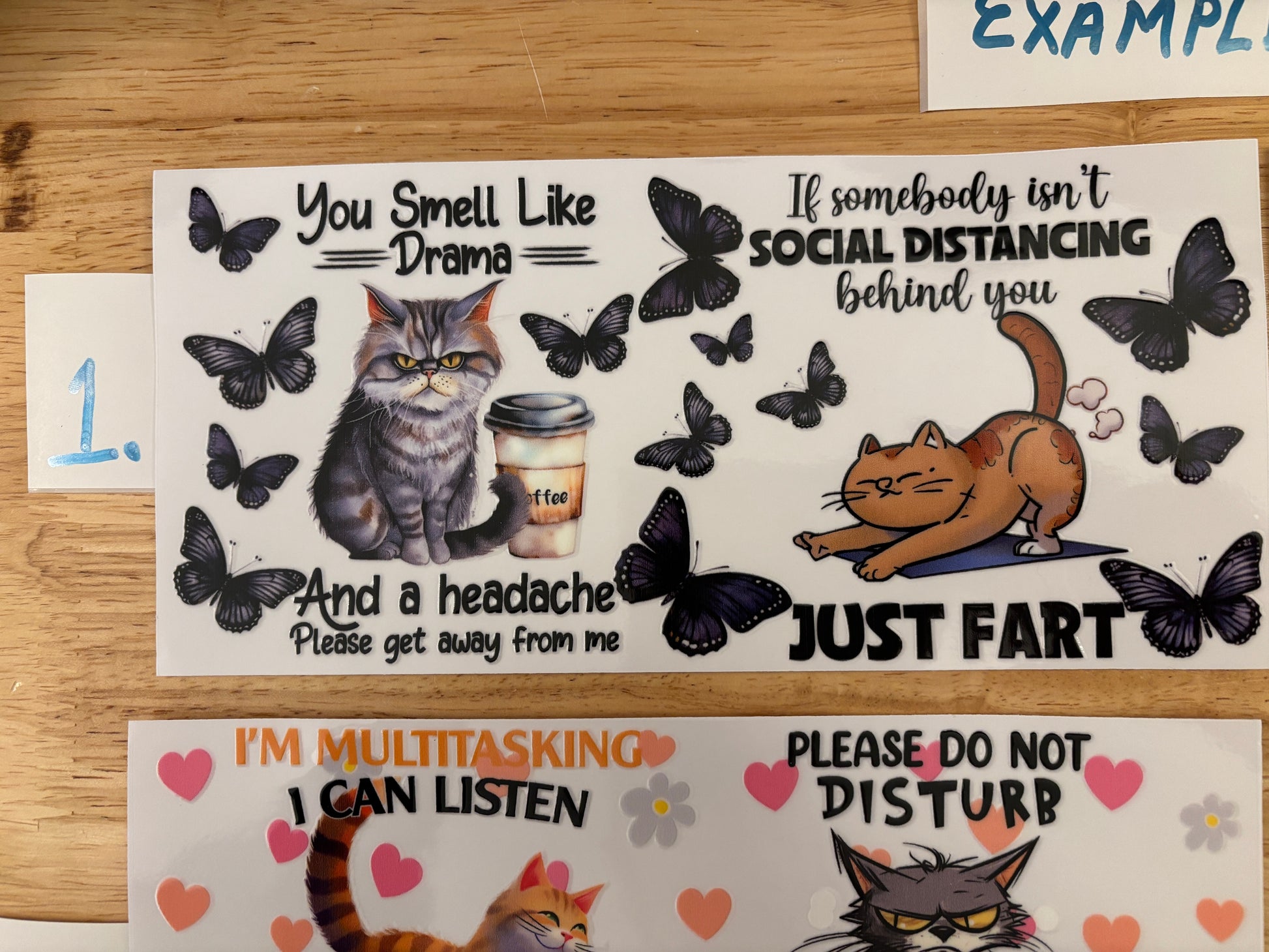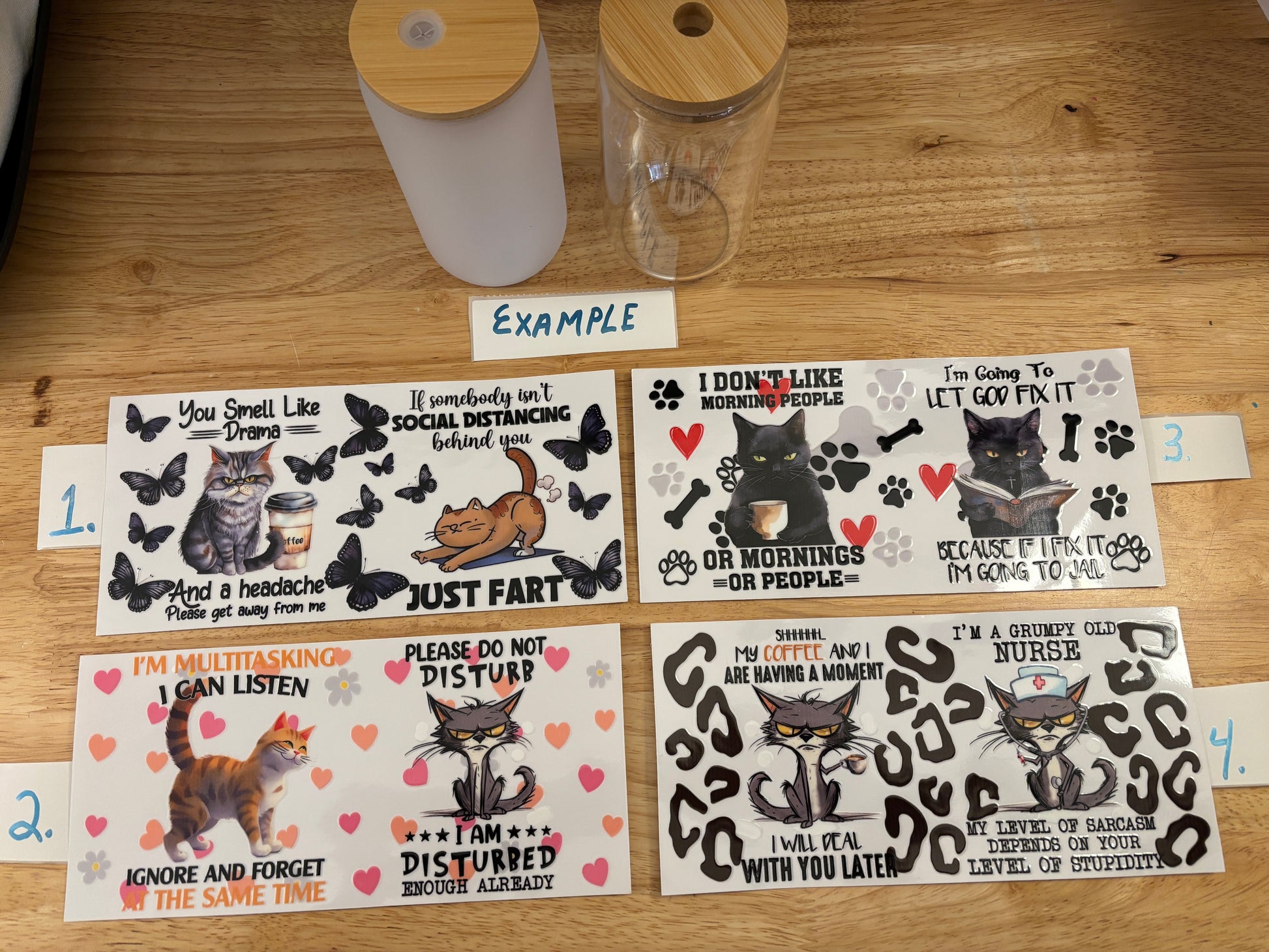 The Cat Tumbler shown is for example purposes only to show what a design will look like on either