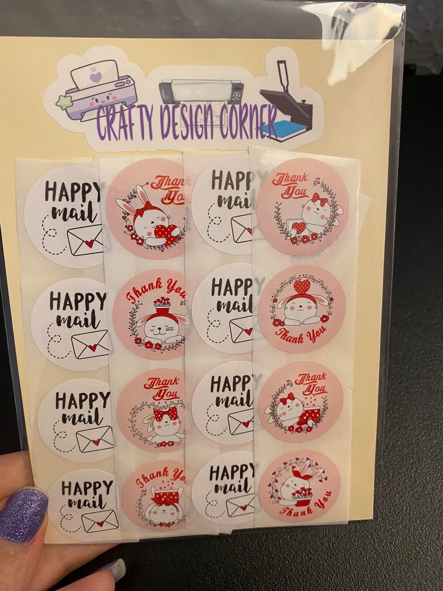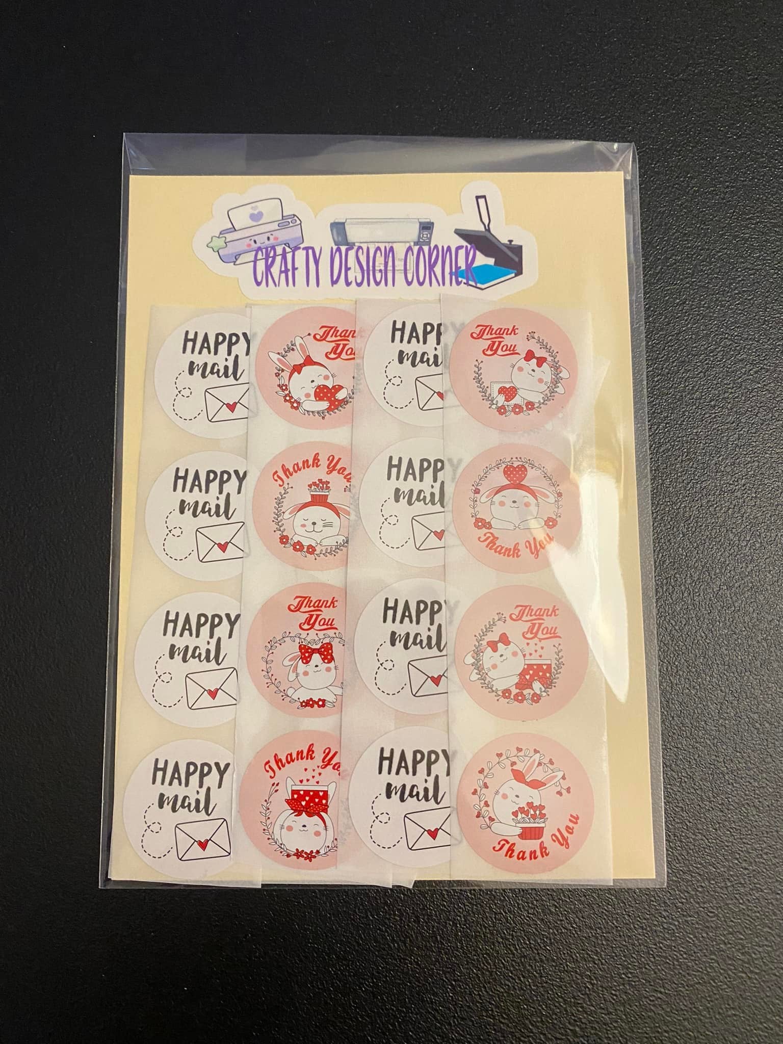 32 pcs Bunny Thank You Sticker with Happy Mail Sticker Pack, cute 1 inch round Bunny & Happy Mail Thank you stickers, as seen in photos, the stickers seen above are the exact ones you will receive of the 1 inch round stickers as seen in the photos.