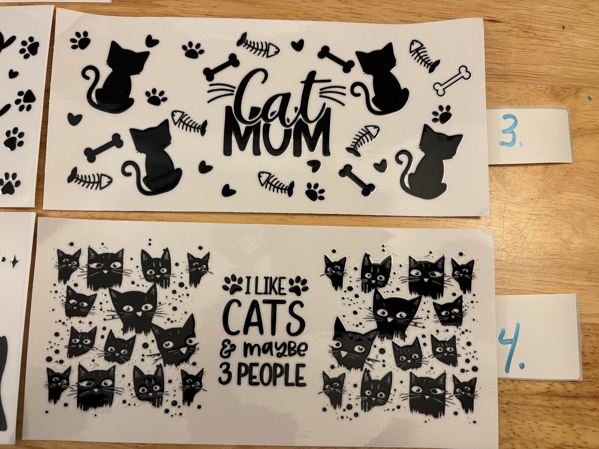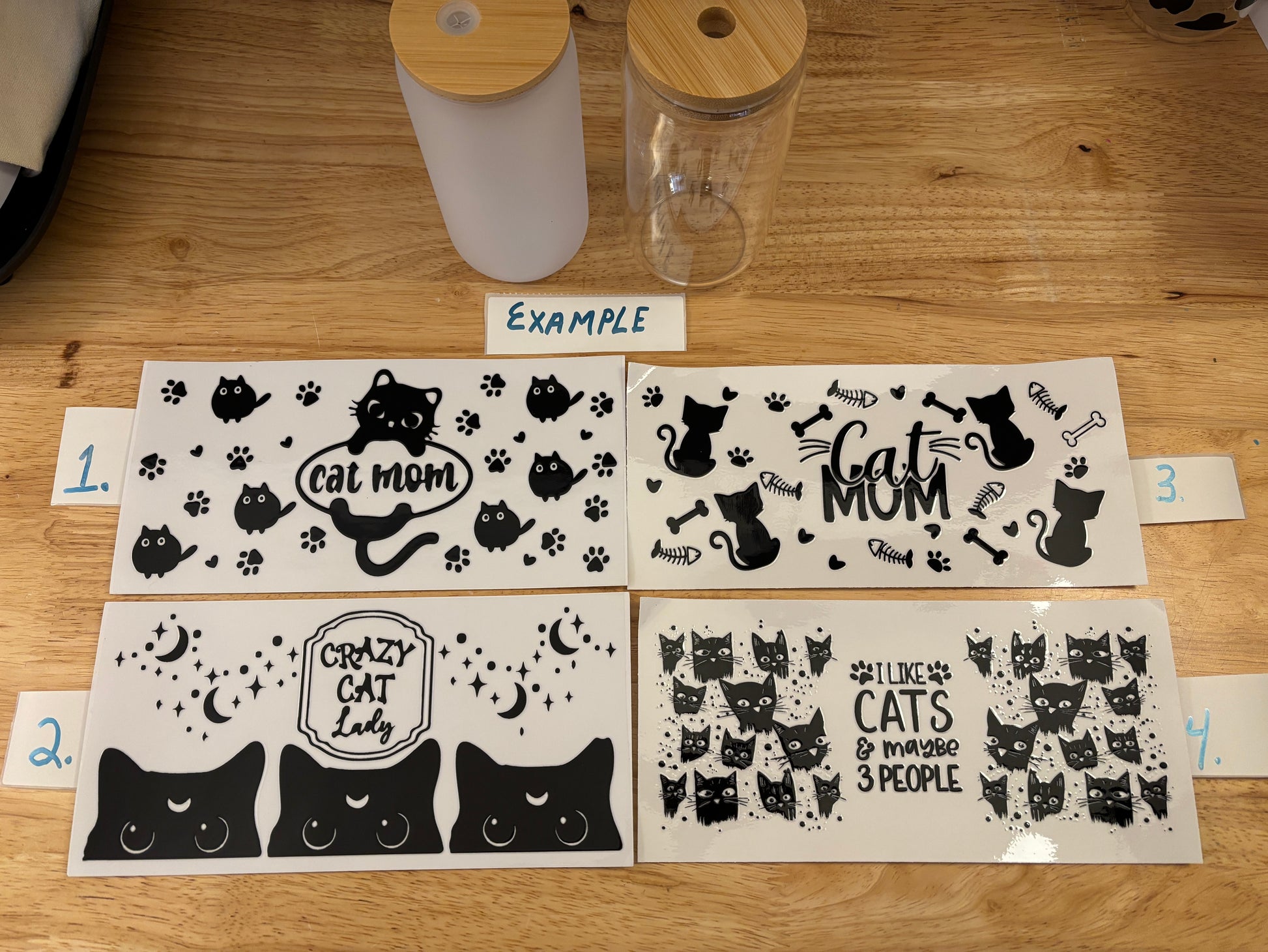 The Cat Tumbler shown is for example purposes only to show what a design will look like on either