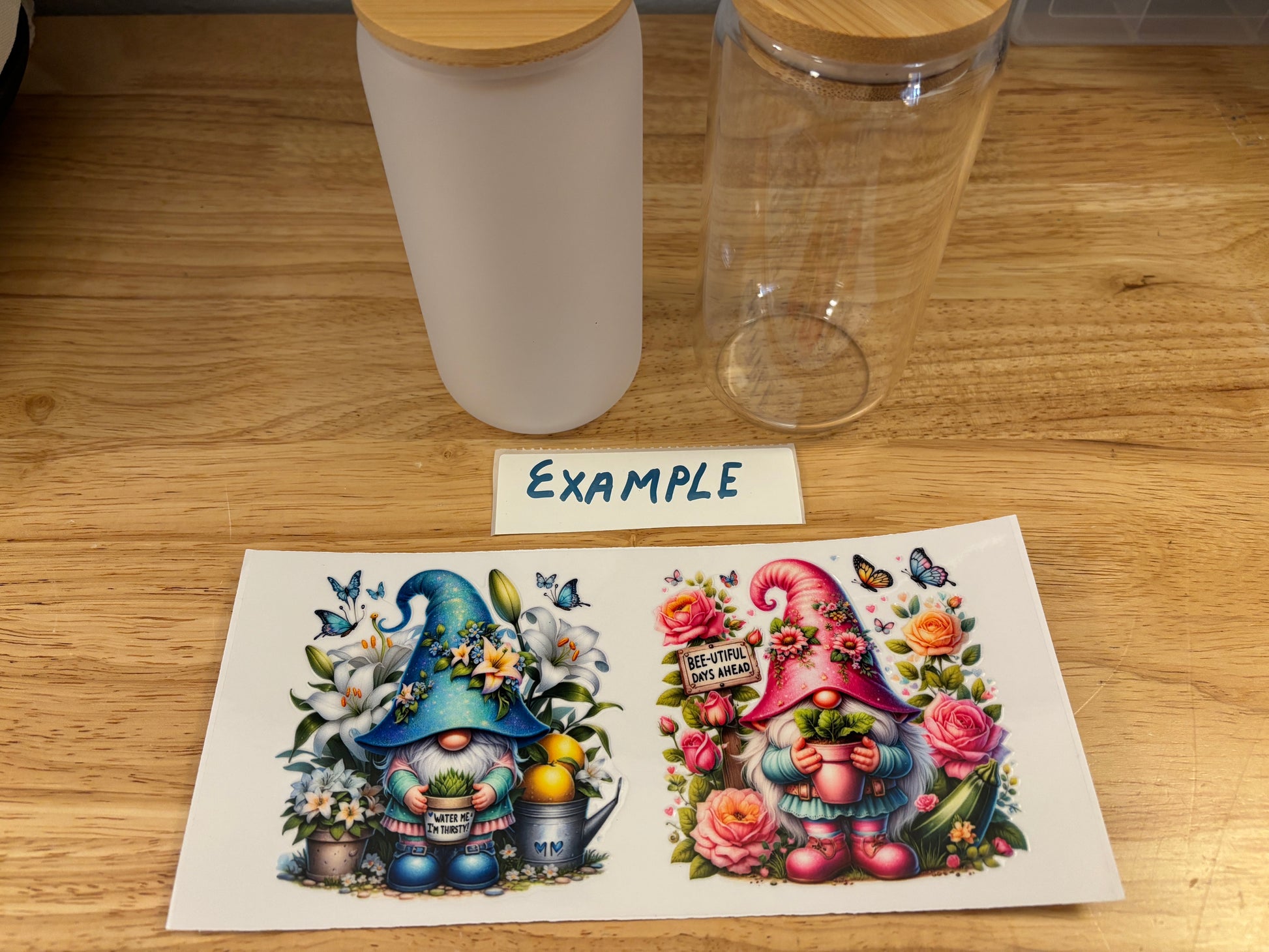 Blue and Pink Gnomes Glass Tumbler, Clear or Frosted Tumblers option