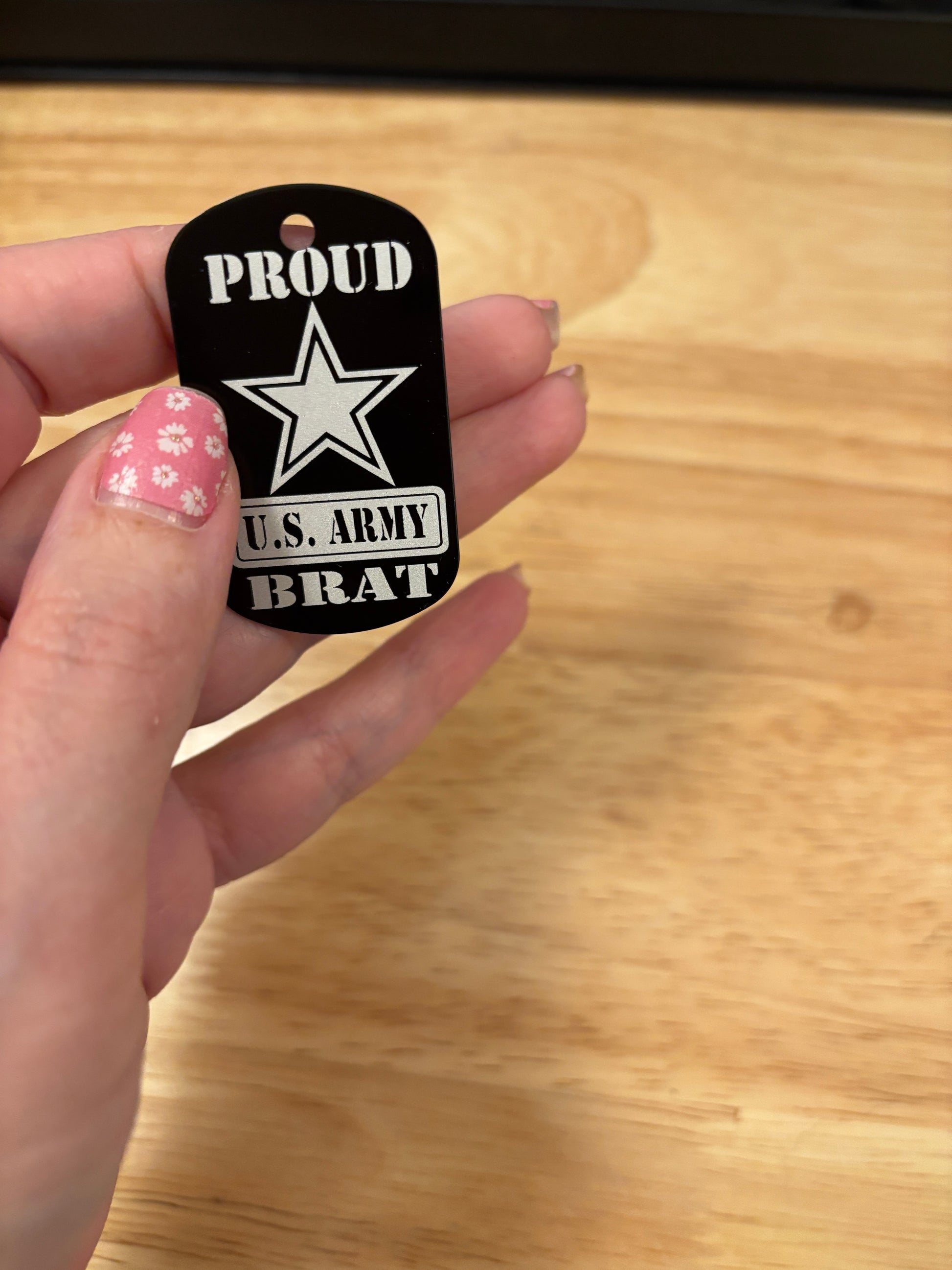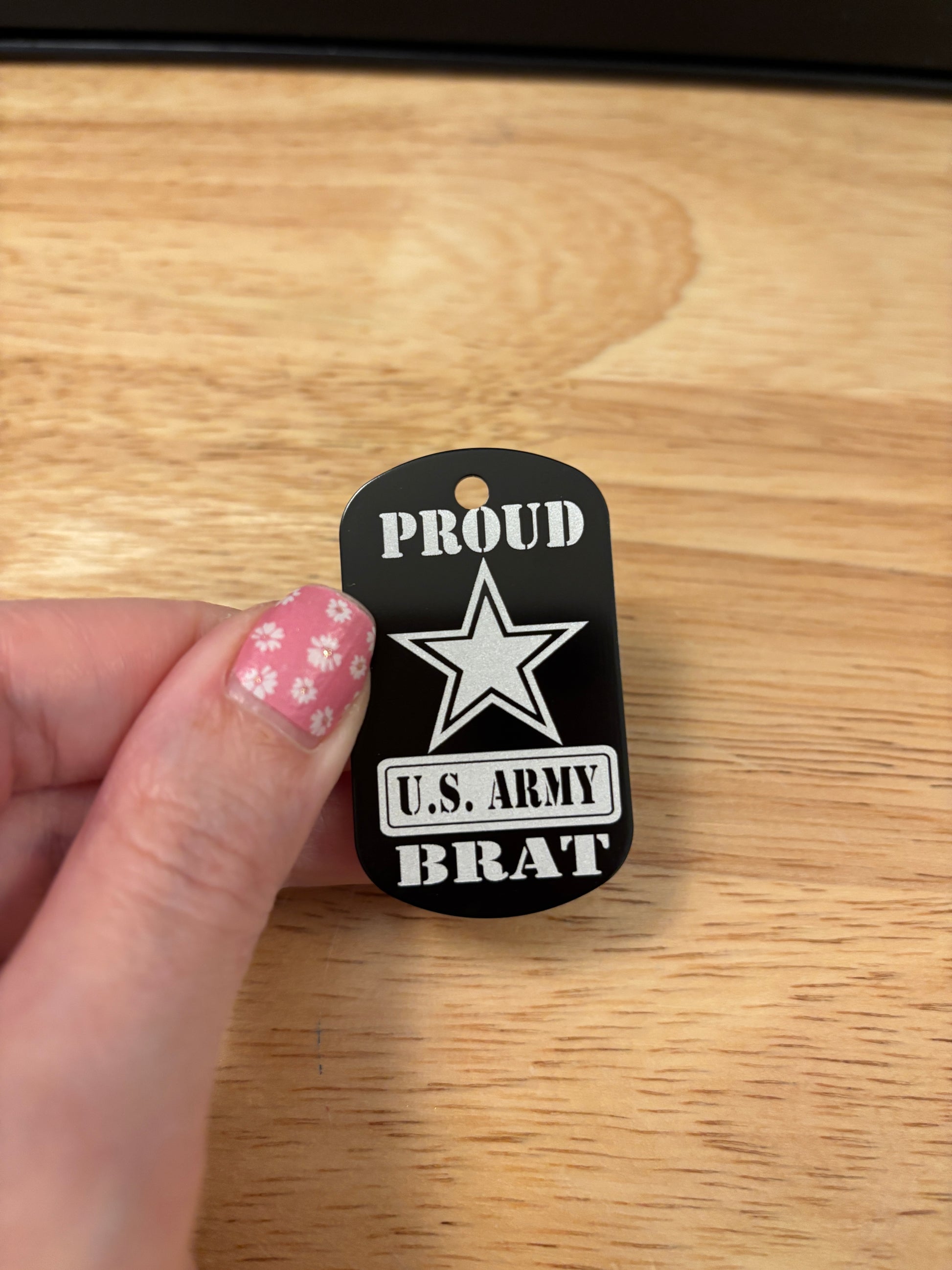 Proud Army Brat key chain, these are laser engraved.. Design will be on both sides, unless you want it one side, please notate that in the note section at checkout.