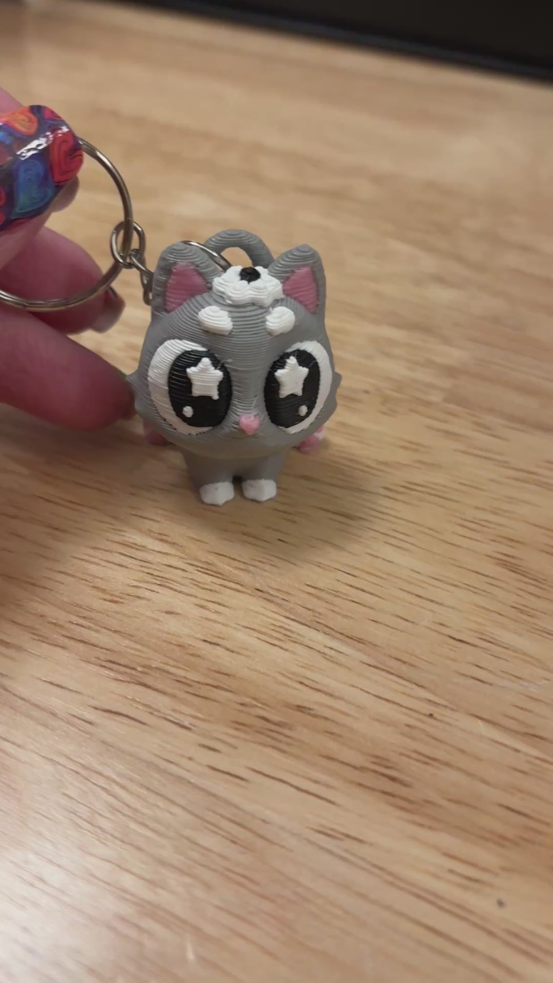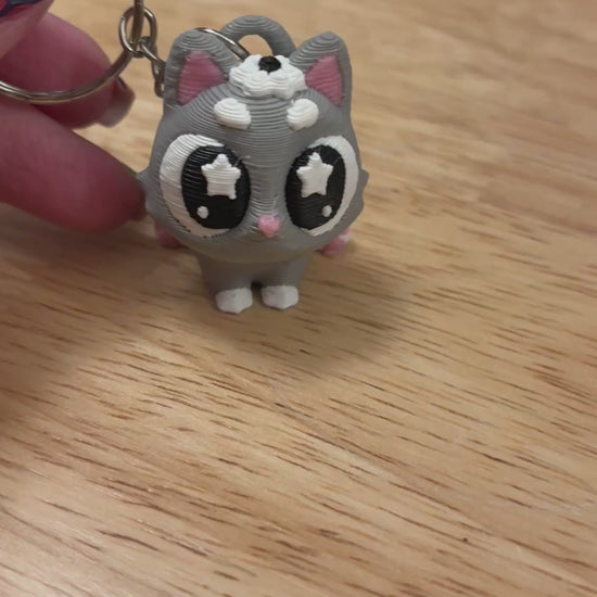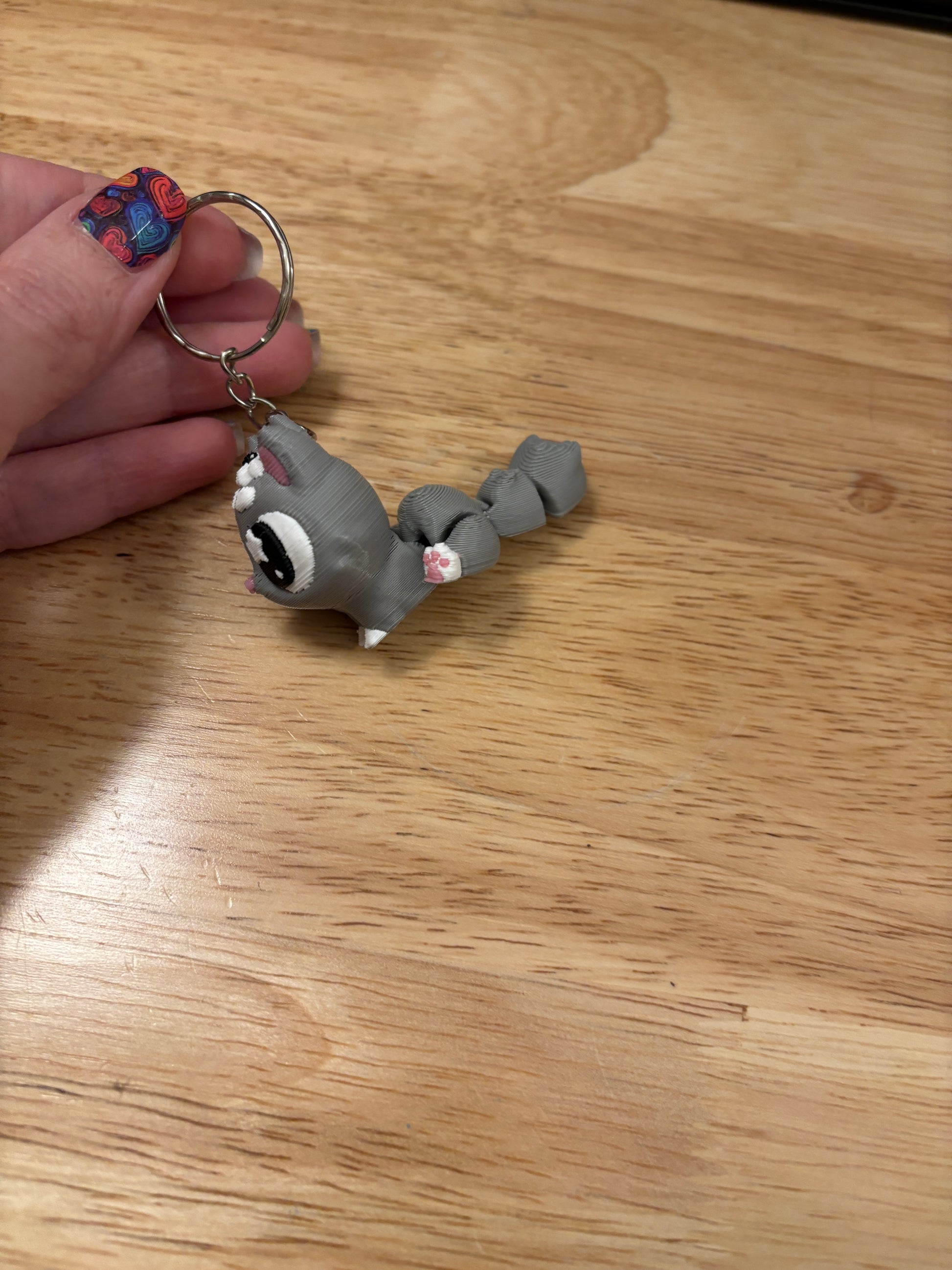 Cute cat keychain this is a 3D Printed item. This is for (1) cat keychain, key ring and chain may come in either gold or silver color.