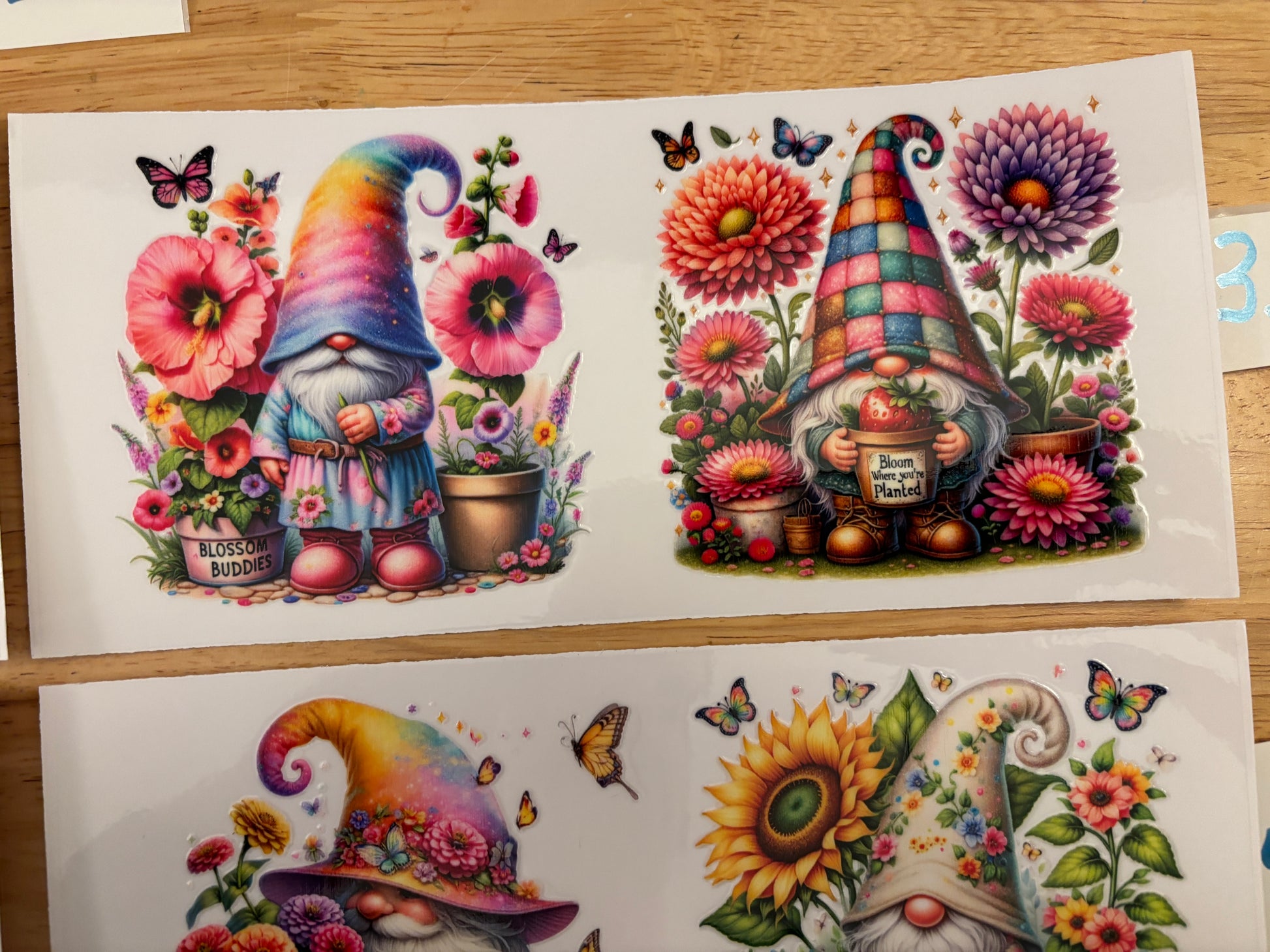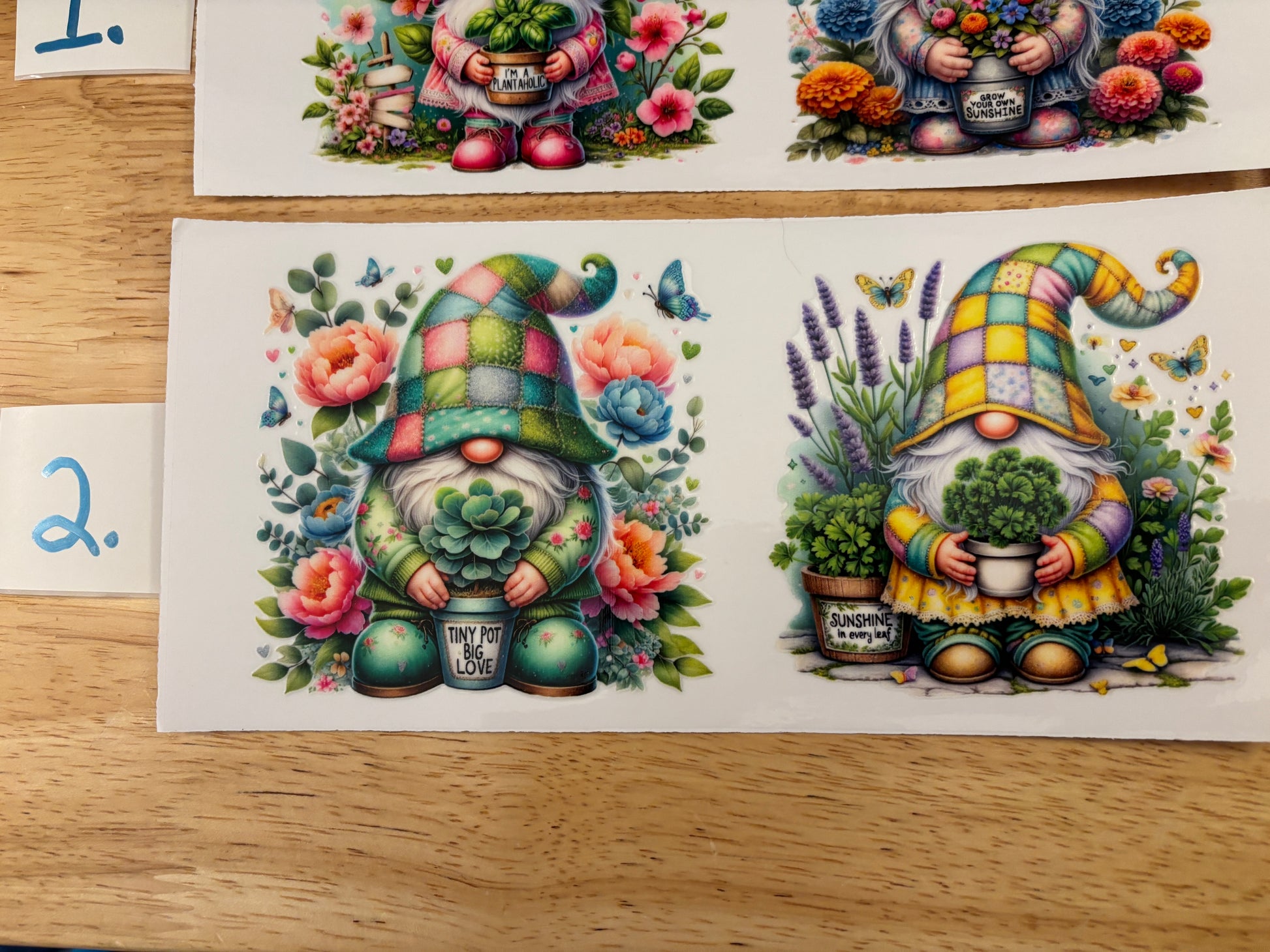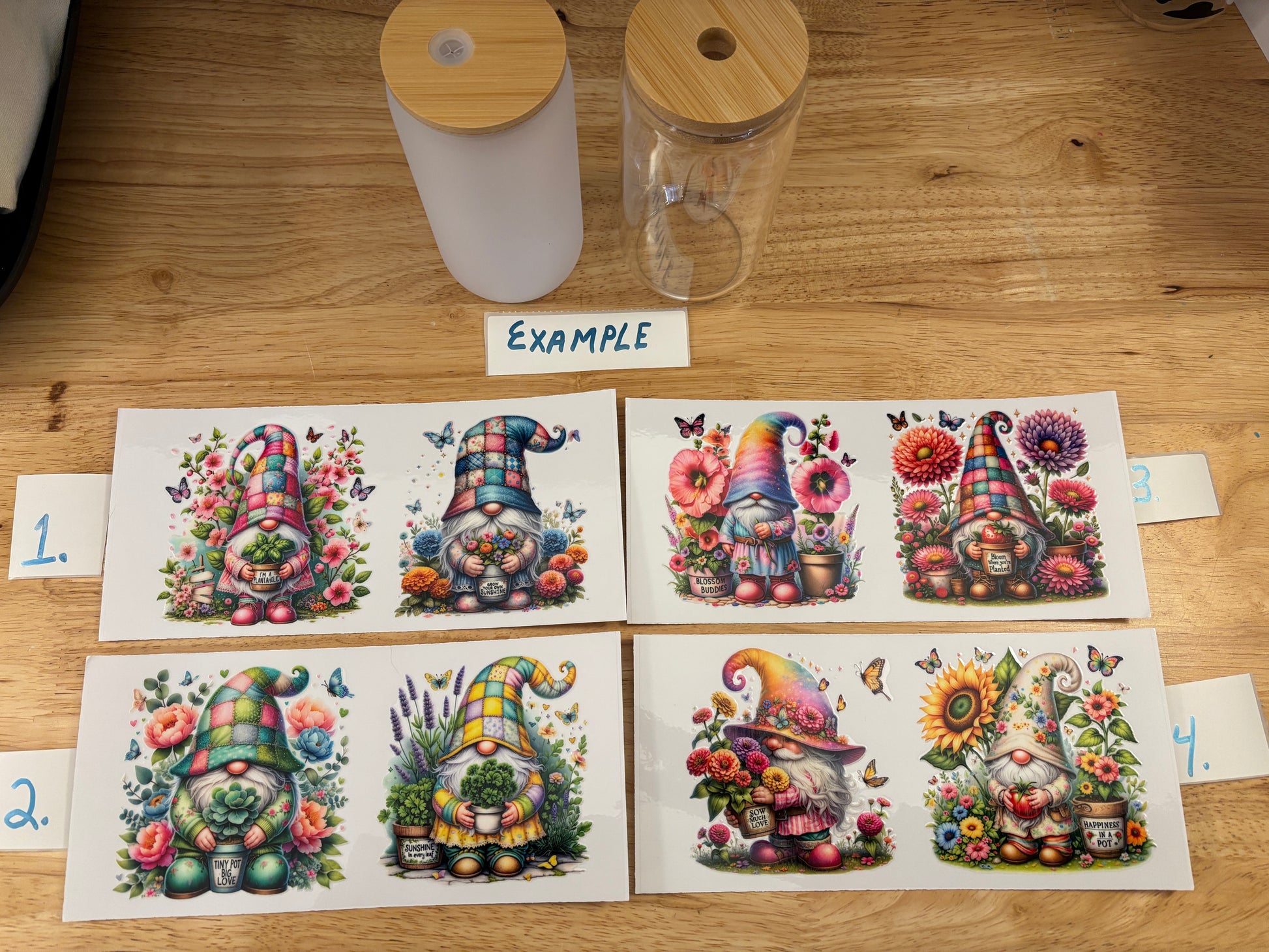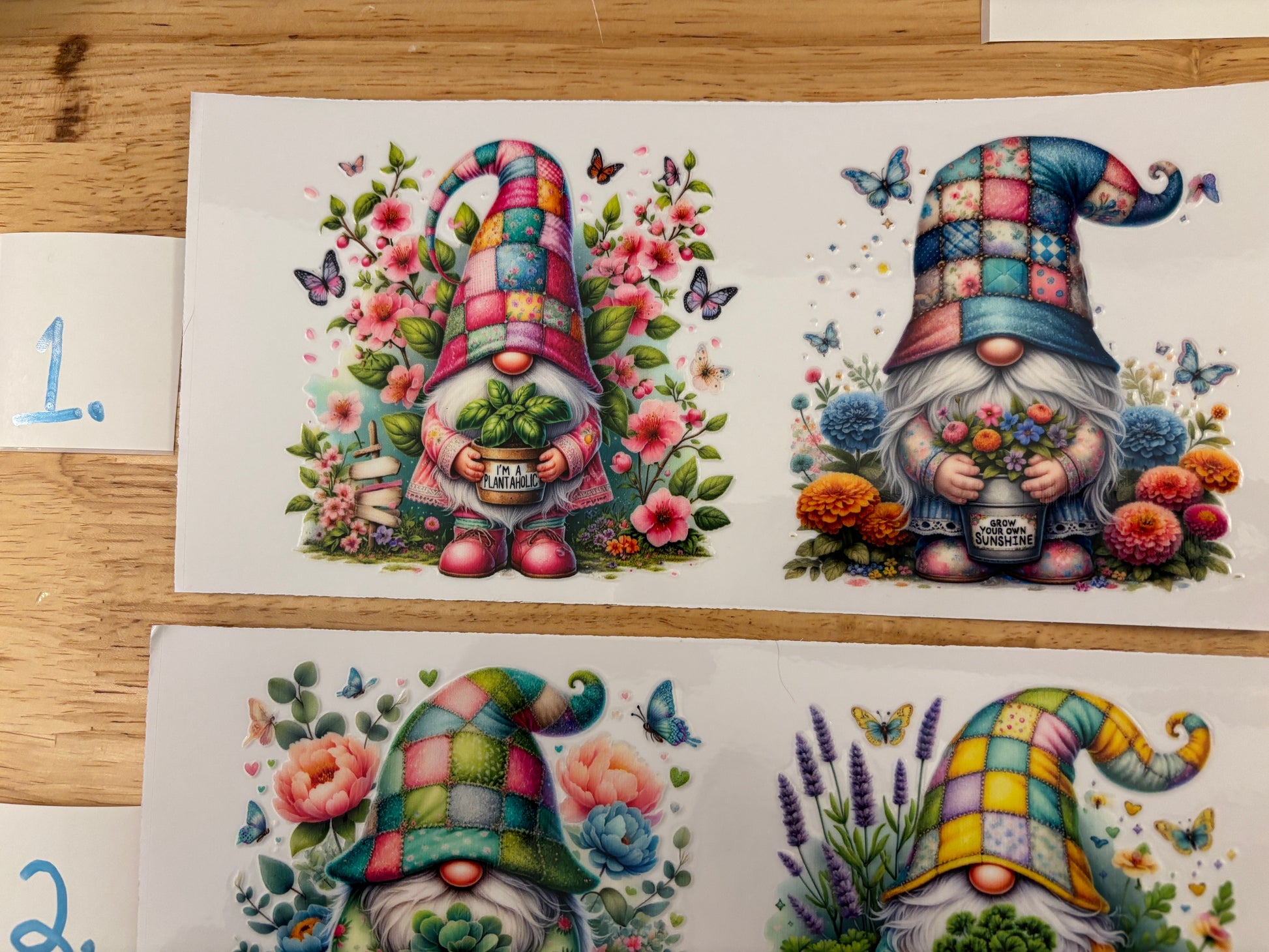Quilted Gnomes Glass Tumbler, Clear or Frosted Tumblers option