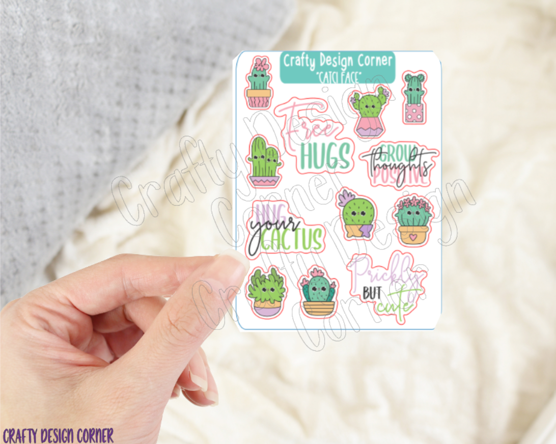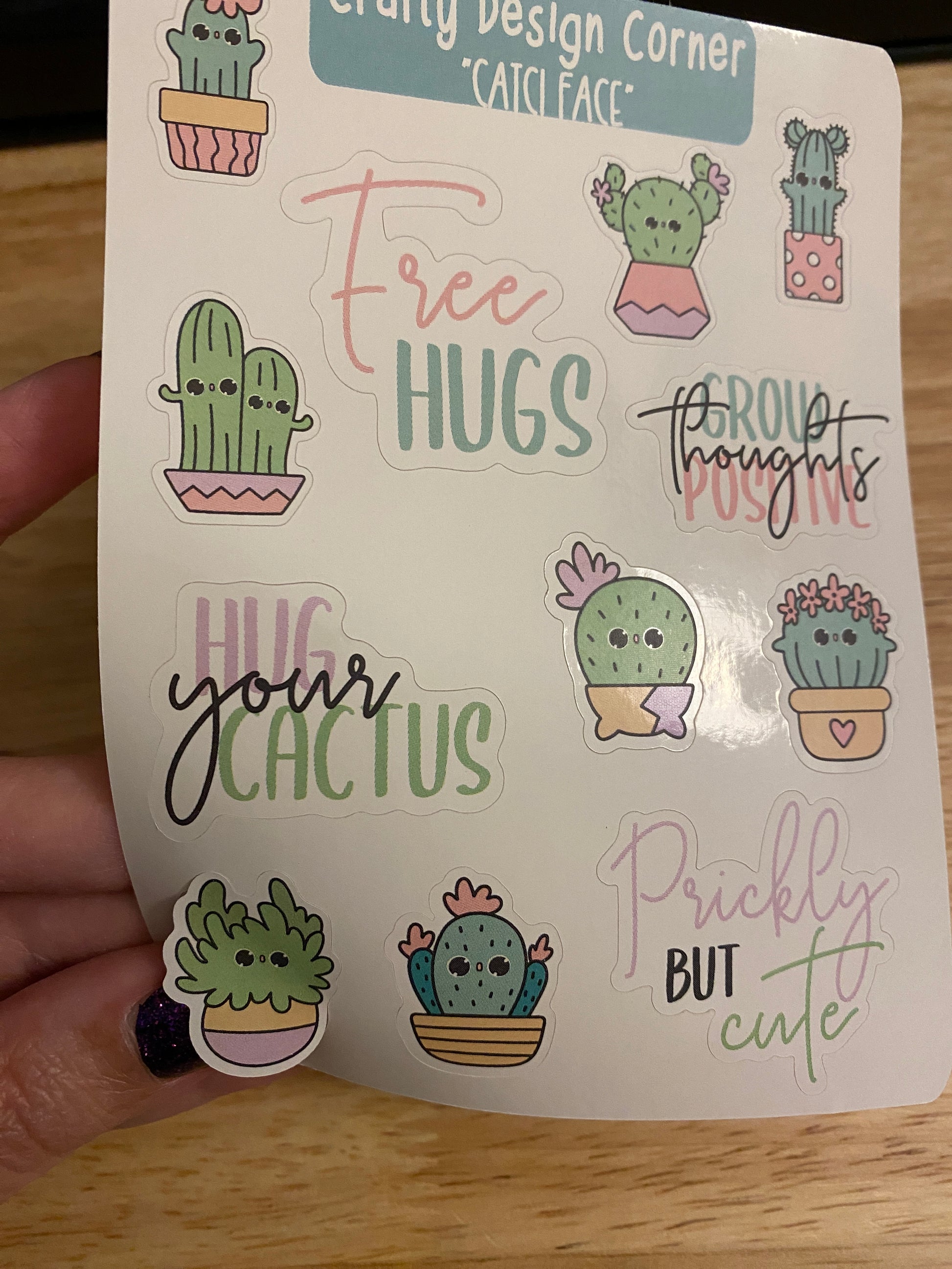 Cute Cacti Face Sticker Sheet Planner,These are printed on either White Glossy or Matte Sticker Paper, and then cut around each sticker leaving a small white outling. Can add to any hard surface, idea for planners.